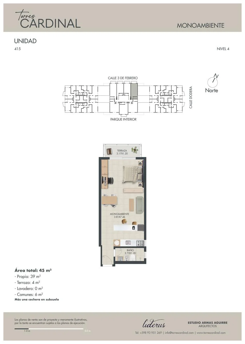 Apartamentos monoambientes a estrenar, en alquiler anual, en Torres Cardinal, ingreso inmediato.