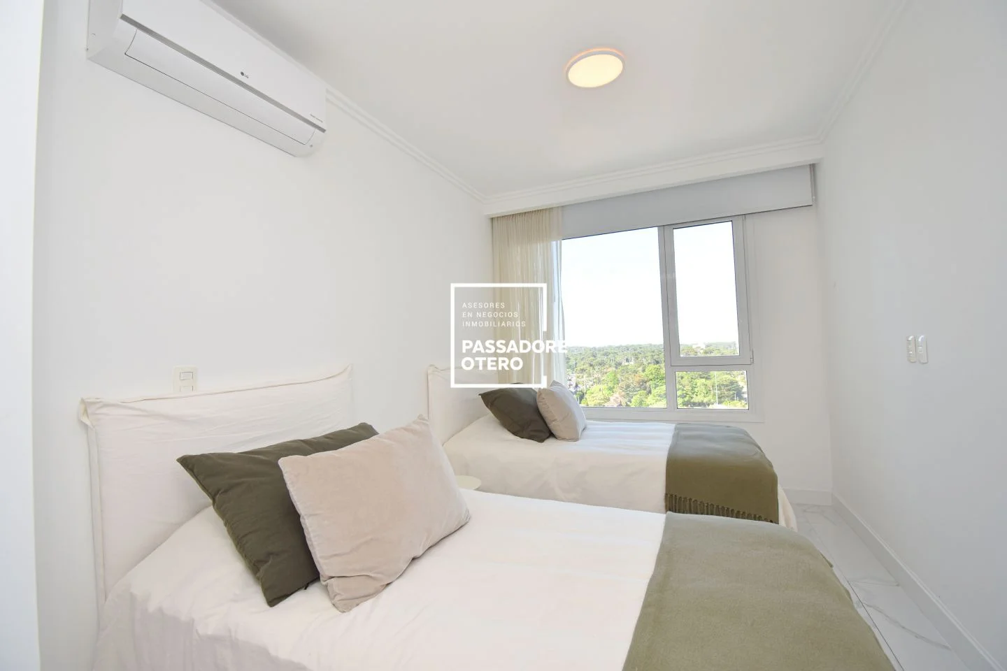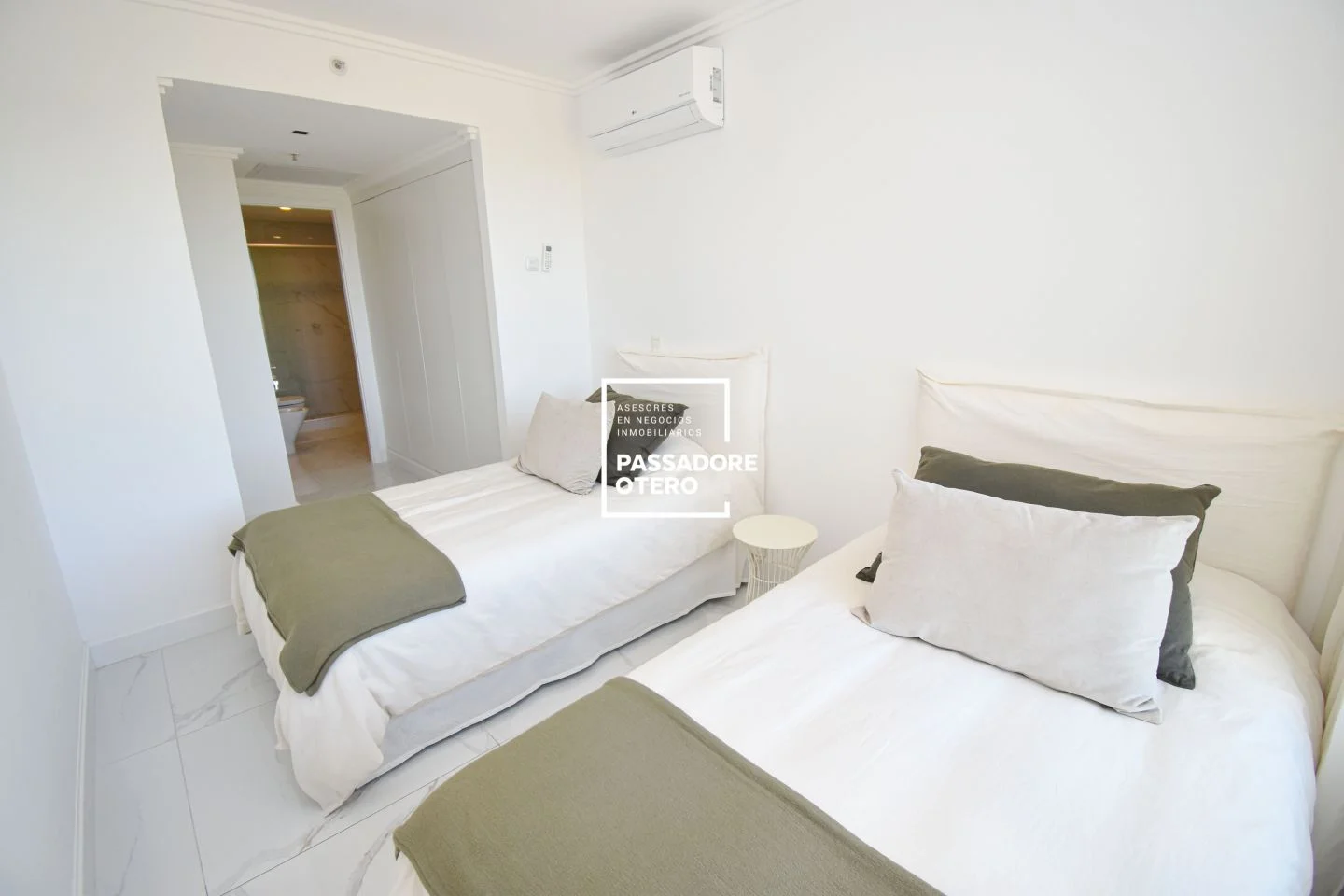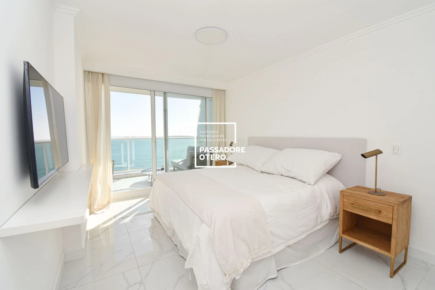 PARAMOUNT TOWER PUNTA DEL ESTE - ALQUILER TEMPORADA En Playa Mansa, parada 8, sobre la Rambla La Fachada curva sobre la Rambla se abre a la bahía, envolviendo los apartamentos para un mejor aprovechamiento de las vistas a la Playa Mansa, la Isla Gorriti, el Puerto y Punta Ballena.8 ascensores de alta velocidad con palier privado para cada apartamento; entrada principal y de servicio. La unidad en alquiler cuenta con panorámico living comedor, 3 dormitorios en suite, 4 baños (1 social), amplia cocina definida, muy cómoda terraza principal con hermosa vista al mar. Domótica que permite controlar losa radiante, Aire acondicionado, cortinas eléctricas, luminaria y más. Garaje en sub suelo. Servicio de mucama diario.También la Torre cuenta con cargadores para autos eléctricos y sensores para accesos a garaje. Entre los amenities destacamos: Gran gimnasio completo con equipos de última generación, gimnasio para aeróbicos, salón de fiestas para 150 personas, 4 piscinas climatizadas, 2 interiores y 2 exteriores, saunas, salas de masajes, sala de juegos infantiles, sala de juegos para adultos, 6 salones barbacoas, cine 3D, servicio de playa y mucho más.Valor publicado es diario, corresponde a periodo de menor ocupación-Si quiere disfrutar de sus vacaciones, contactenos !!! . Caracteristicas: DEPENDENCIA DE SERVICIO, DORMITORIO EN SUITE, GARAJE, LAVANDERíA, LIVING, LIVING COMEDOR, SALA DE JUEGOS, SPA, TOILETTE, APTO PARA FAMILIASNIñOS, CONEXIóN A INTERNET, HIDROMASAJE, PLACARD EN COCINA, PLACARD EN DORMITORIO, SAUNA, SERVICIO DE LIMPIEZA, SUM, CALEFON, COCINA, HELADERA, LAVARROPAS, MICROONDAS, PORTERO ELECTRICO, VIGILANCIA, WIFI, VISTA AL MAR XINTEL (PSD-PSD-8089)