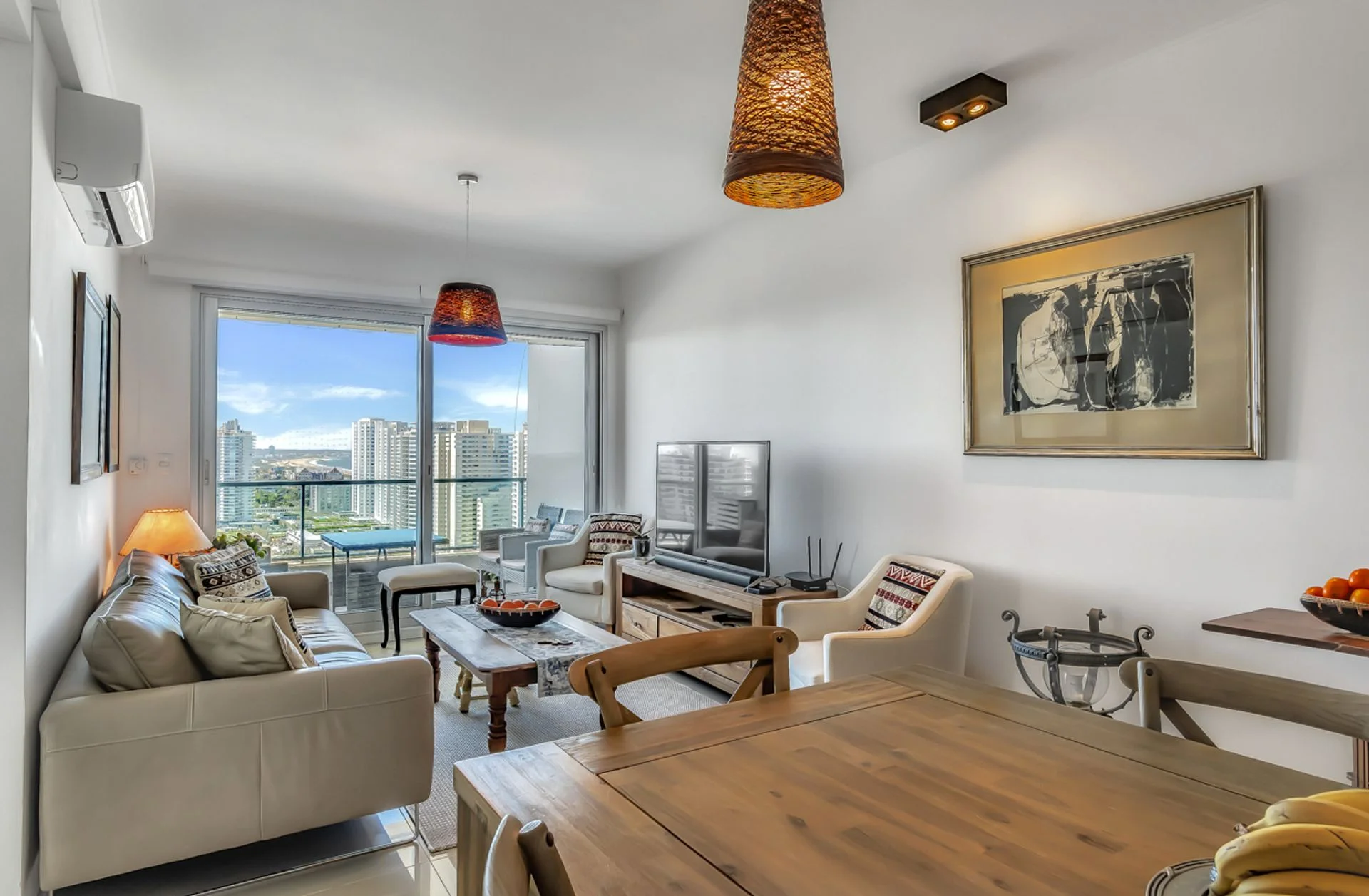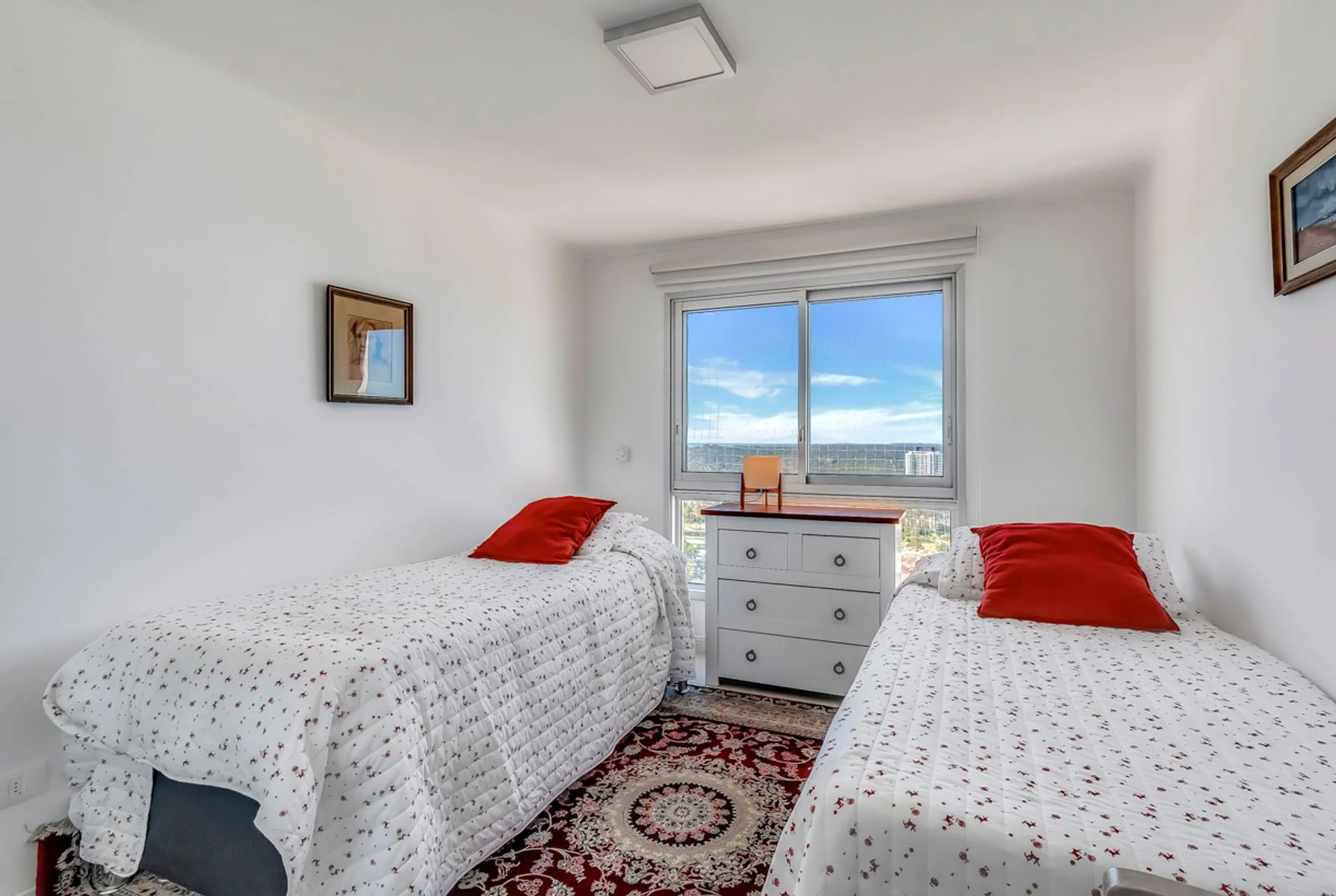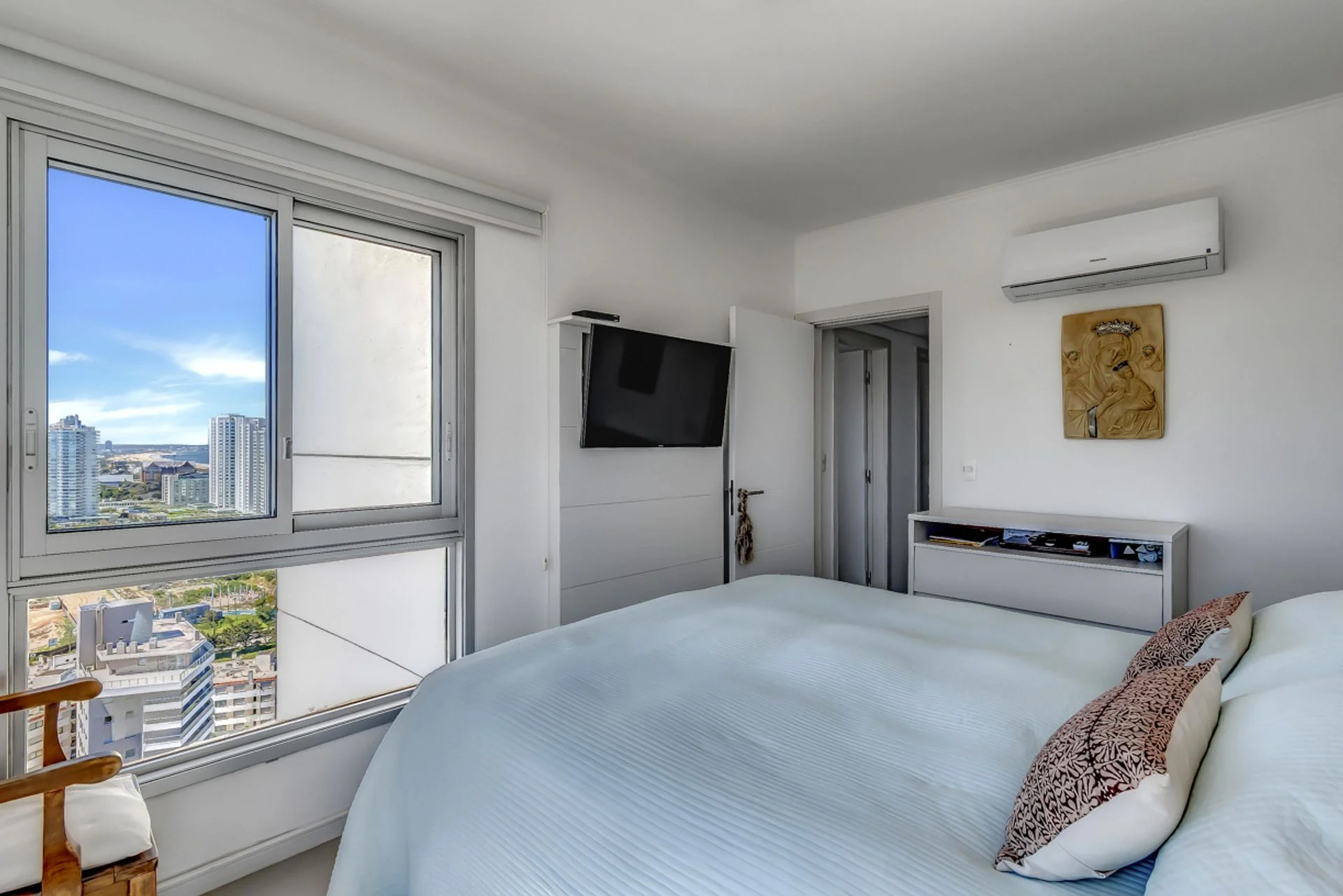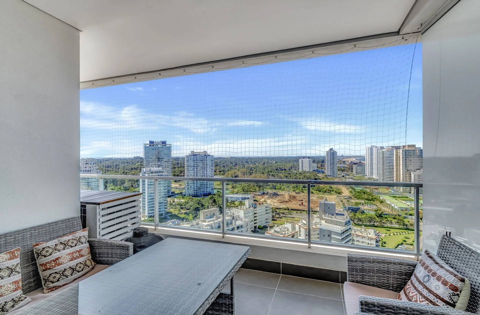 Exclusivo apartamento en alquiler de temporada en torre premium, Wind Tower, a pasos del mar de la Playa Brava, Parada 7. Posee living comedor muy cómodo con salida a balcón terraza con vista al mar. Cocina definida, dos dormitorios y dos baños, el principal en suite. Cuenta con aire acondicionado frio calor en todos los ambientes y losa radiante sectorizada. Amoblado y equipado full, con lavarropas y lavavajillas.