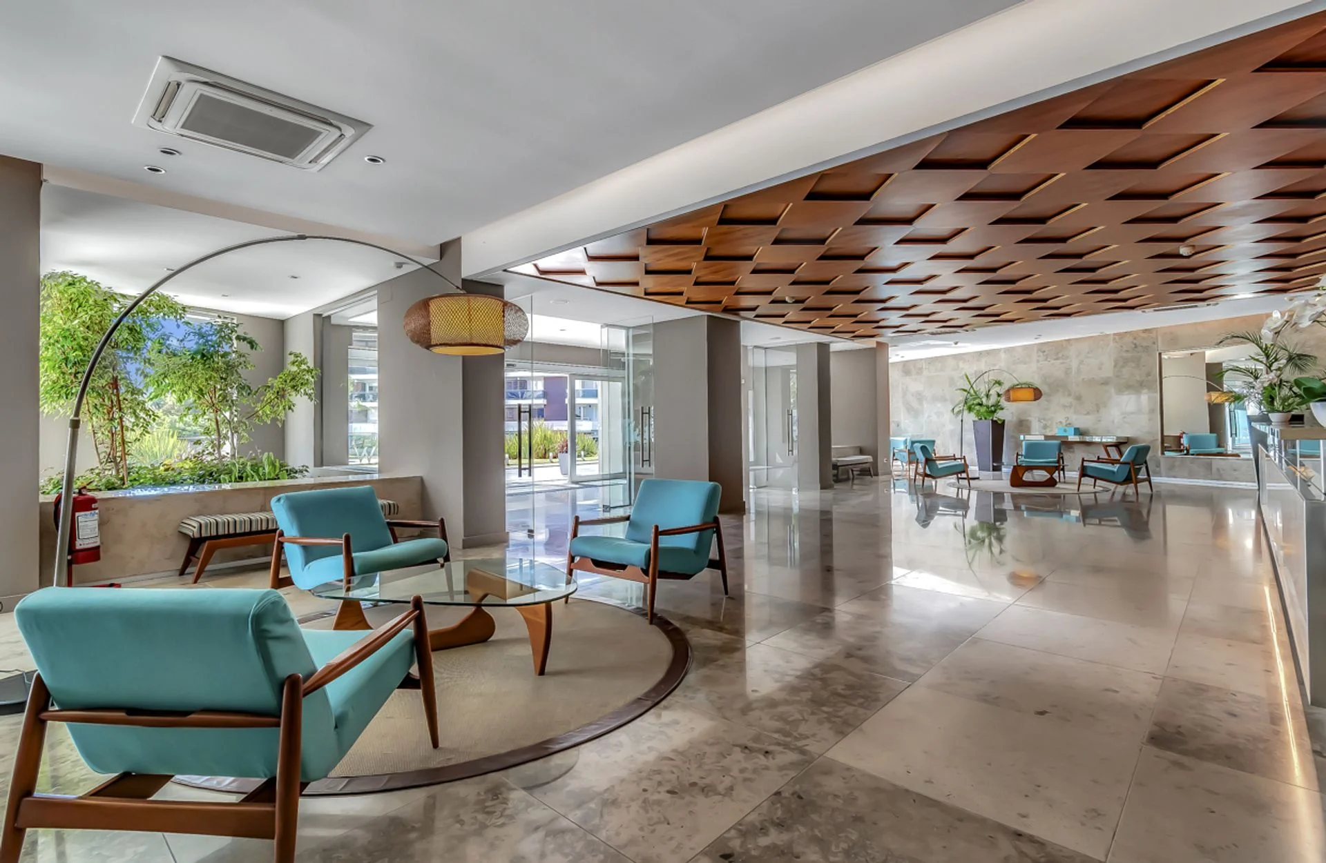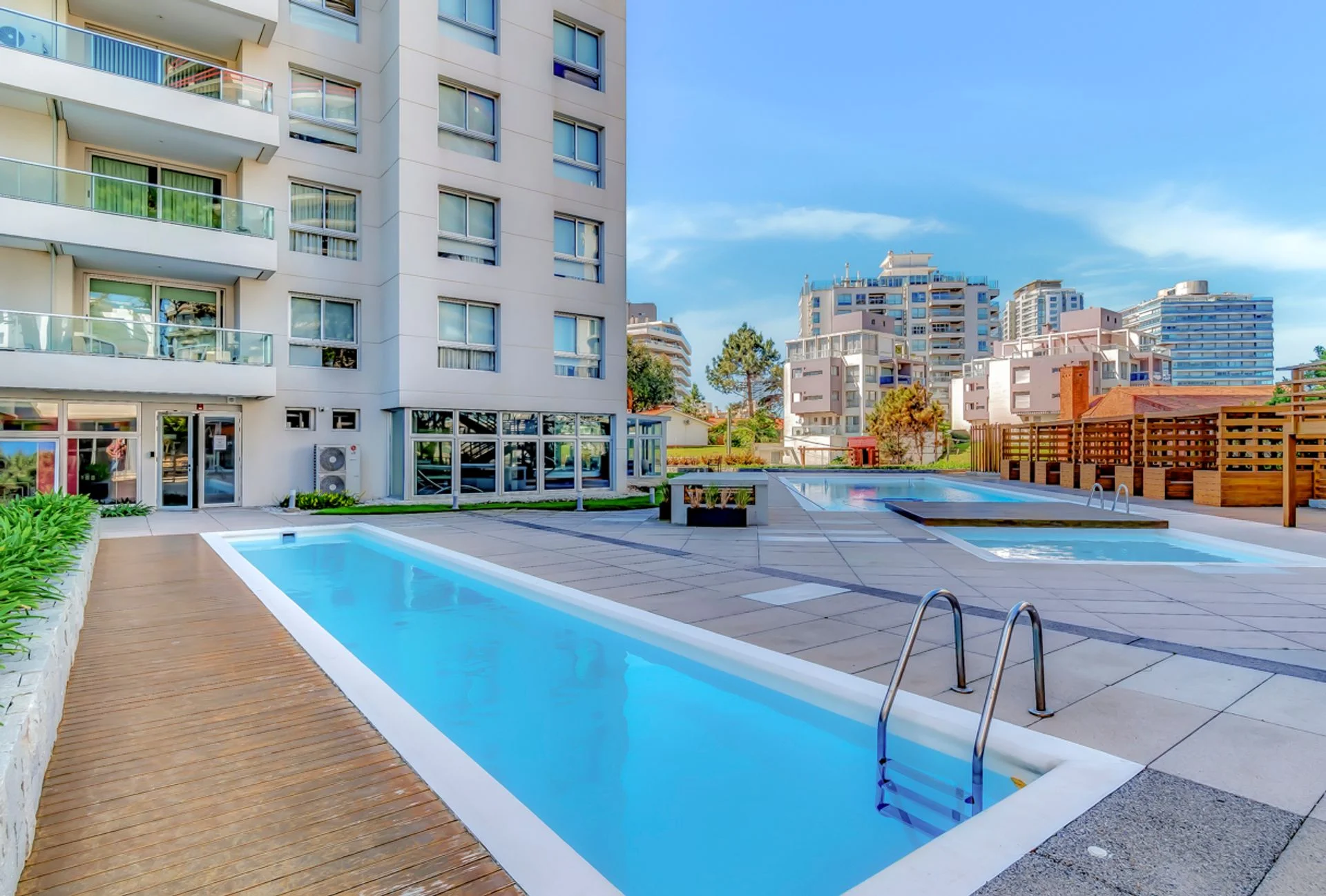 El edificio cuenta con servicios y amenities de un hotel 5 estrellas: gimnasio totalmente equipado, piscina interior con comunicación a la exterior climatizada, piscina exterior climatizada, piscina de nado climatizada y piscina para niños climatizada, solarium con expansión en decks de madera, hidromasajes, sala de masajes, sala de sauna y spa, sala para juego de niños, ciber y play room para adolescentes. Microcine y SUM con seis barbacoas. Exterior totalmente parquizado, equipado con mobiliario de esparcimiento. Brinda servicio de recepción 24 hs, garajista, servicio de mucama y de playa.