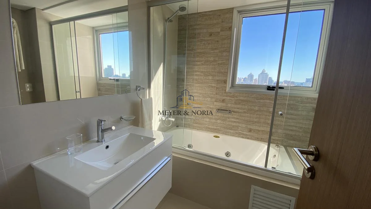 Apto en playa Brava!Terraza con parrillero propio, Living comedor, toilette, 2 dormitorios en suite, 2 baños, cocina con dependencia y baño de servicio, garage.El edificio ofrece: recepcion las 24hrs, piscina abierta y cerrada, microcine, playroom, gimnasio, saunas, canchas, 3 barbacoas de uso comun, servicio de playa y de mucama.