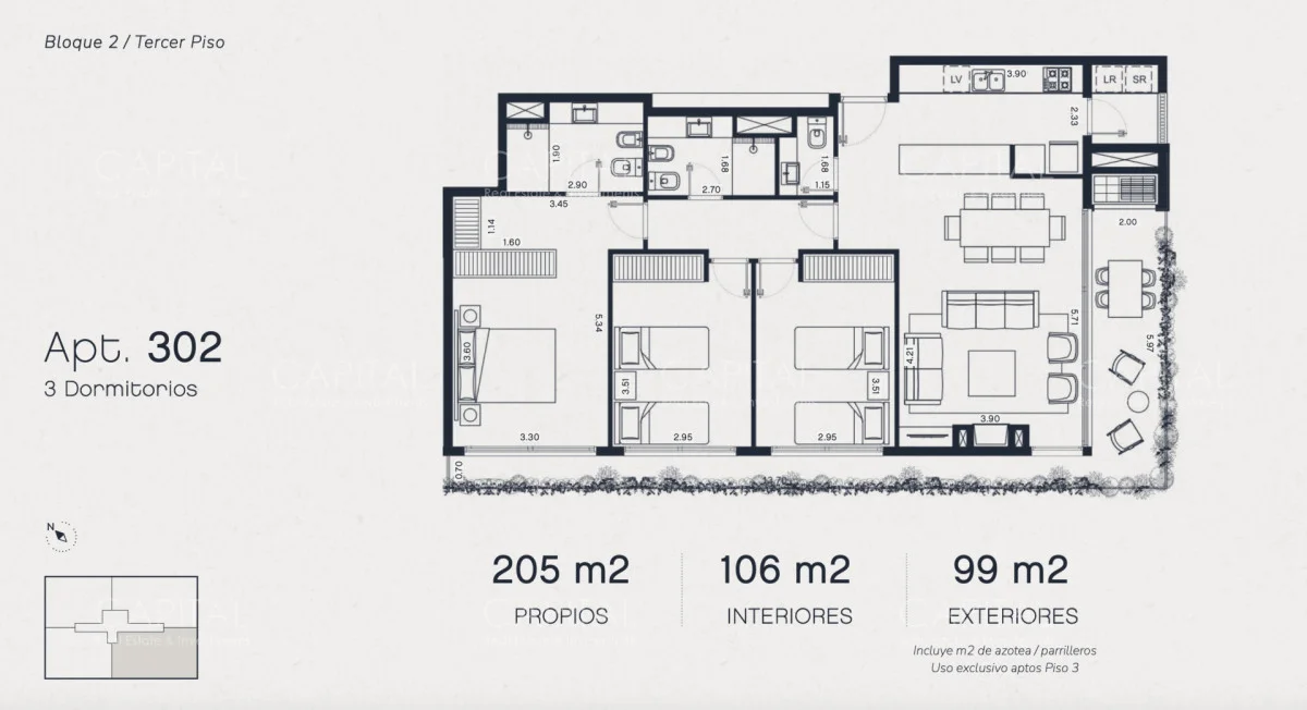 Departamento de 3 dormitorios con terraza superior de uso exclusivo..