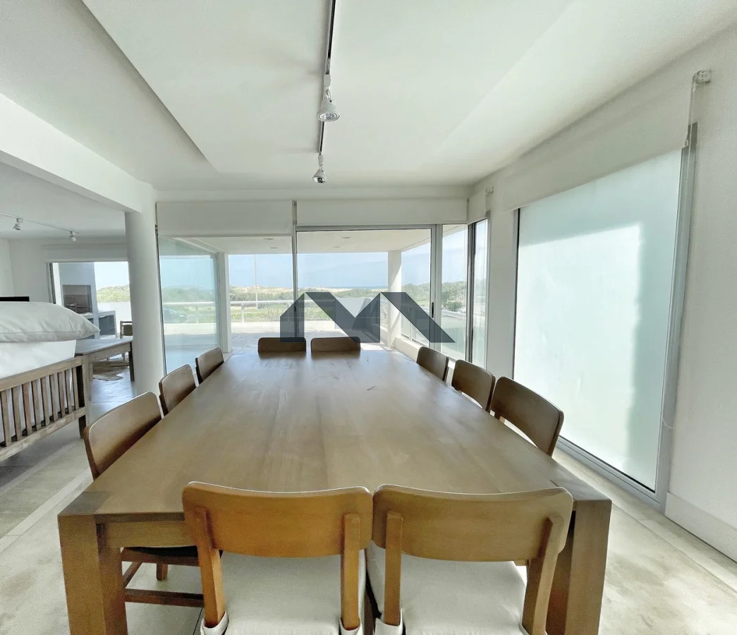 Edificio ubicado sobre la rambla de la Playa Brava, zona de Rincón del Indio a minutos de la Península, La Barra y Manantiales. Edificio exclusivo de 15 departamentos, todos al frente con vista al mar. 4 unidades por piso y 3 unidades en PB. Espectacular departamento de 5 dormitorios, 2 en suite. Una de las suites con vestidor y salida a balcón. Espacios amplios. Toilette, Dependencia de Servicio con su baño, Lavadero. Living y Comedor, muy canchero con salida a la amplia terraza con parrilla y vista al mar. Referencia Interna : Tera-595