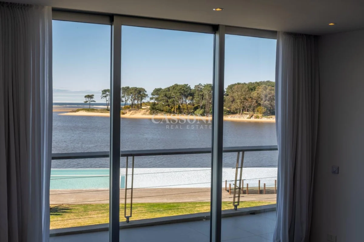 Este apartamento de cuatro dormitorios en suite se distingue por sus vistas abiertas al arroyo Maldonado y al océano, y por su terraza amplia con parrillero, ideal para disfrutar de los atardeceres sobre el agua.