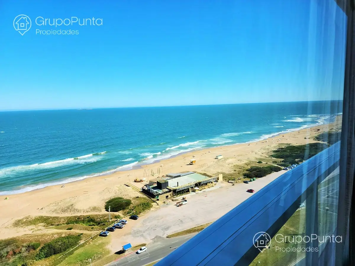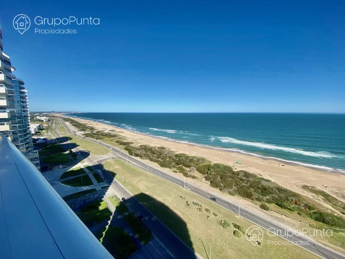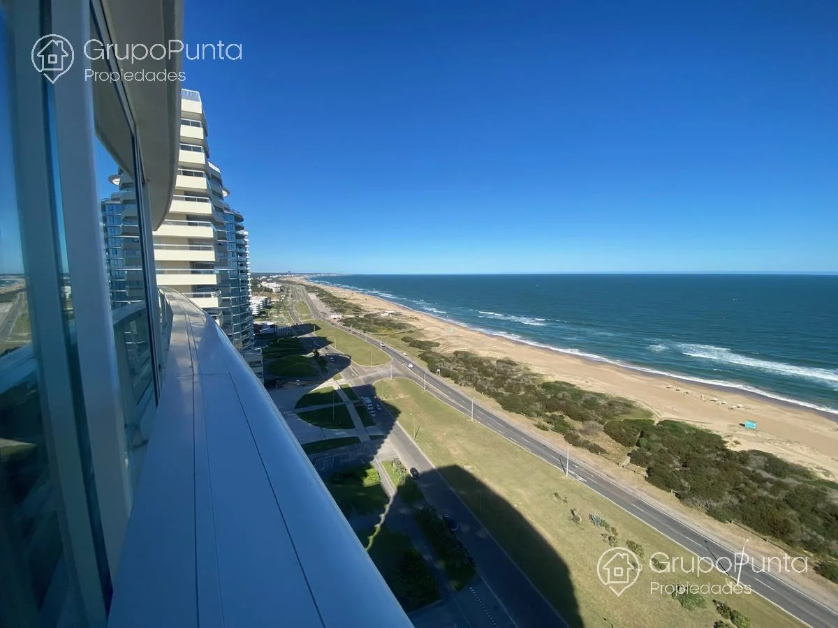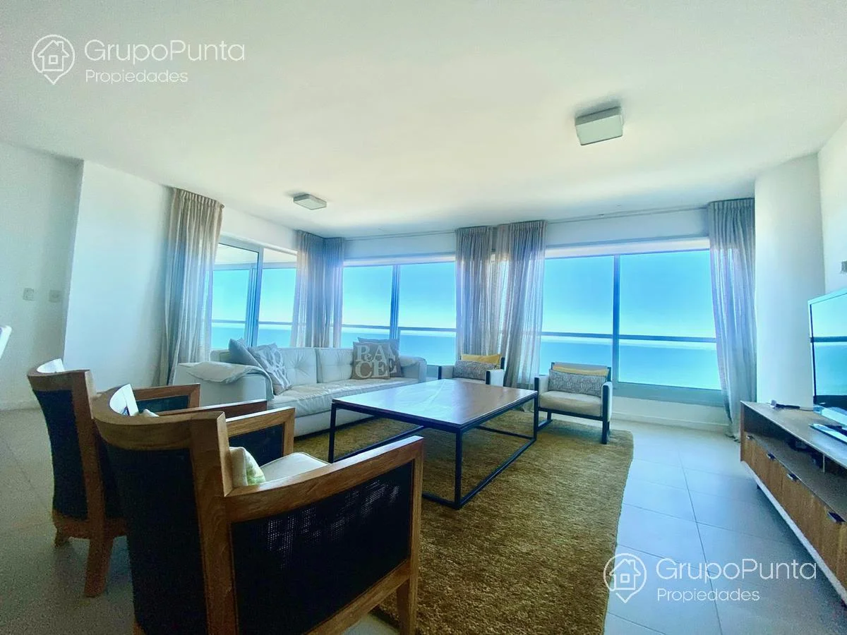 Alquiler de departamento esquinero en torre de categoría de playa Brava.Ubicado sobre primera fila de Playa, se encuentra este departamento de amplio metraje y generosos ambientes con vista plena al Mar e Isla de Lobos.Cuenta con tres dormitorios en suite con amplios placares más dependencia de servicio con baño, cocina muy cómoda y muy bien equipada. Living comedor con hermosa vista y luminosidad que conecta con terraza integrada al dormitorio principal.Losa radiante sectorizada y aires acondicionados frío calor en todas la habitaciones.Garaje en sub suelo.