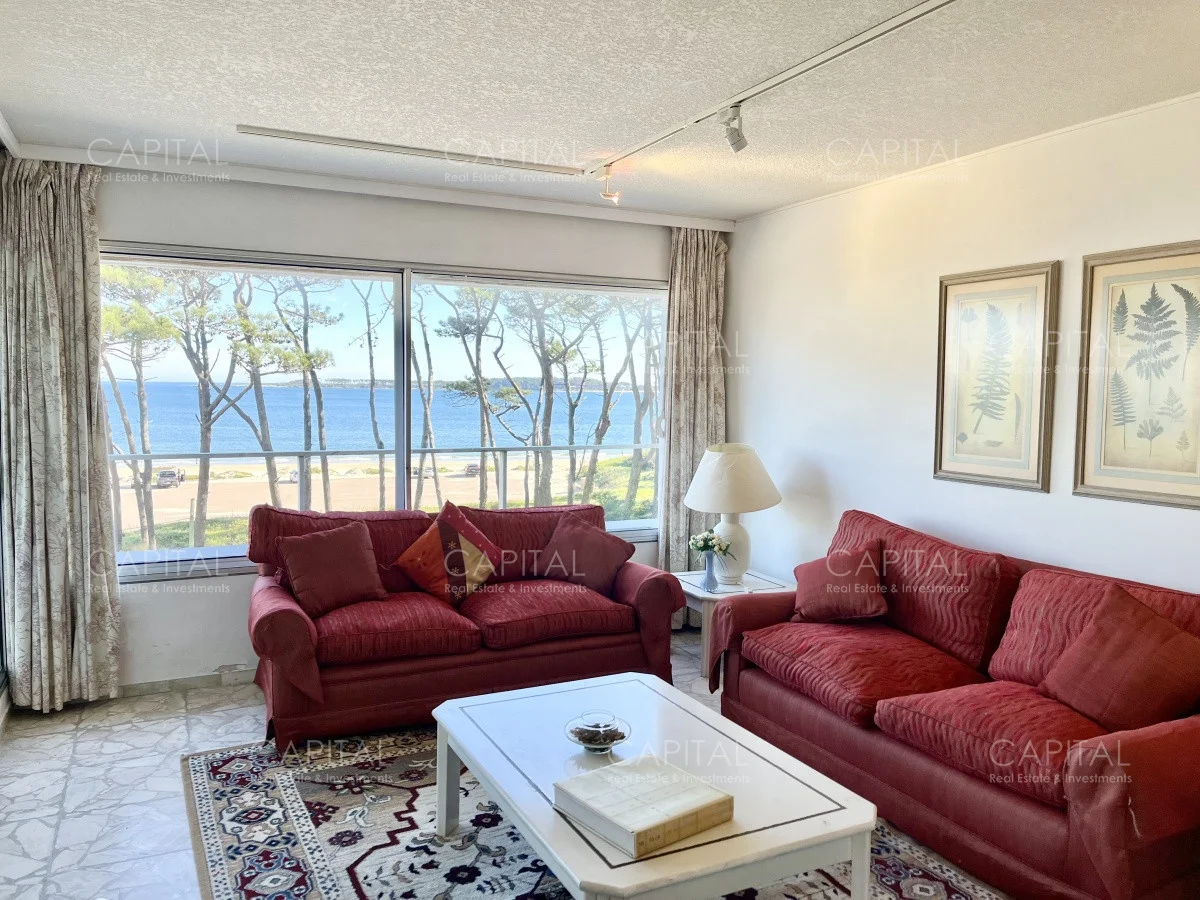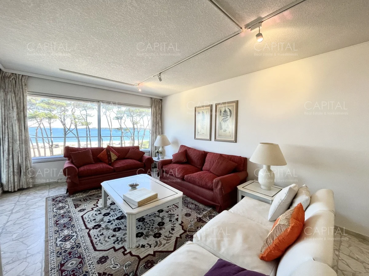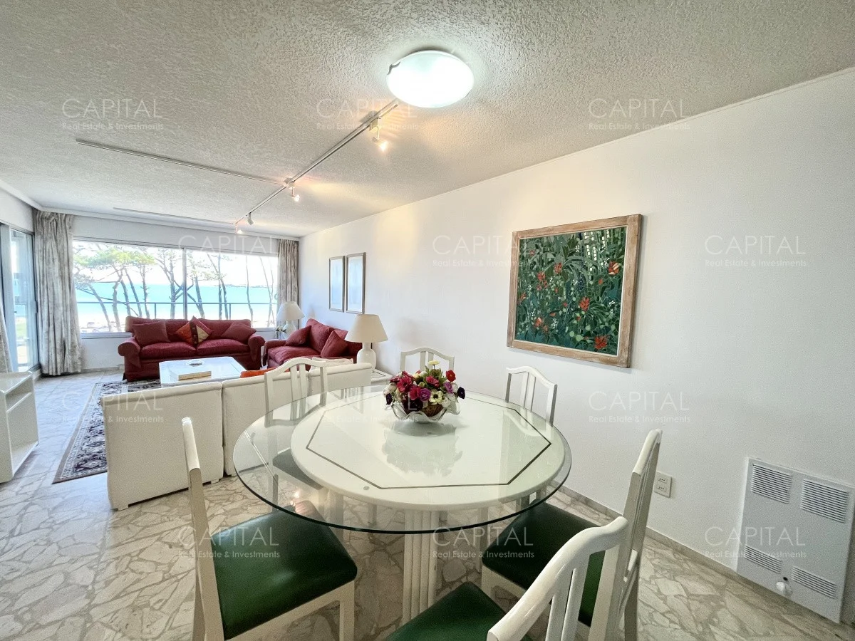 Apartamento en Venta primera linea Playa Mansa. Cuenta con 2 dormitorios, 3 baños, dependencia de servicio con linda decoración la cual puede ser utilizada como un tercer dormitorio. Amplio living- comedor con excelente vista al mar. Cocina Bien Equipada equipada. Linda terraza para el disfrute de los atardeceres de Punta del Este. Garaje Ss de Mucama Seguridad 24 hrs Ss de Playa Referencia Interna : Tera-34542