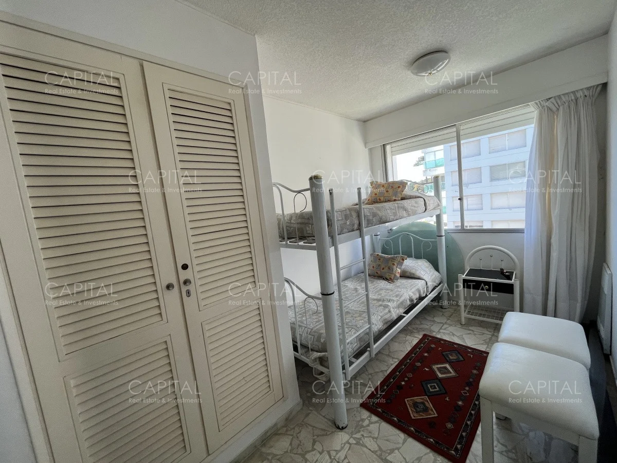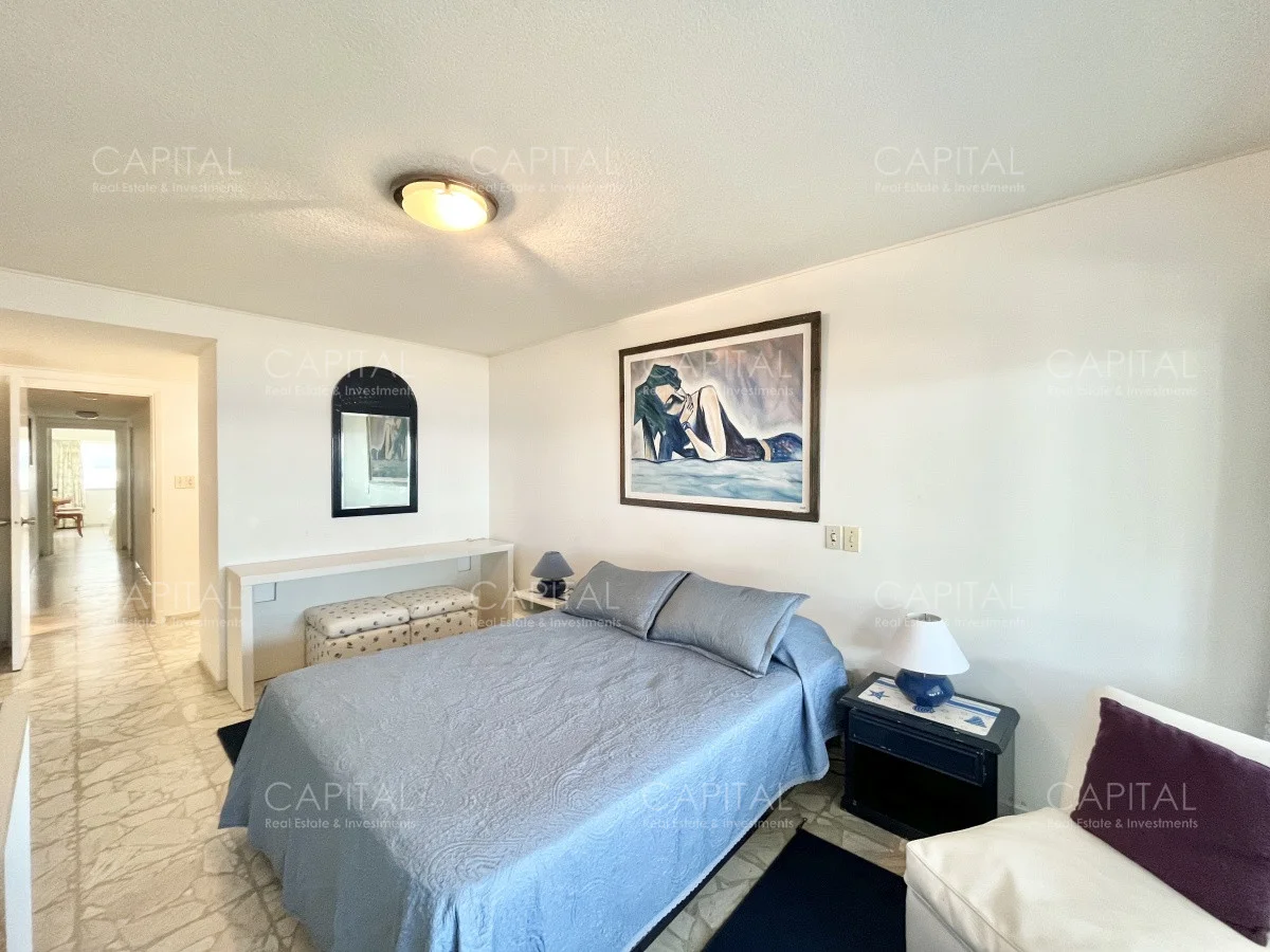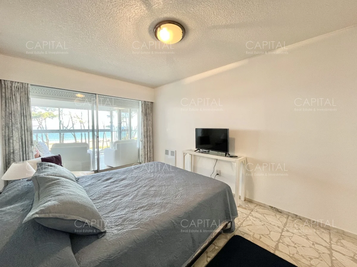 Apartamento en Venta primera linea Playa Mansa. Cuenta con 2 dormitorios, 3 baños, dependencia de servicio con linda decoración la cual puede ser utilizada como un tercer dormitorio. Amplio living- comedor con excelente vista al mar. Cocina Bien Equipada equipada. Linda terraza para el disfrute de los atardeceres de Punta del Este. Garaje Ss de Mucama Seguridad 24 hrs Ss de Playa Referencia Interna : Tera-34542