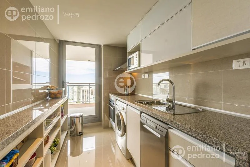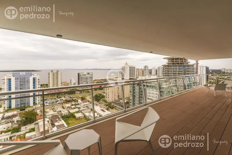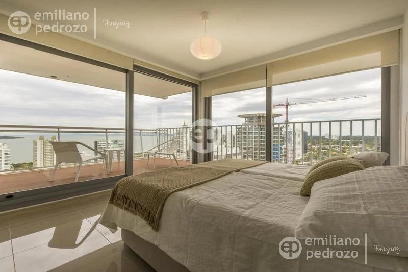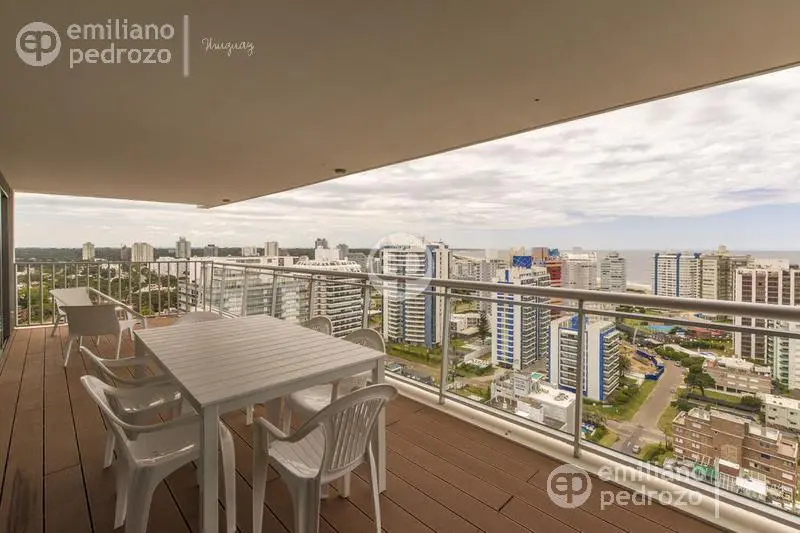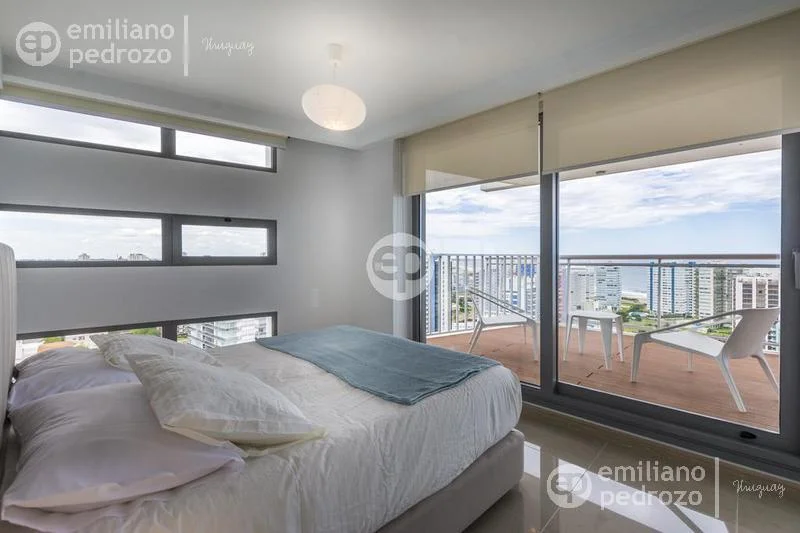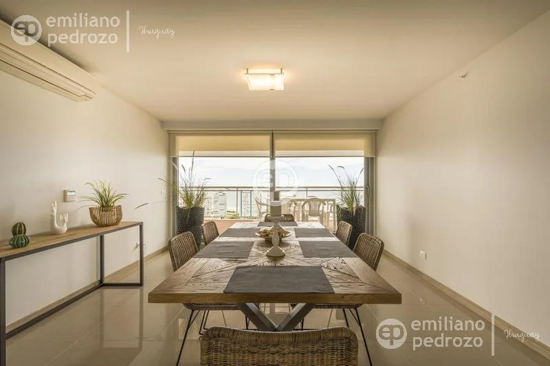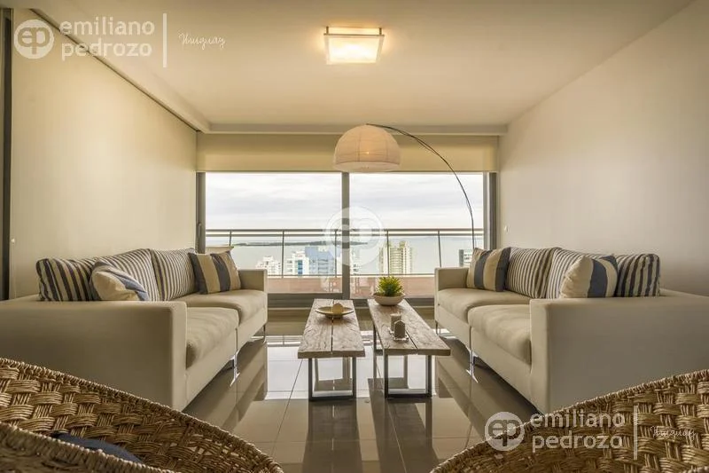 Amplia planta ubicada en piso alto con excelente vista al mar. Cuenta con 3 dormitorios (1 suite), 2 baños y toilette de visitas. Gran living comedor pasante, con vista a Playa Mansa y a Playa Brava. Cocina totalmente equipada. Cómoda terraza con parrillero y otra terraza con jacuzzi propio. No dude en consultar y podrá disfrutar de unas vacaciones espectaculares!