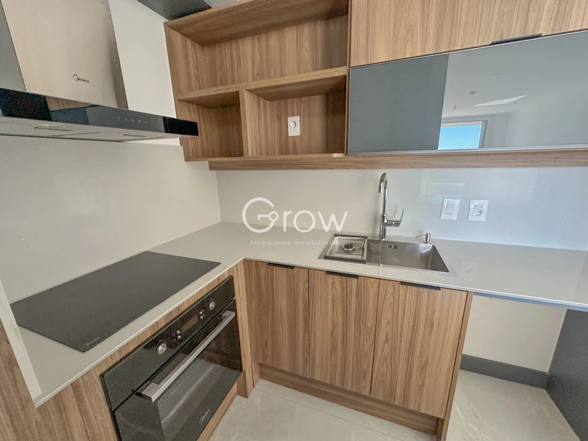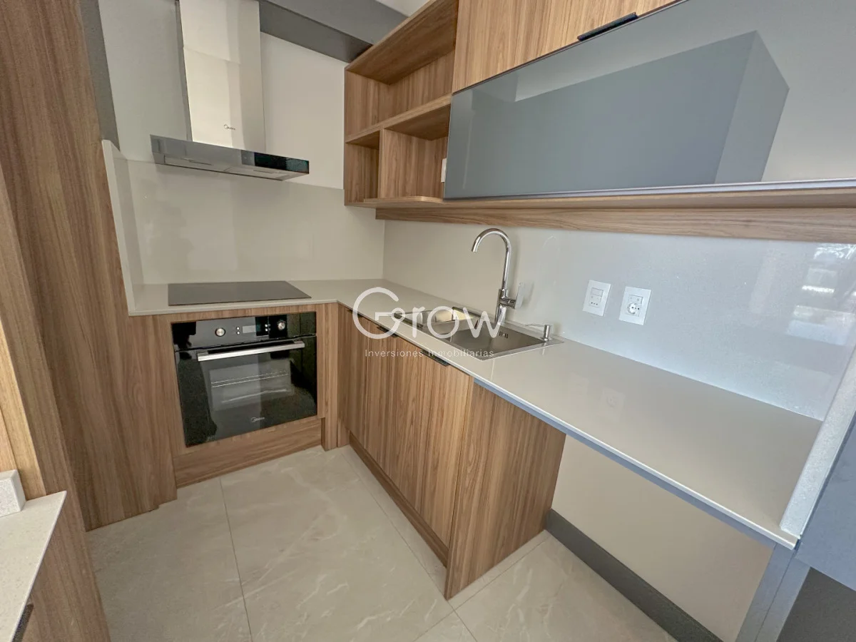 Hermoso departamento con excelente orientación solar Norte, 1 dormitorio, 1 baño completo, living comedor con acceso al balcon, cocina integrada con barra desayunadora y garage ubicado en el sub suelo.