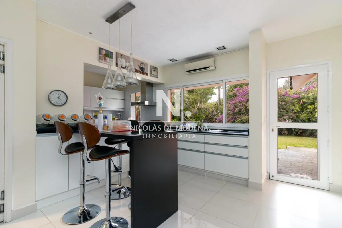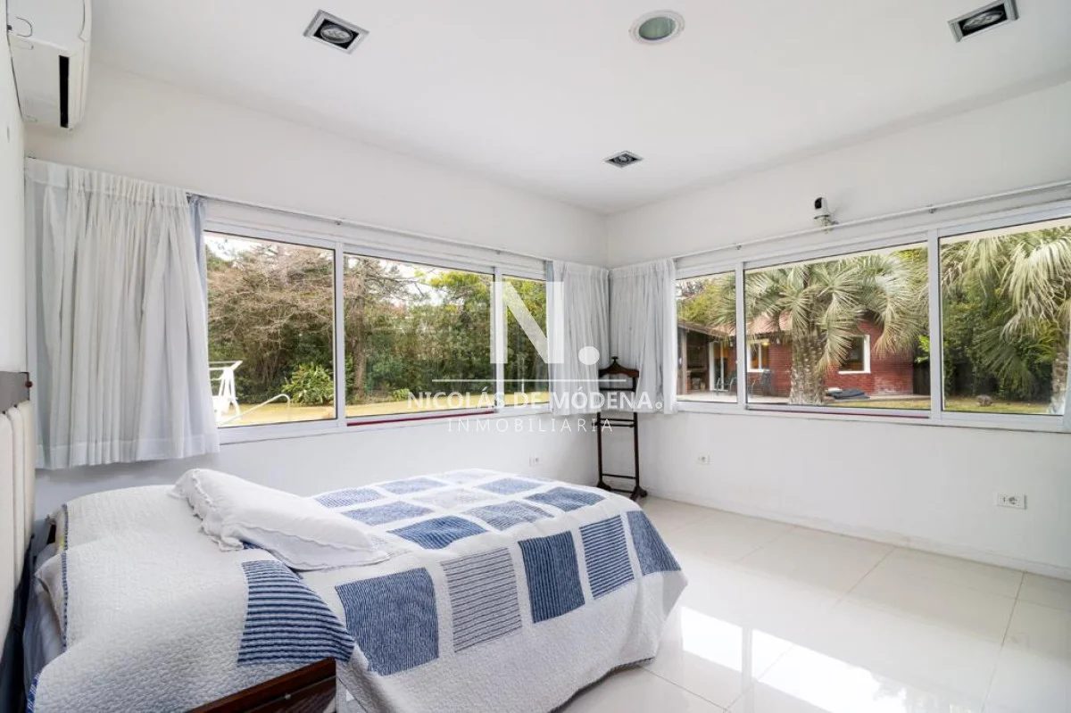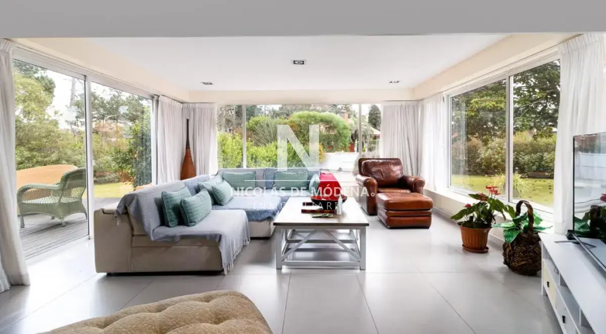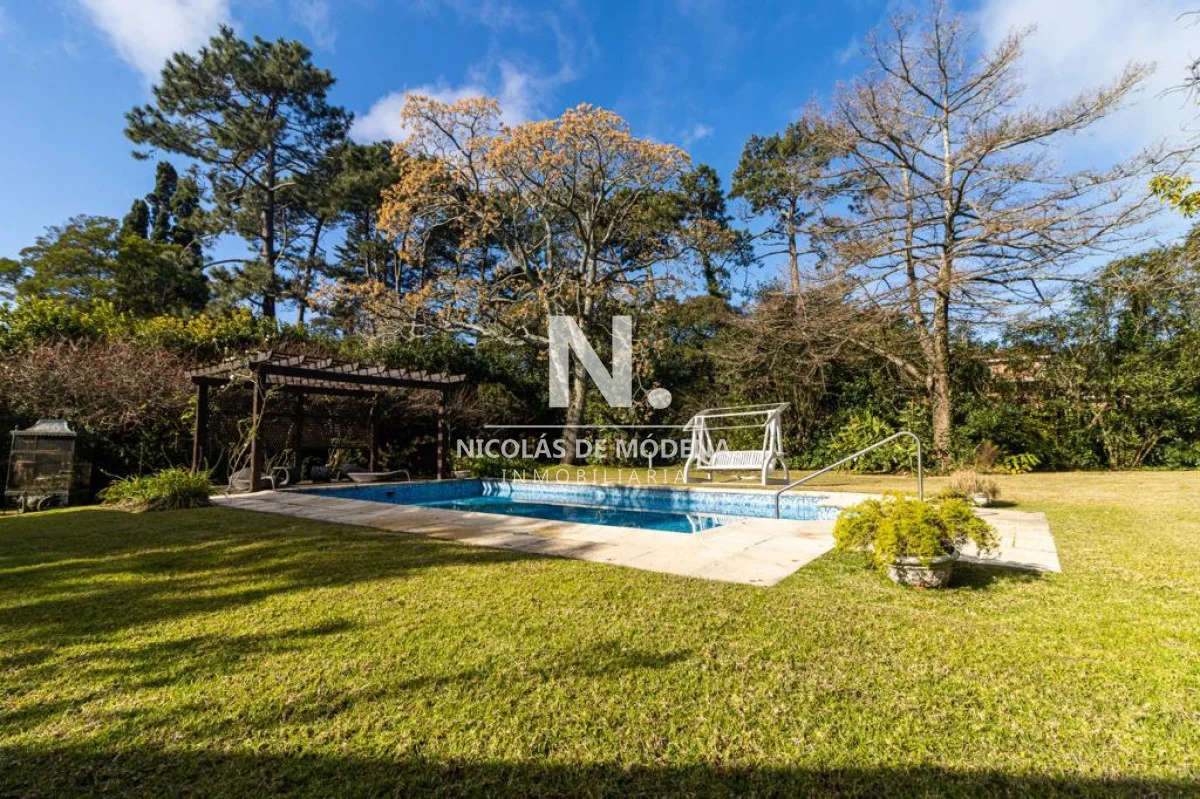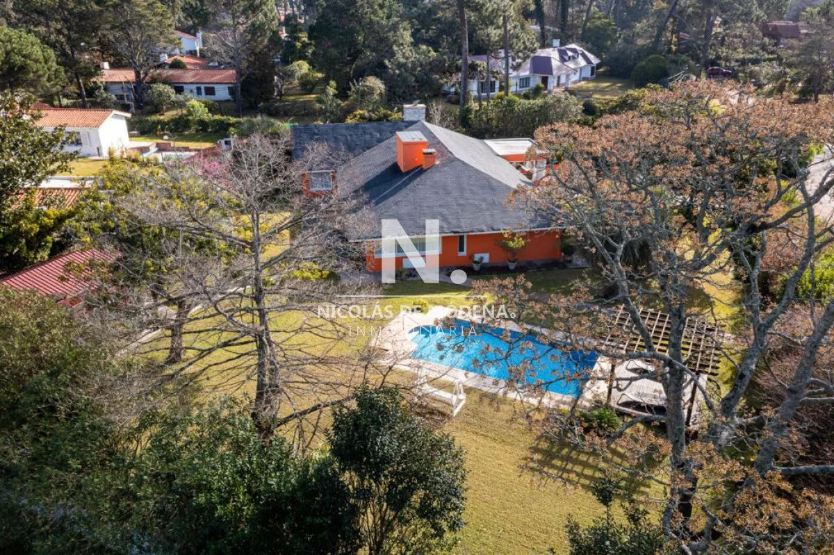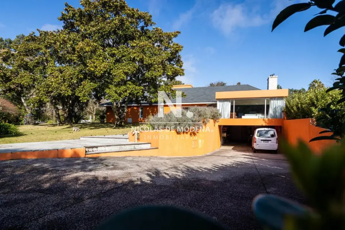 Excelente casa, de solida construccion en Barrio Cantegril, distribuida en una planta en un lote de 2547m2. Amplio living comedor pasante, donde se segmentan bien el área de estar con hogar a leña y área de comedor, terraza al jardin muy agradable. Cuenta con 5 dormitorios, 3 de ellos en suite, el principal grande con buen vestidor y baño con jacuzzi. Excelente jardín, todo cercado y con un parque espectacular, piscina muy linda. Dentro de la casa 4 baños y Toilette. La cocina esta reciclada y muy bien equipada. Barbacoa bien equipada con baño. Dependencia de Ss con Baño. Ac en todos los ambientes Garaje para 2 autos cerrados y Estacionamiento para 3 autos mas. Referencia Interna : Tera-14657