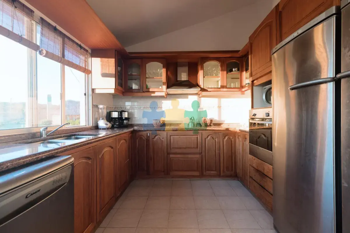 segundo piso con cocina completa y otro comedor, también con estufa a leña, y salida a terraza con parrillero