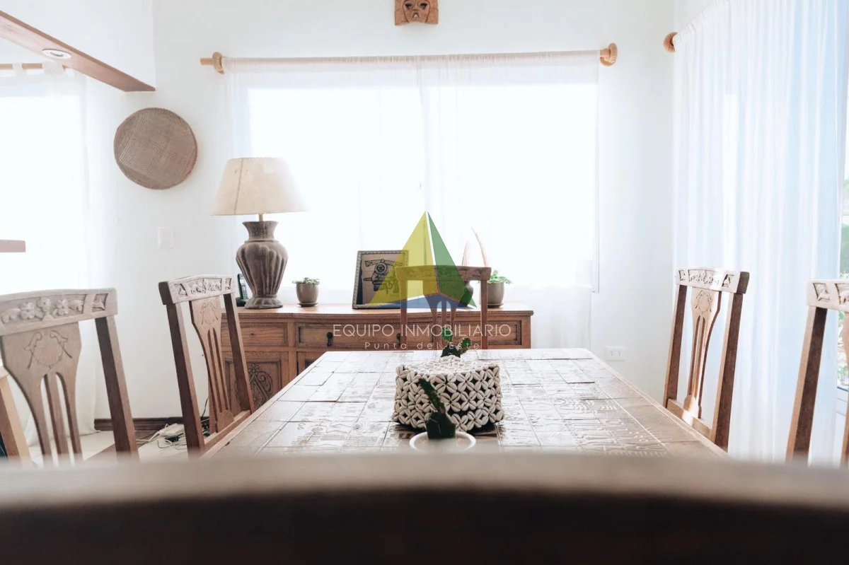 planta baja con living-comedor con estufa a leña y bar, tres dormitorios y un baño