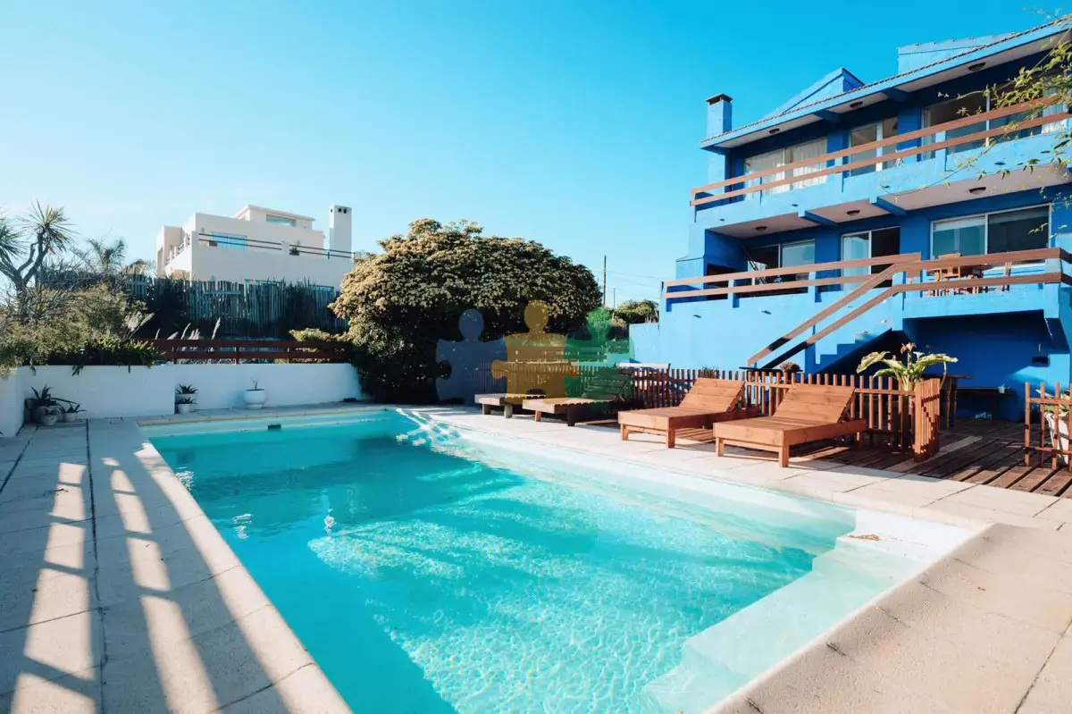 En el fondo está la piscina con deck de madera y otro parrillero techado. Tiene garage y estacionamiento propio.