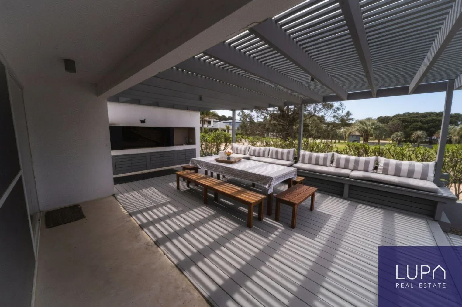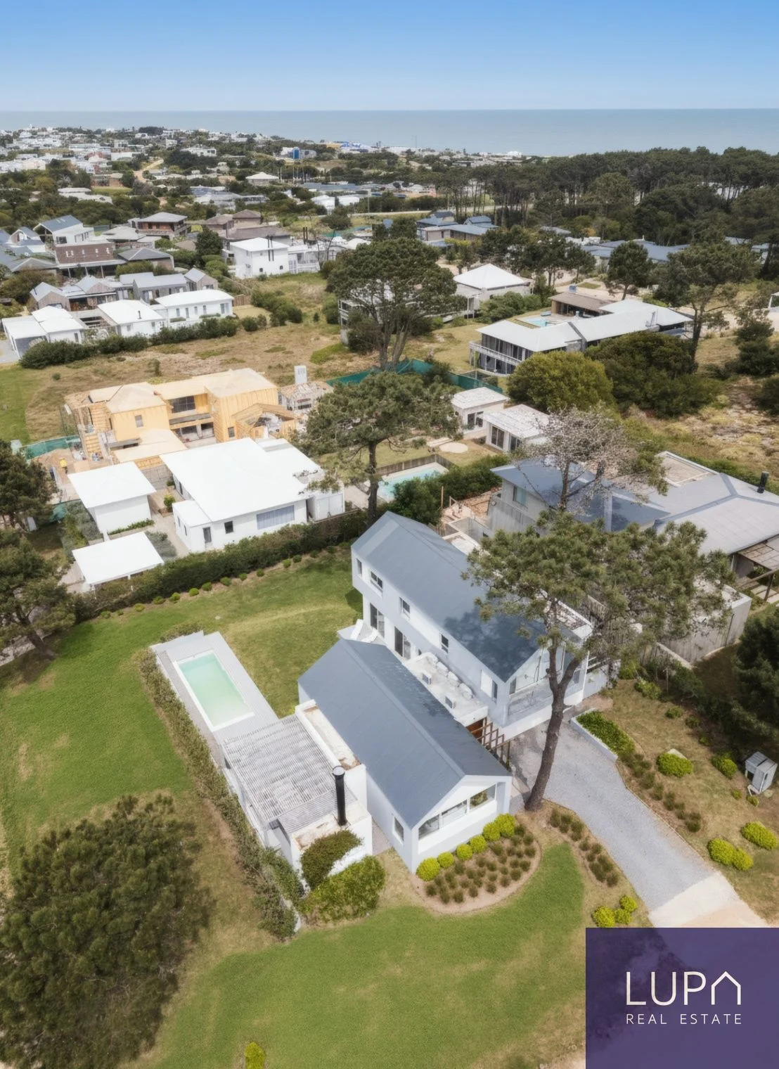 Con una capacidad para 14 personas, la propiedad cuenta con 6 amplios dormitorios, de los cuales 4 son en suite, y 6 baños diseñados con acabados de alta calidad. Distribuida en un terreno de esquina de 1.037 m², la casa se extiende sobre 410 m² construidos, que incluyen 280 m² cubiertos y 130 m² de terrazas al aire libre, ideales para disfrutar del clima y la belleza natural de la región.