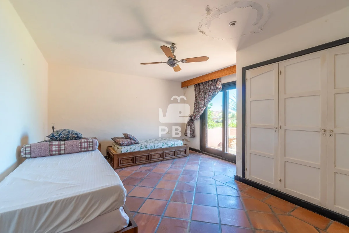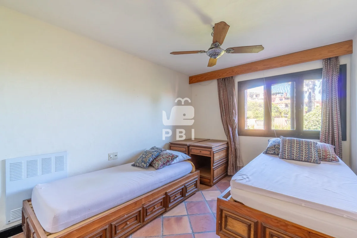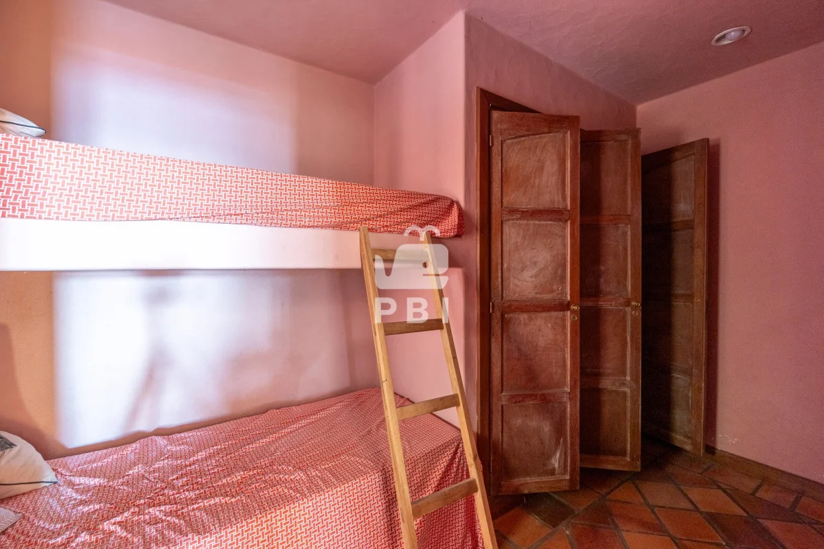 La planta baja dispone de cuatro dormitorios, destacándose la suite principal con jacuzzi. Todas las habitaciones cuentan con salida directa al jardín privado con piscina, creando un espacio ideal para el descanso y la recreación.