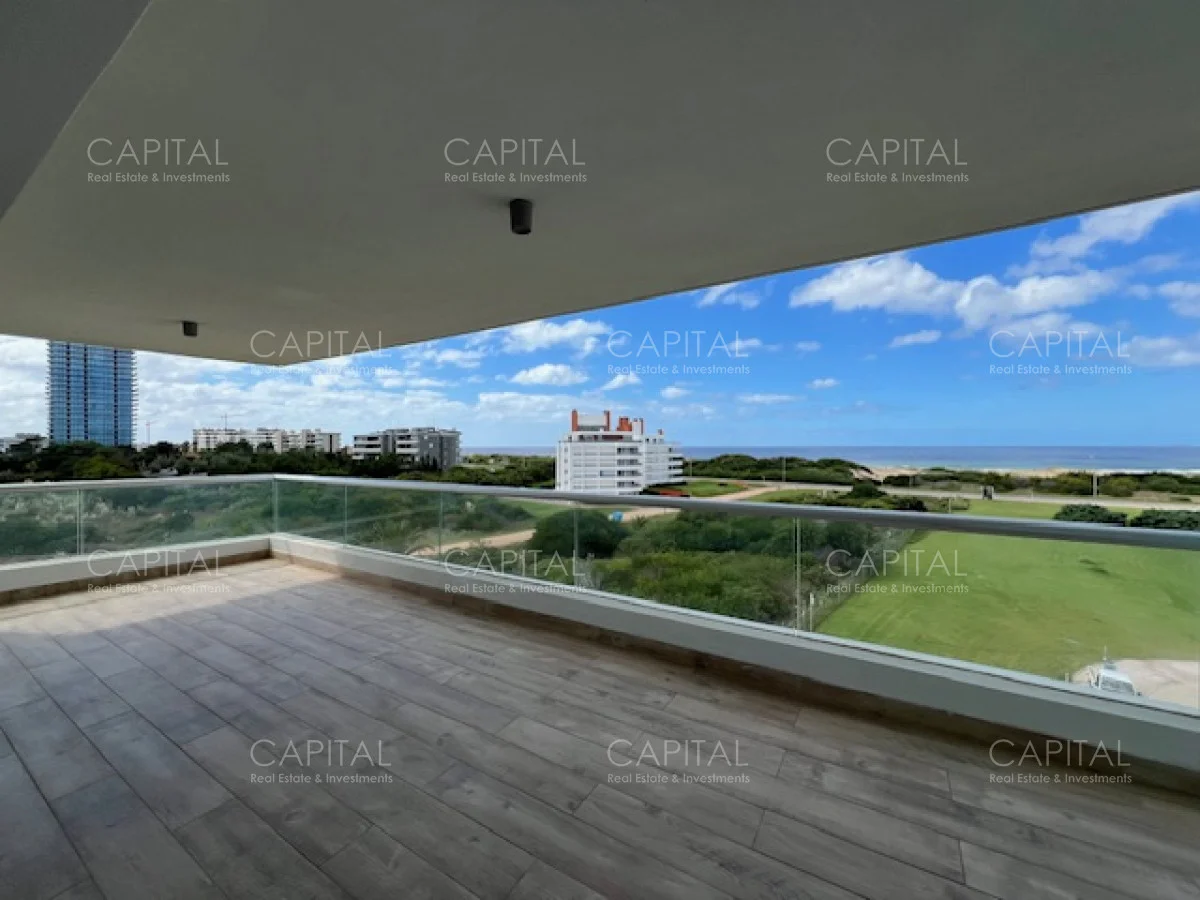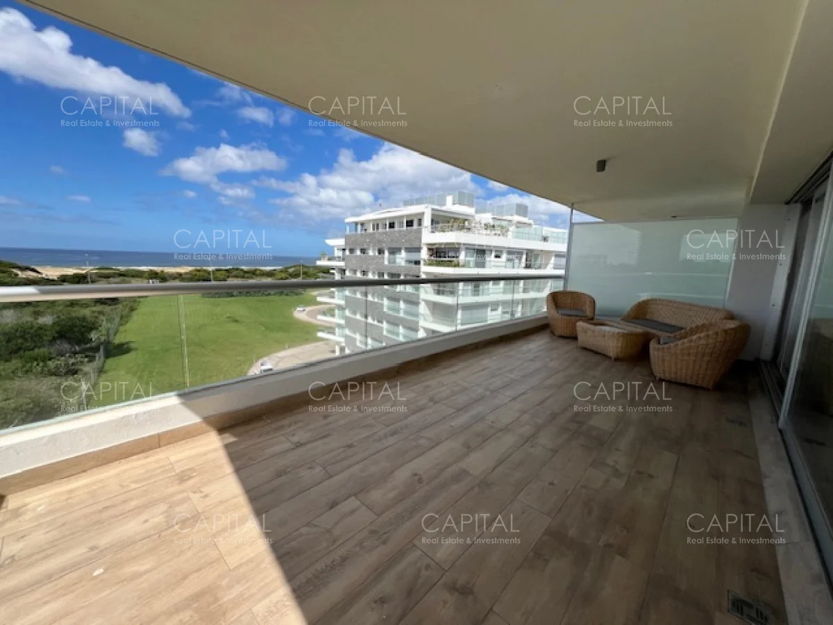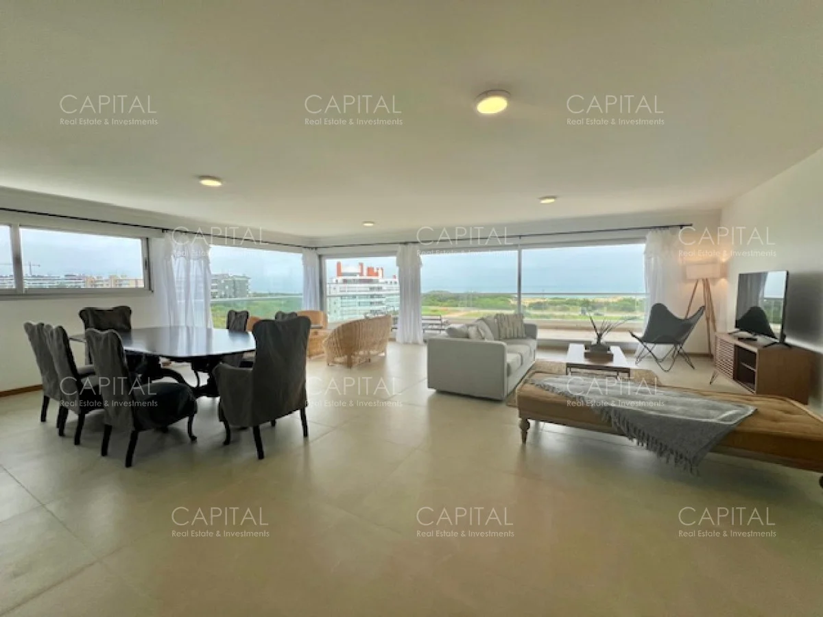 En la parada 33 de la Brava se encuentra el complejo Silente, con 3 bloques de apartamentos siendo esta unidad en 5to piso esquinero a La Barra, con vista asegurada al mar. Cuenta con grandes ambientes, todo con mucha luz. Living comedor con cocina semi integrada, 3 suites completas, toilette y dependencia de servicio con su baño y lavadero. Todo el living da al balcon aterrazado para disfrutar de la vista a los jardines y el mar.
