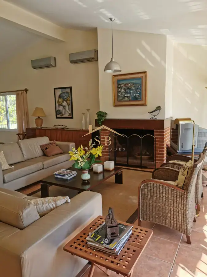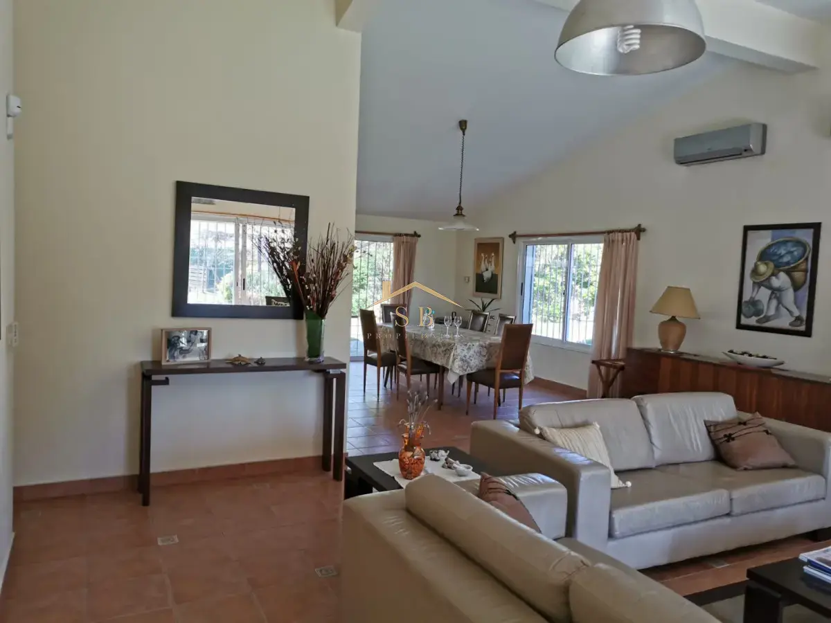 4 dorm., 2 en suite, gran Living comedor amplia cocina moderna, todos los ambientes con aire acondicionado y también el boungalow independiente 1 dorm y 2 camas y baño. Cochera para 4 autos, parque cerrado arbolado, jardín ceped.
