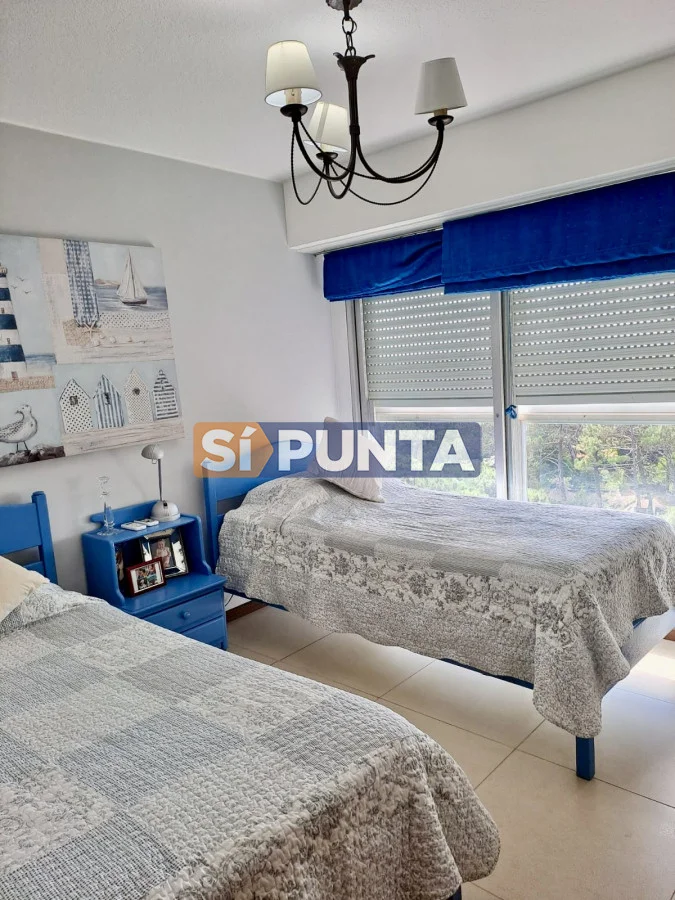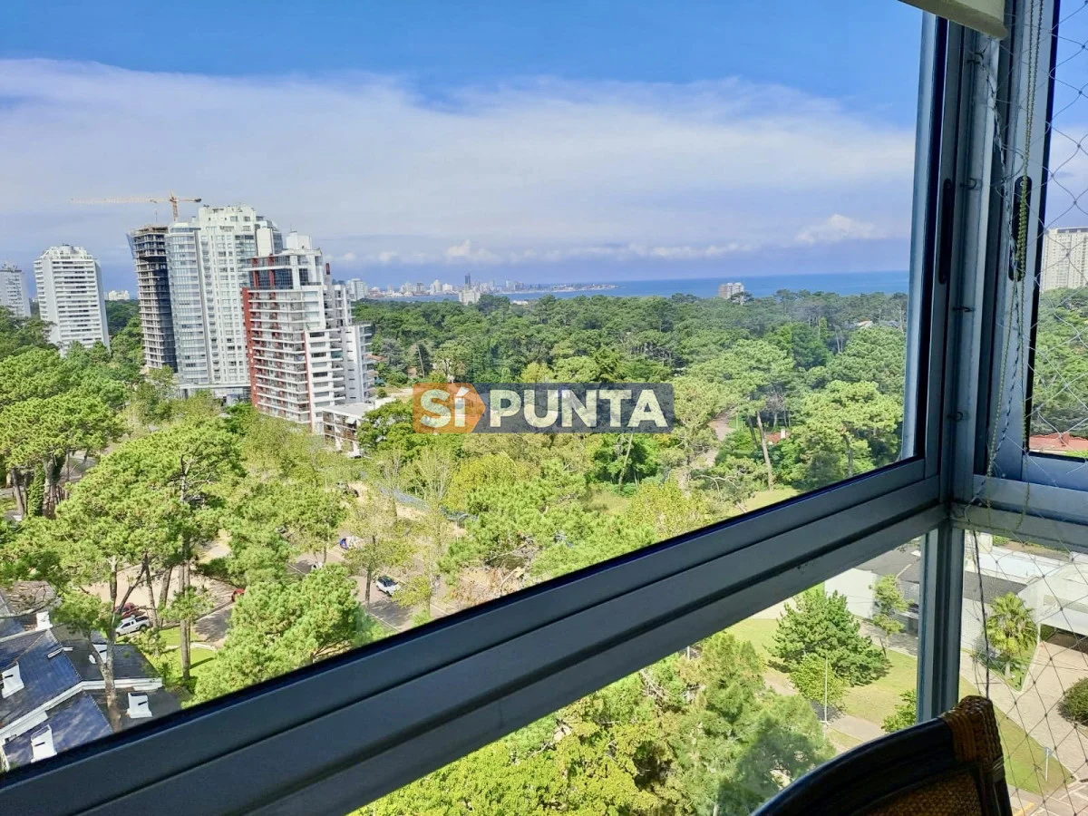 Hermoso apartamento con vista al mar! Piso alto Amplio living comedor con terraza cerrada con una hermosa vista del mar y bosque. Cocina independiente 2 dormitorios, 1 en suite. Muchos placares. Garage con baulera. Edificio con mucama diaria Piscina Cancha de tenis Playroom Lavadero Gimnasio Seguridad 24 hs Barbacoas Consulta con nuestros asesores Referencia Interna : Tera-13096