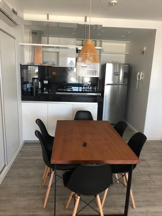 Excelente departamento de un dormitorio , en ubicación inmejorable.Consta de living comedor, con cocina americana, un dormitorio en suite , ademas un baño completo, que puede ser usado de toillete.Aire acondicionado frio calor en suite y living . Terraza con parrillero 1 cochera.El edificio cuenta con piscina y servicio de mucamas.