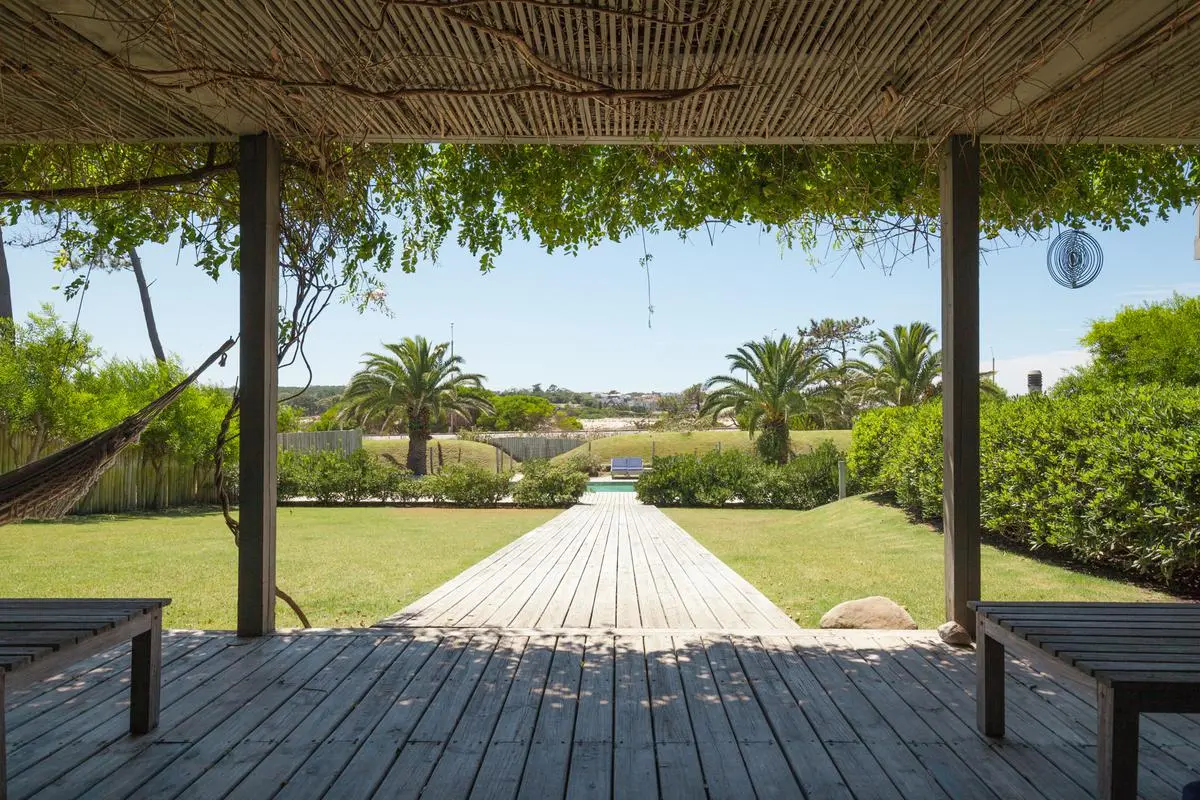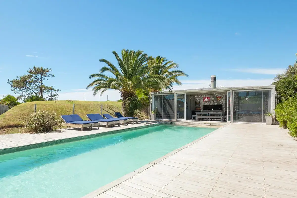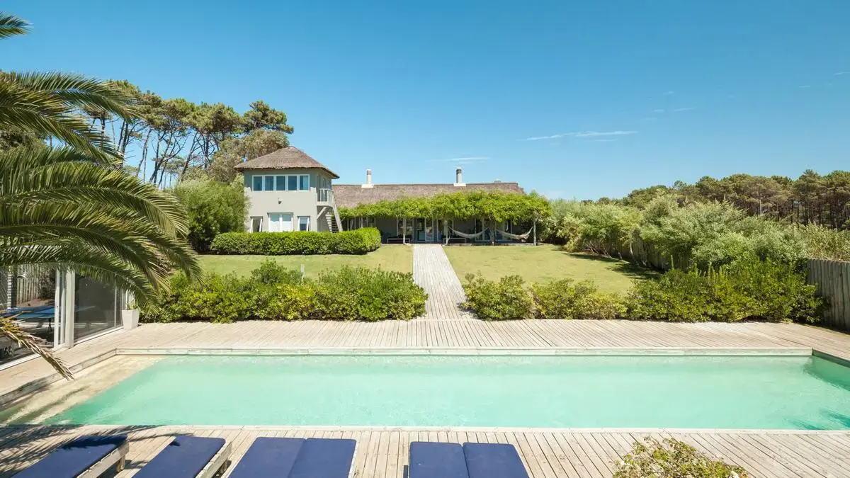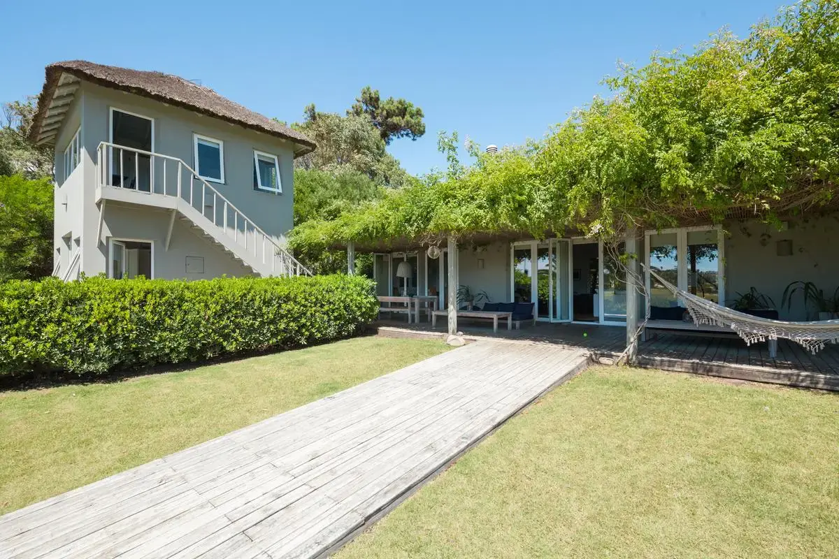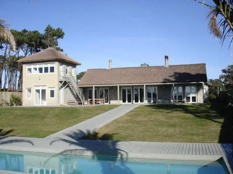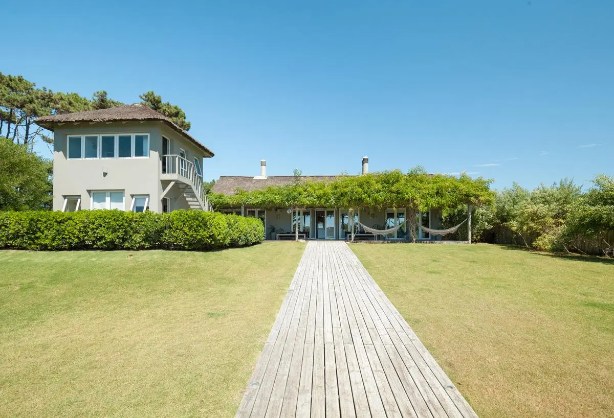 On a slope,this recently built thatched residence boasts unobstructed ocean views.This home contains full living quarters on the first and second stories,and five bedrooms,three en suite,and two additional in semi suite . Both the kitchen and the great room open to the incredible entertainment patio were the swimming pool and barbecue area become the chosen spots for summer gatherings. Caretaker\'s house. Within walking distance of La Barra and Brava beaches.