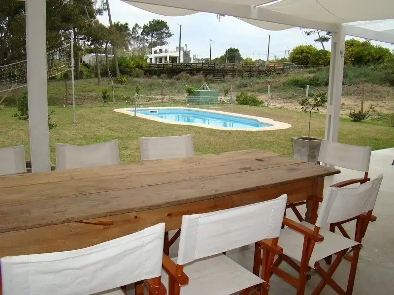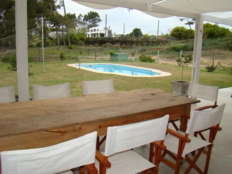 Esta propiedad rodeada de arboles y un lindo jardin tiene 4 dormitorios,2 de ellos en suite.Muy buen living comedor con cocina integrada,lleno de luz y con puertas ventanas que abren a la galeria de atras y area de la piscina. A pocas cuadras del centro de La Barra.