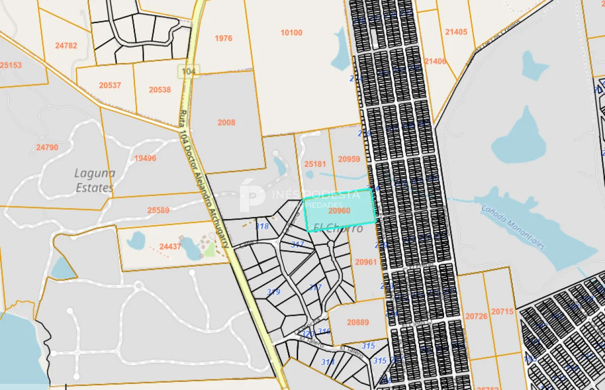 Ruta 104 en Manantiales, a tan solo 900 metros de la ruta 10. y rodeado de un entorno único, lindísimo lote de 5000 m2 arbolado con muy buen frente y totalmente cercado.