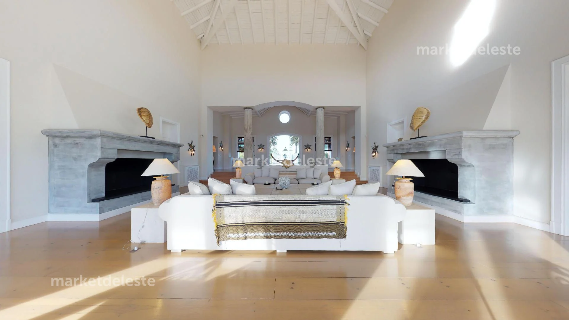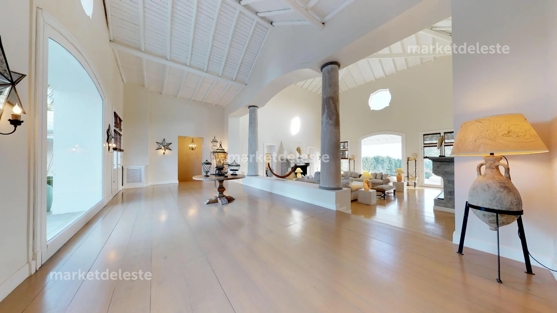 Esta propiedad ubicada en una de las zonas más altas del Golf La Barra, cuenta con una inmejorable vista, soñados atardeceres y majestuosos espacios. Cuenta con living, comedor, sala tv, 2 baños sociales, 2 guardarropas, cocina, ante cocina, despensa, comedor de servicio, lavadero, además de 7 suites de más de 100 mts2 cada una completísimas con vestidores y baños propios. También cuenta con 2 dormitorios de servicios con 2 baños y acceso independiente. Debajo de sus amplias galerías encontramos un living exterior y un comedor con una mesa para 22 personas. También tiene una infinity pool con 2 baños un sauna, sala de masajes, gym y predisposición para un spa.