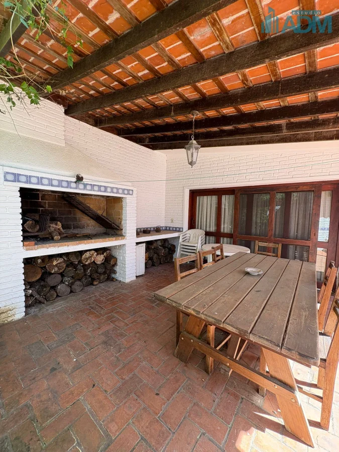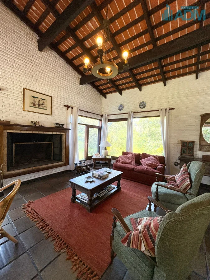 La Casa esta sobre un lote de 1000 mt2 desarrollada de la siguiente manera: Entramos a un gran ambiente que consta de 2 livings,de techos bien altos, con vigas de madera gigantes, con una estufa a leña muy linda,al lado tiene un comedor definido muy lindo.