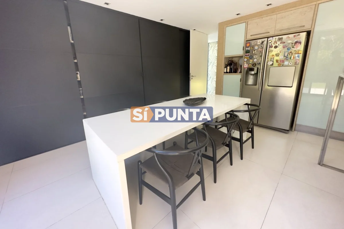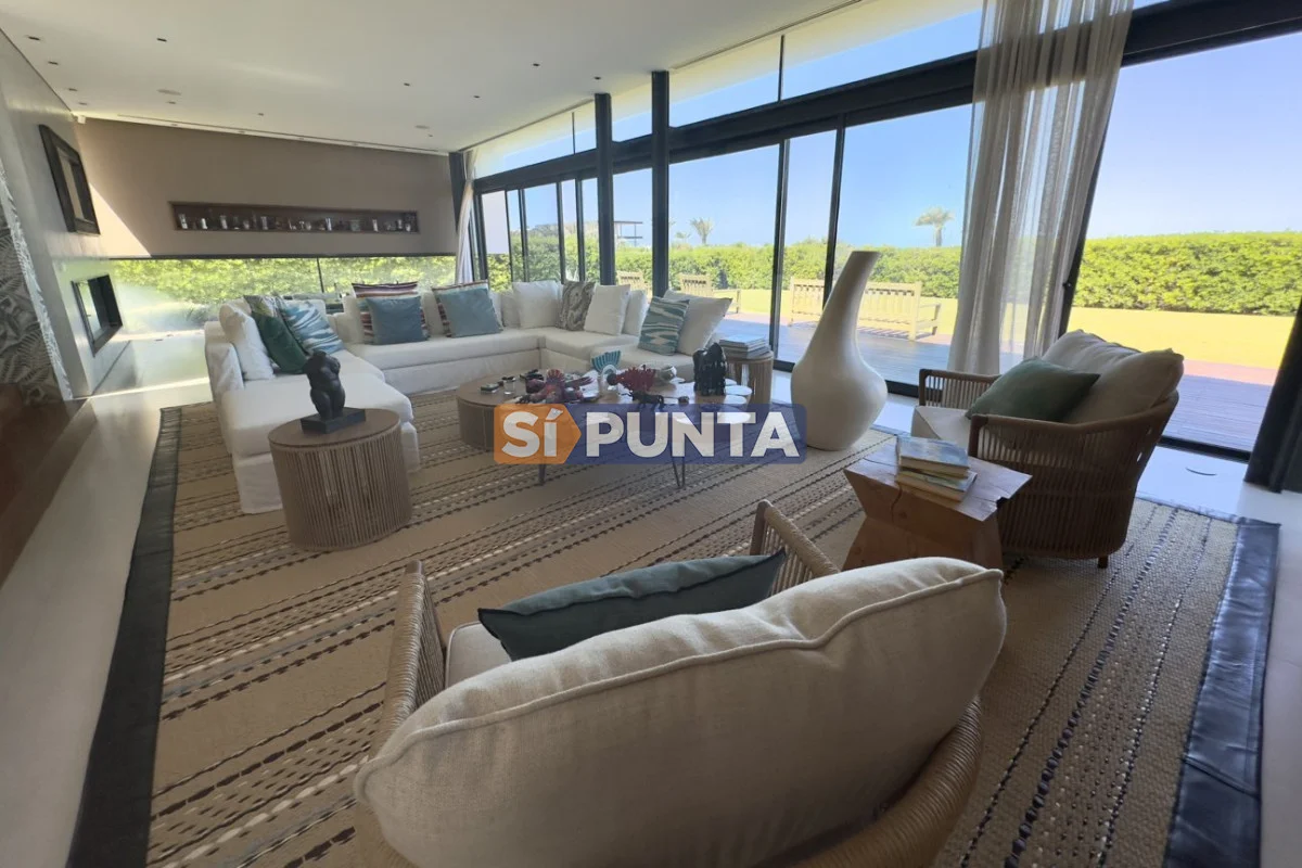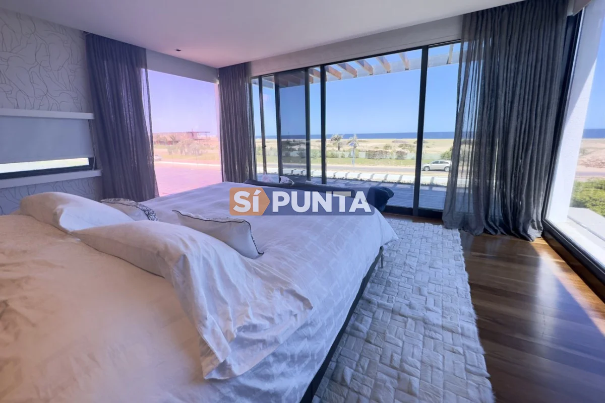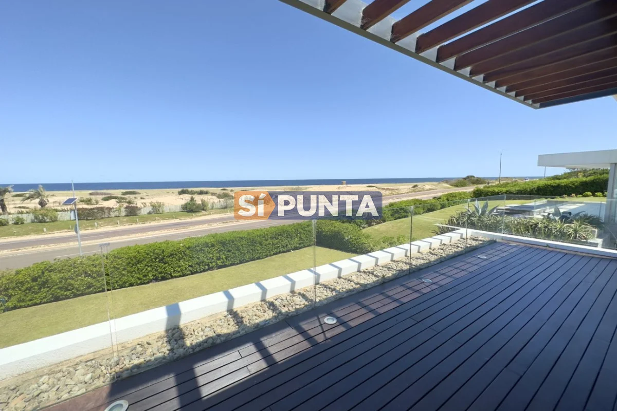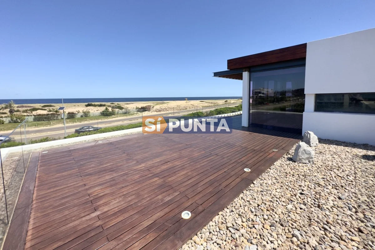 Moderna casa frente al mar en Manantiales, ubicada en Barrio privado Laguna Blanca. Ideada para el máximo disfrute construida en 3 plantas. Comodidades: Planta alta: -Encontramos la suite principal con salida a una gran terraza, vista al mar espectacular, vestidor y baño con hidromasaje. -2 dormitorios en suite con bañera. -Playroom con salida a otra terraza. Planta media: -Hall de recepción -1 Toilette -Gran living con estufa a leña y comedor -Cocina totalmente equipada -Barbacoa con conexión al jardín -Piscina conectada con la barbacoa, dejando una parte de ella techada. Planta baja: -Microcine, totalmente preparado -Cava de vinos -Mezcladora de DJ -Habitación de huéspedes -2 baños que atienden la parte recreativa y otro que atiende la piscina. -Dependencia de servicio con baño. -Sala de maquinas -Garaje para 2 autos. -Cámaras de vigilancia instaladas en el perímetro de la casa - AA en todos los ambientes Referencia Interna : Tera-1622