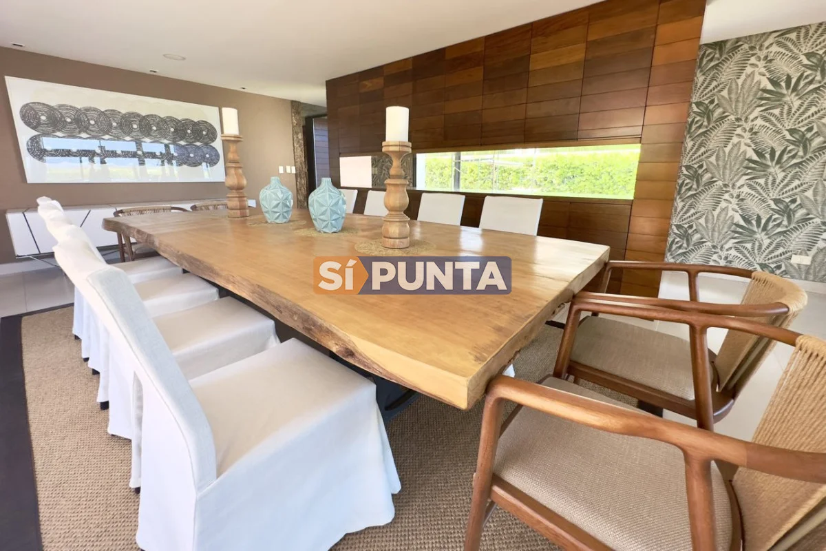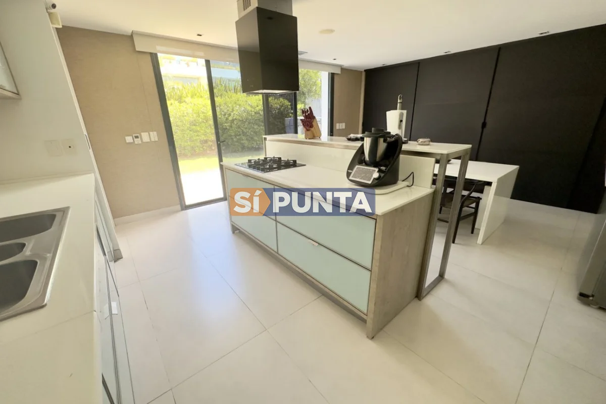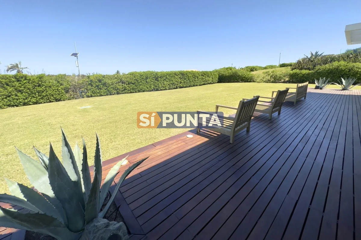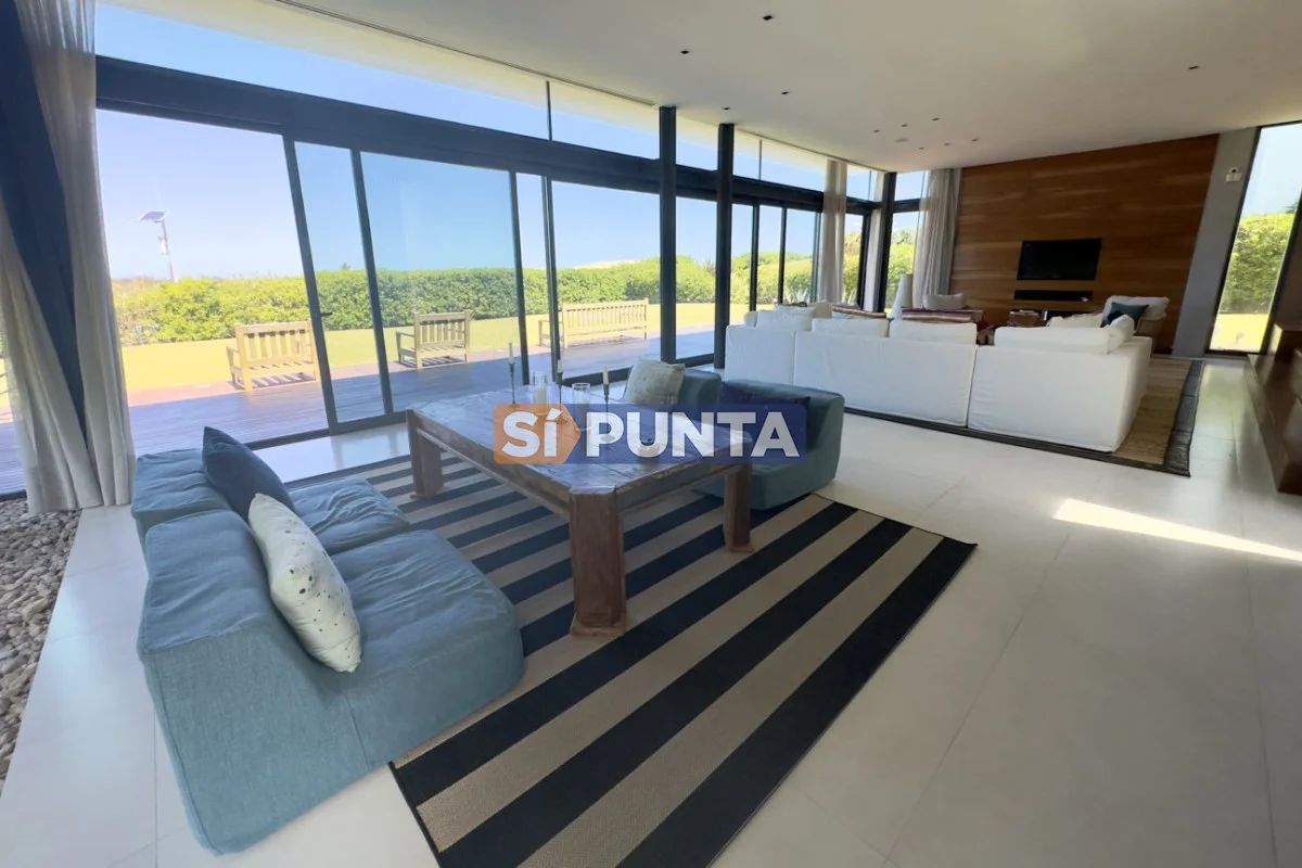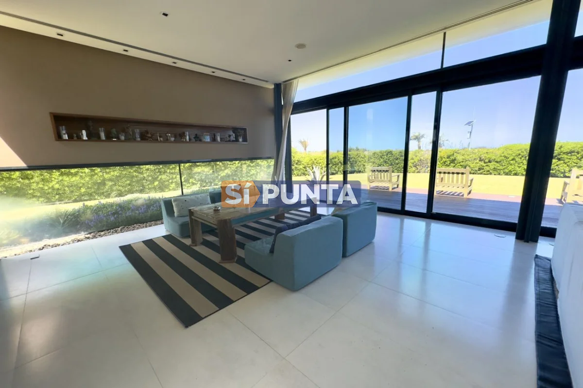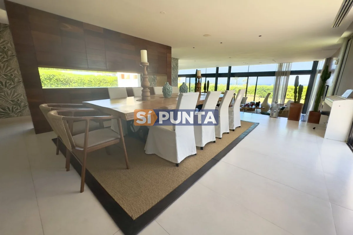 Moderna casa frente al mar en Manantiales, ubicada en Barrio privado Laguna Blanca. Ideada para el máximo disfrute construida en 3 plantas. Comodidades: Planta alta: -Encontramos la suite principal con salida a una gran terraza, vista al mar espectacular, vestidor y baño con hidromasaje. -2 dormitorios en suite con bañera. -Playroom con salida a otra terraza. Planta media: -Hall de recepción -1 Toilette -Gran living con estufa a leña y comedor -Cocina totalmente equipada -Barbacoa con conexión al jardín -Piscina conectada con la barbacoa, dejando una parte de ella techada. Planta baja: -Microcine, totalmente preparado -Cava de vinos -Mezcladora de DJ -Habitación de huéspedes -2 baños que atienden la parte recreativa y otro que atiende la piscina. -Dependencia de servicio con baño. -Sala de maquinas -Garaje para 2 autos. -Cámaras de vigilancia instaladas en el perímetro de la casa - AA en todos los ambientes Referencia Interna : Tera-1622