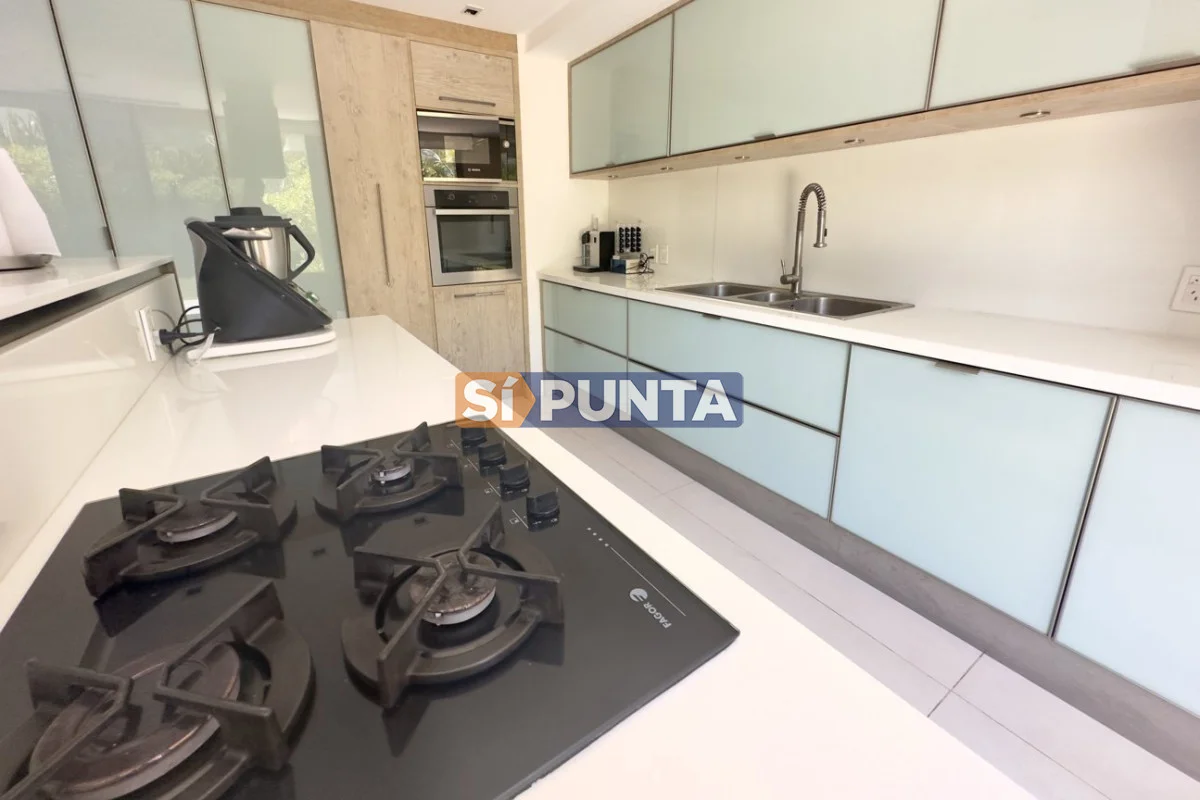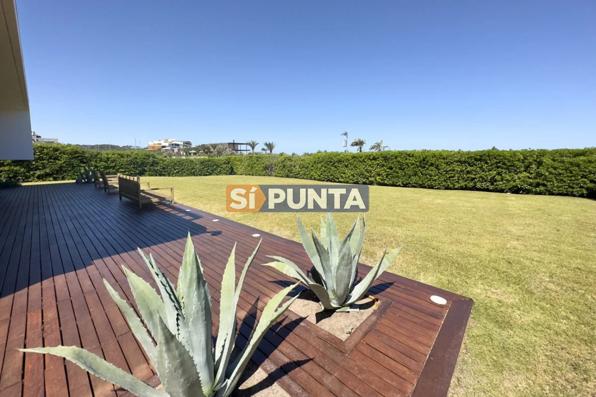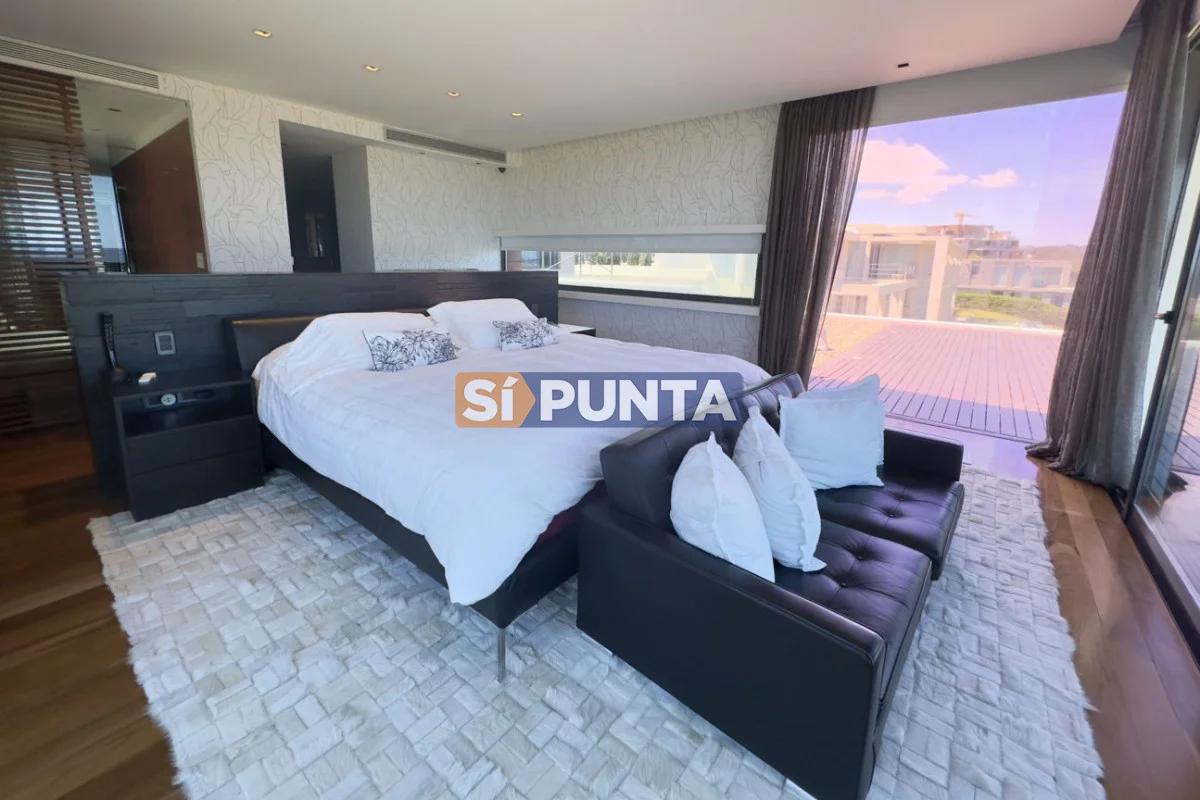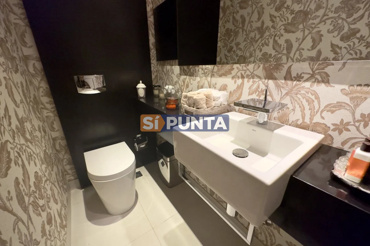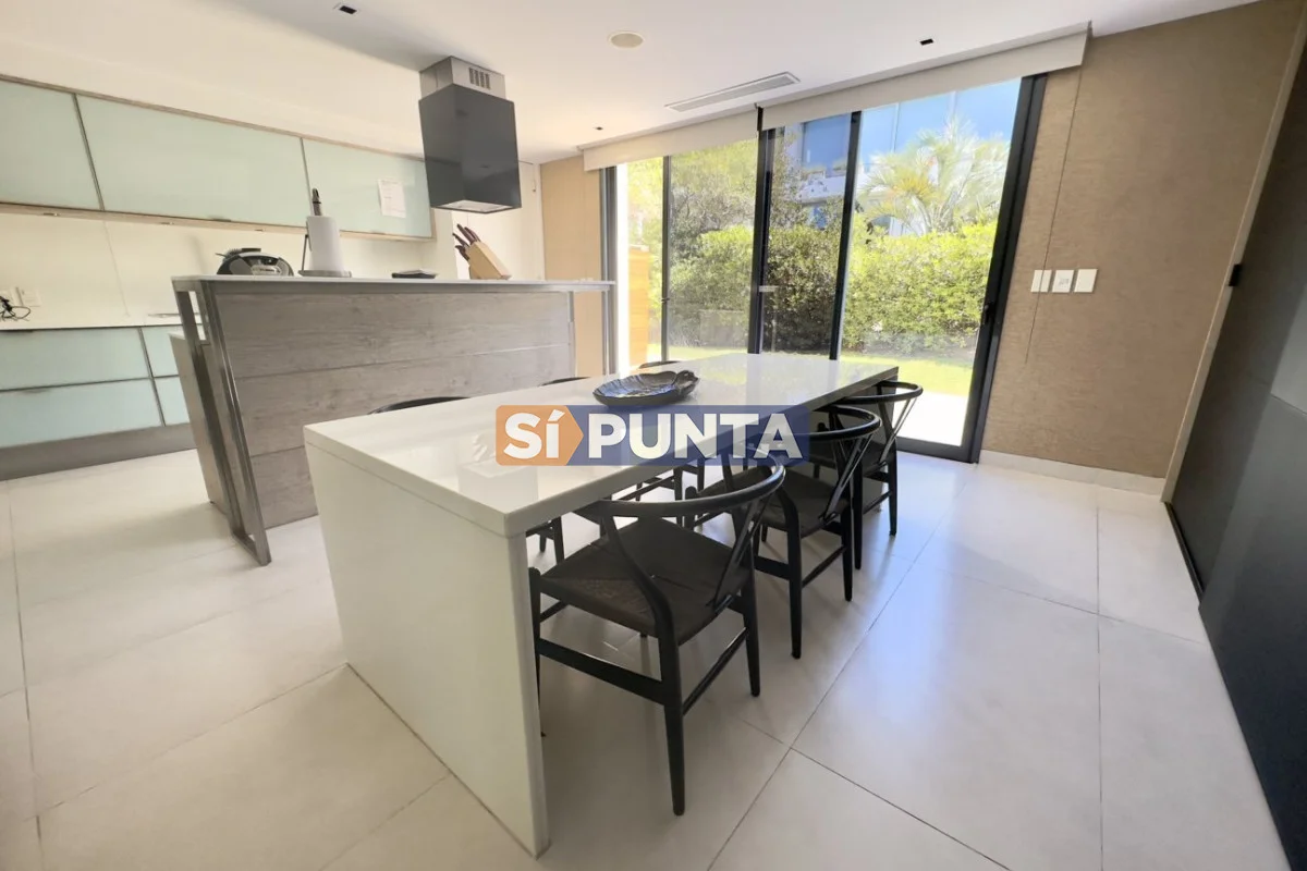 Moderna casa frente al mar en Manantiales, ubicada en Barrio privado Laguna Blanca. Ideada para el máximo disfrute construida en 3 plantas. Comodidades: Planta alta: -Encontramos la suite principal con salida a una gran terraza, vista al mar espectacular, vestidor y baño con hidromasaje. -2 dormitorios en suite con bañera. -Playroom con salida a otra terraza. Planta media: -Hall de recepción -1 Toilette -Gran living con estufa a leña y comedor -Cocina totalmente equipada -Barbacoa con conexión al jardín -Piscina conectada con la barbacoa, dejando una parte de ella techada. Planta baja: -Microcine, totalmente preparado -Cava de vinos -Mezcladora de DJ -Habitación de huéspedes -2 baños que atienden la parte recreativa y otro que atiende la piscina. -Dependencia de servicio con baño. -Sala de maquinas -Garaje para 2 autos. -Cámaras de vigilancia instaladas en el perímetro de la casa - AA en todos los ambientes Referencia Interna : Tera-1622