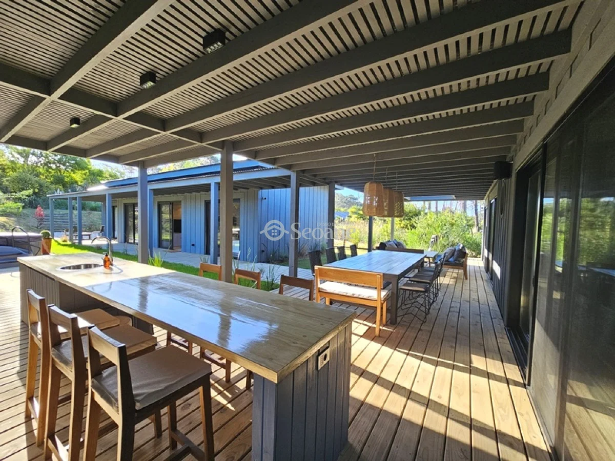 En una construcción independiente tenemos un pequeño estar, kitchenette, y los otros dos dormitorios en suite.