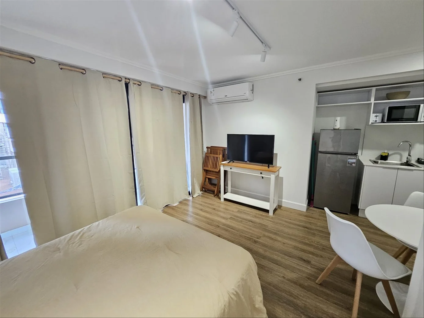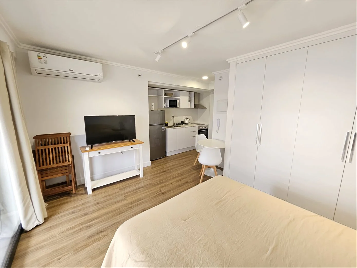Apartamento de un ambiente con vista lateral despejada hacia Avenida Roosevelt , con cómodo balcón (4m2) con conexión para lavarropas. Baño completo y cocina integrada. Cochera y completa área de amenities, ideal para renta. Consulte por posibilidades de financiación directa.