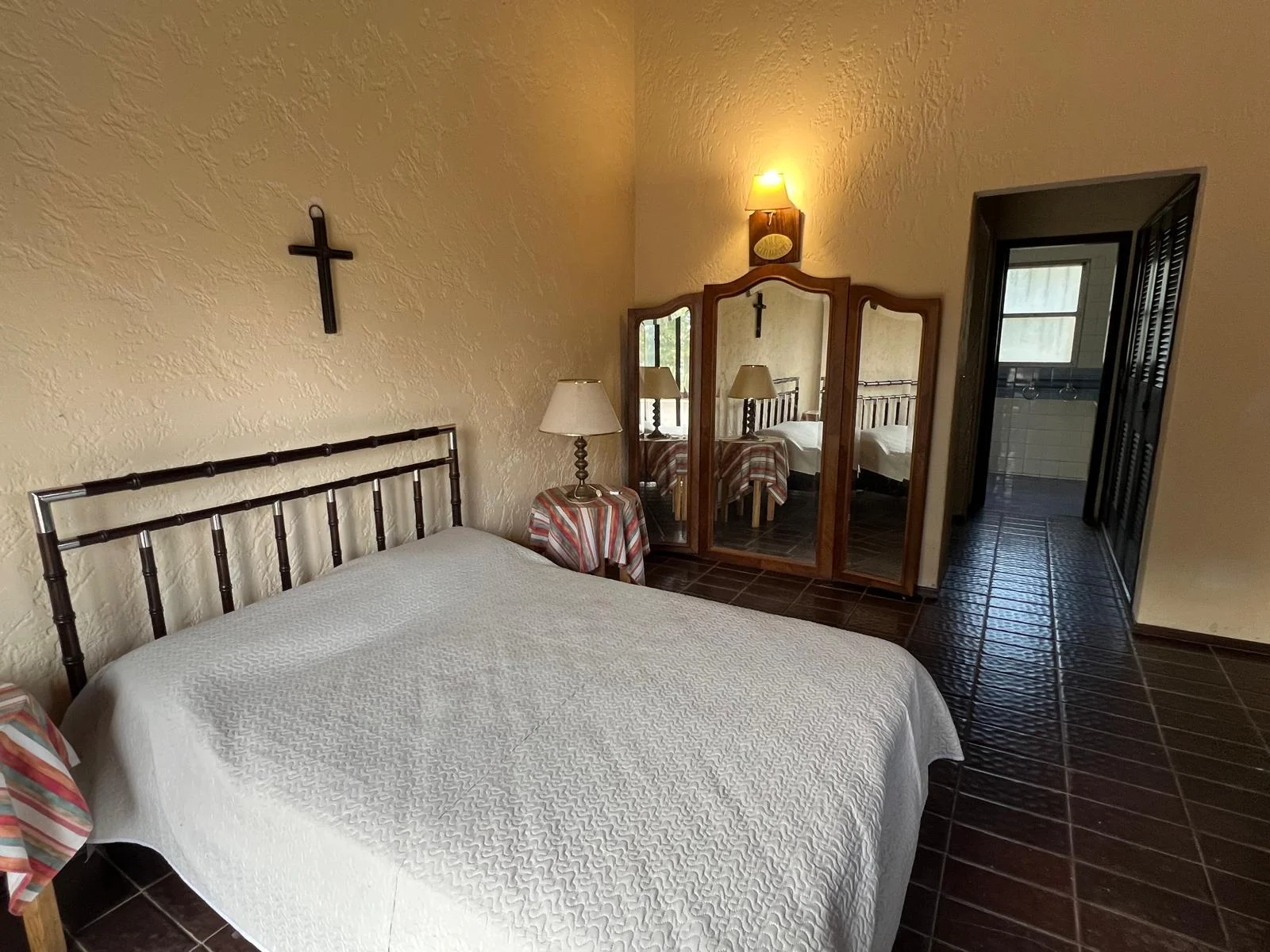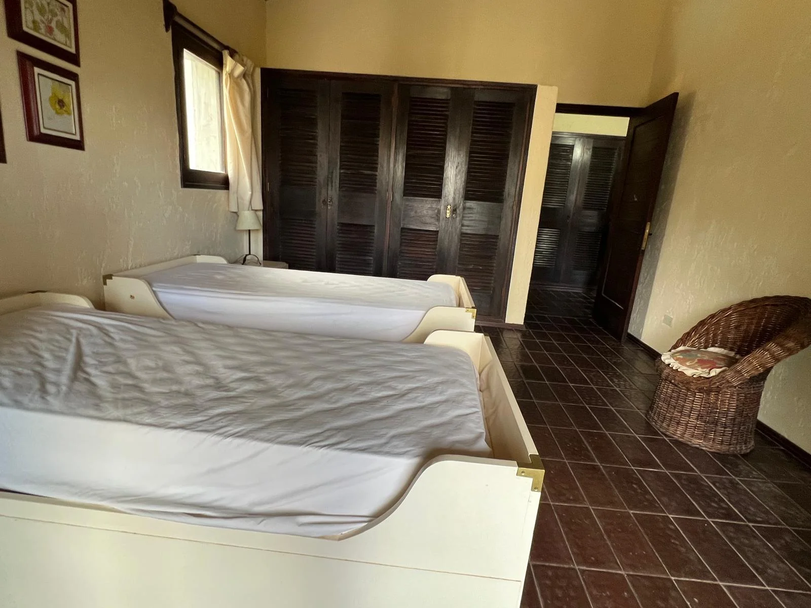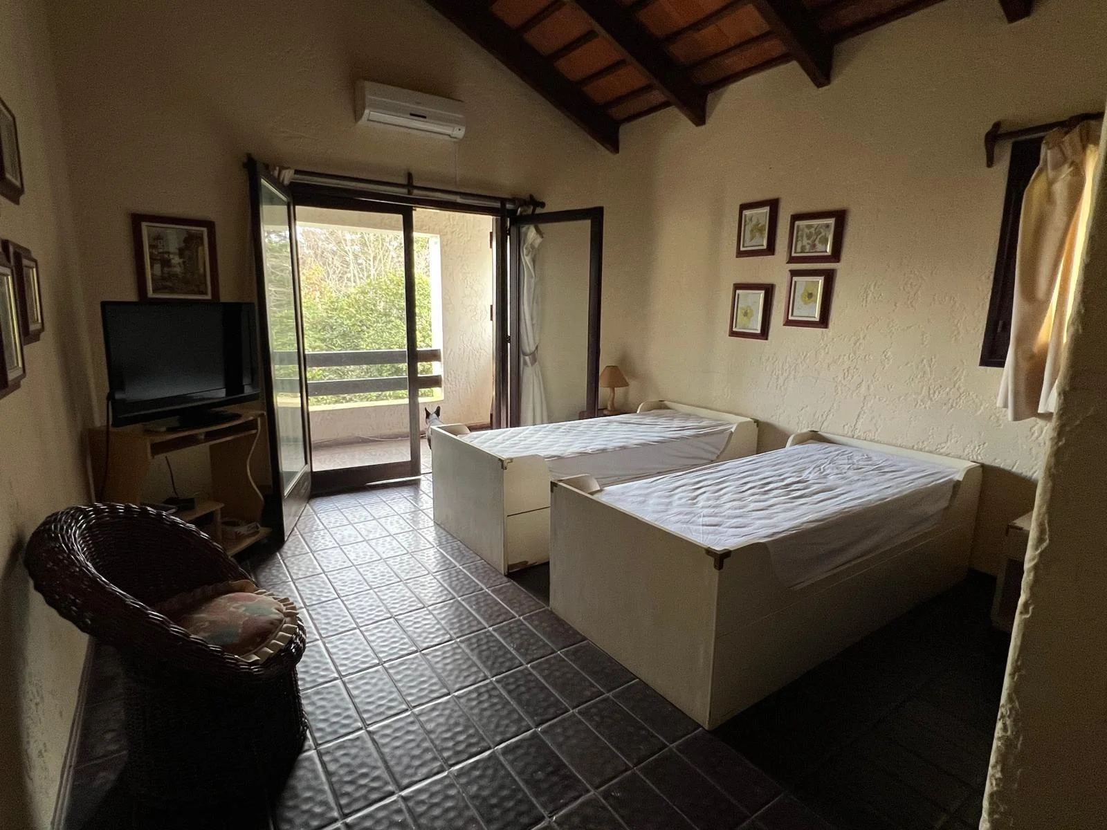 1 suite principal con estufa a leña, aire acondicionado, TV cable, sillón de relax y terraza privada con vistas al jardín.