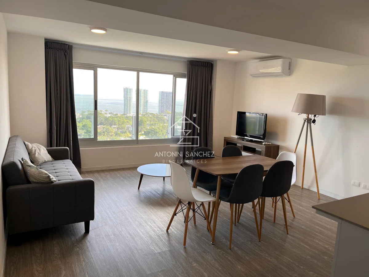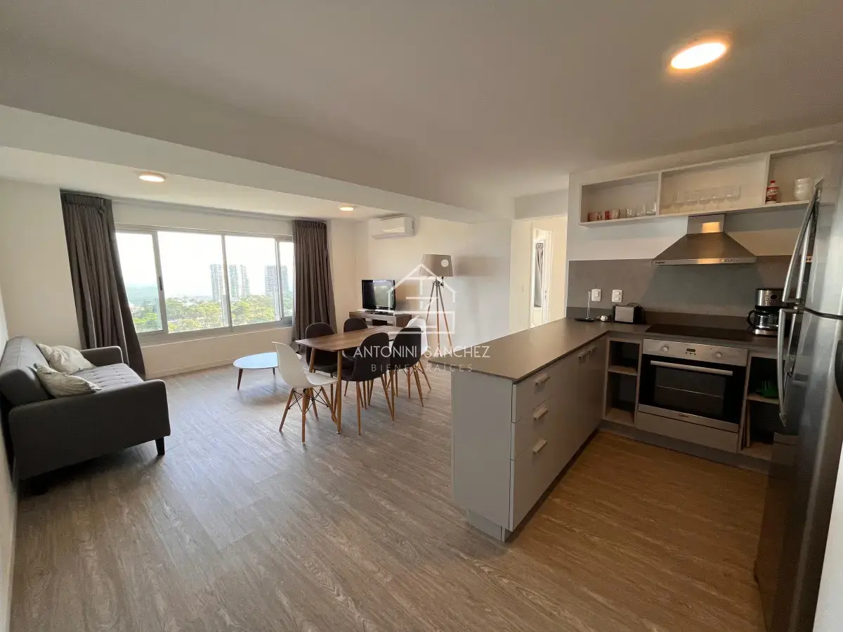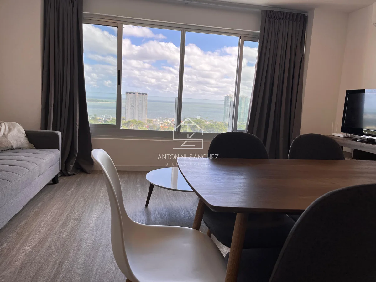 Muy linda unidad en venta en piso alto. Excelente orientación solar para disfrutar de los mejores atardeceres. Cuenta con living comedor con cocina integrada , 2 dormitorios , baño completo y garaje en subsuelo.