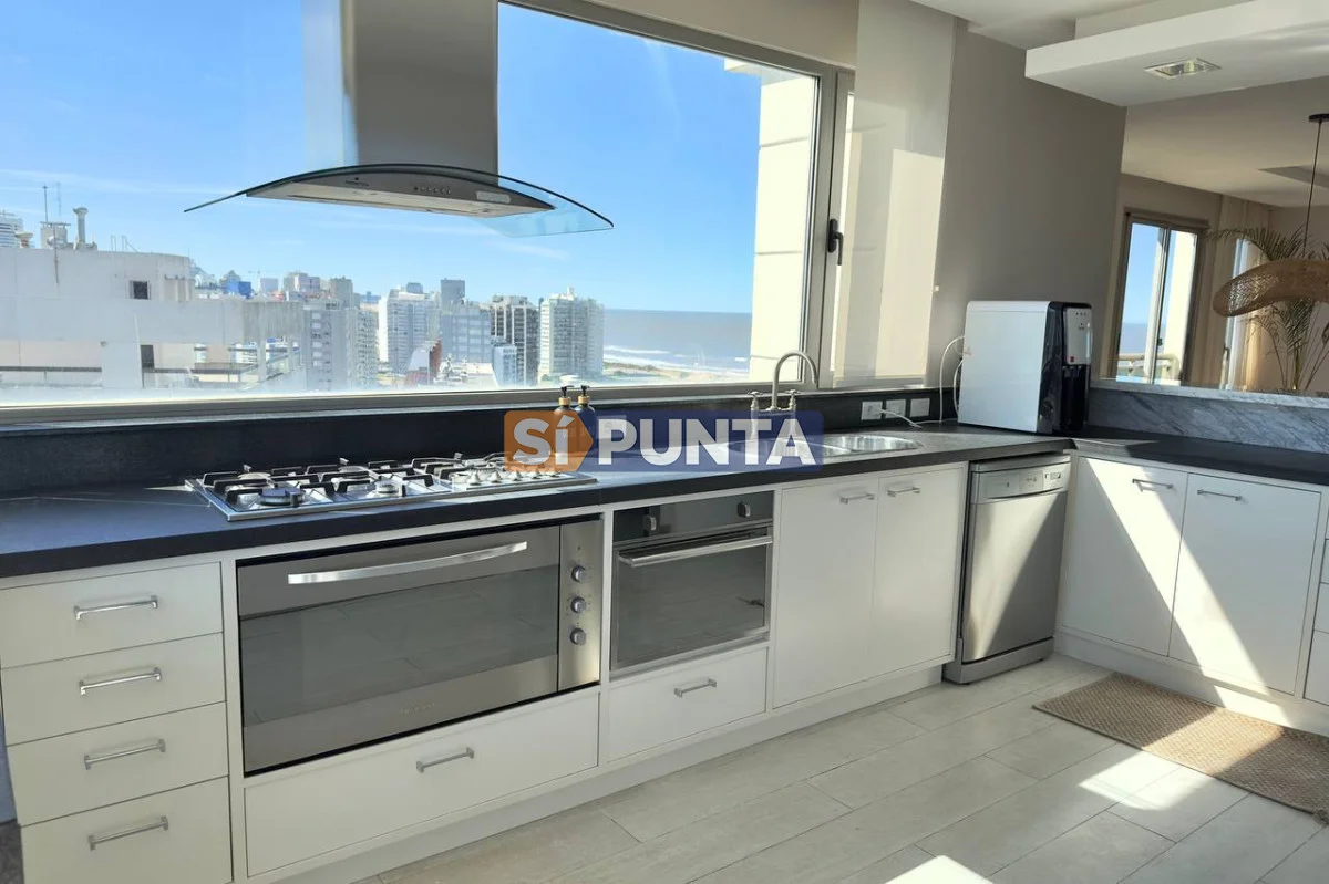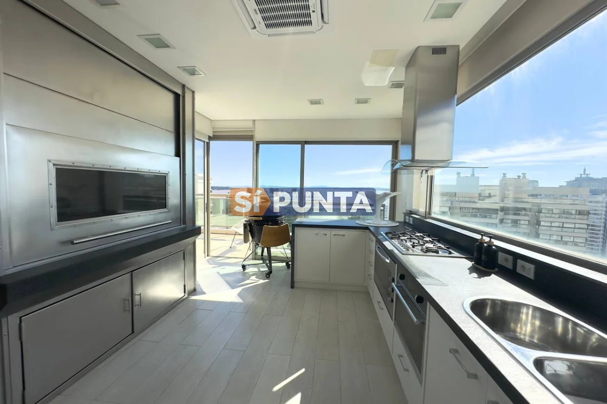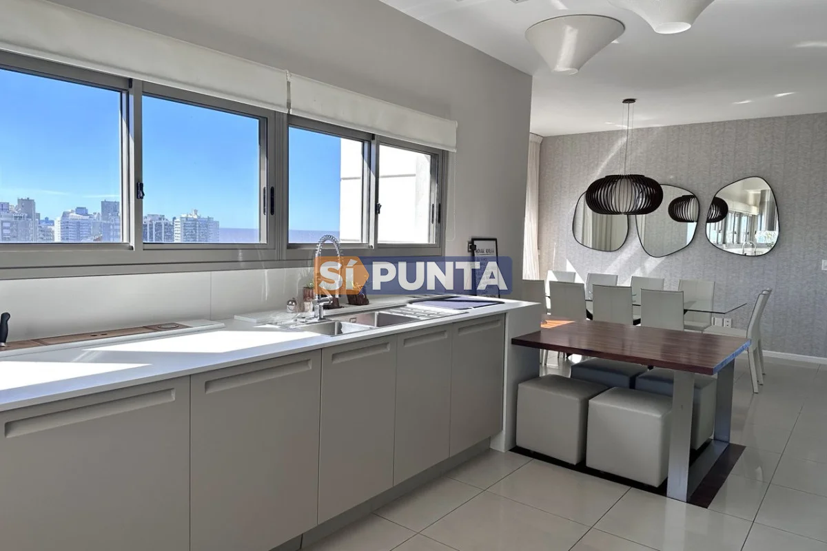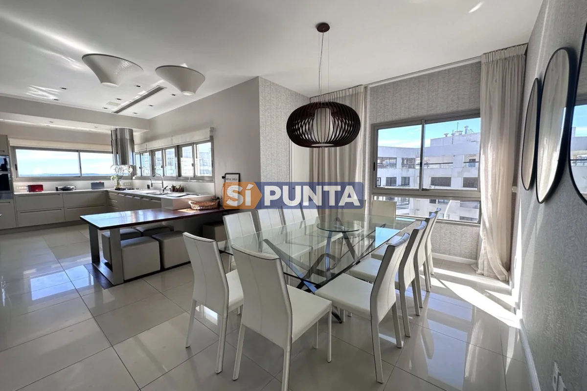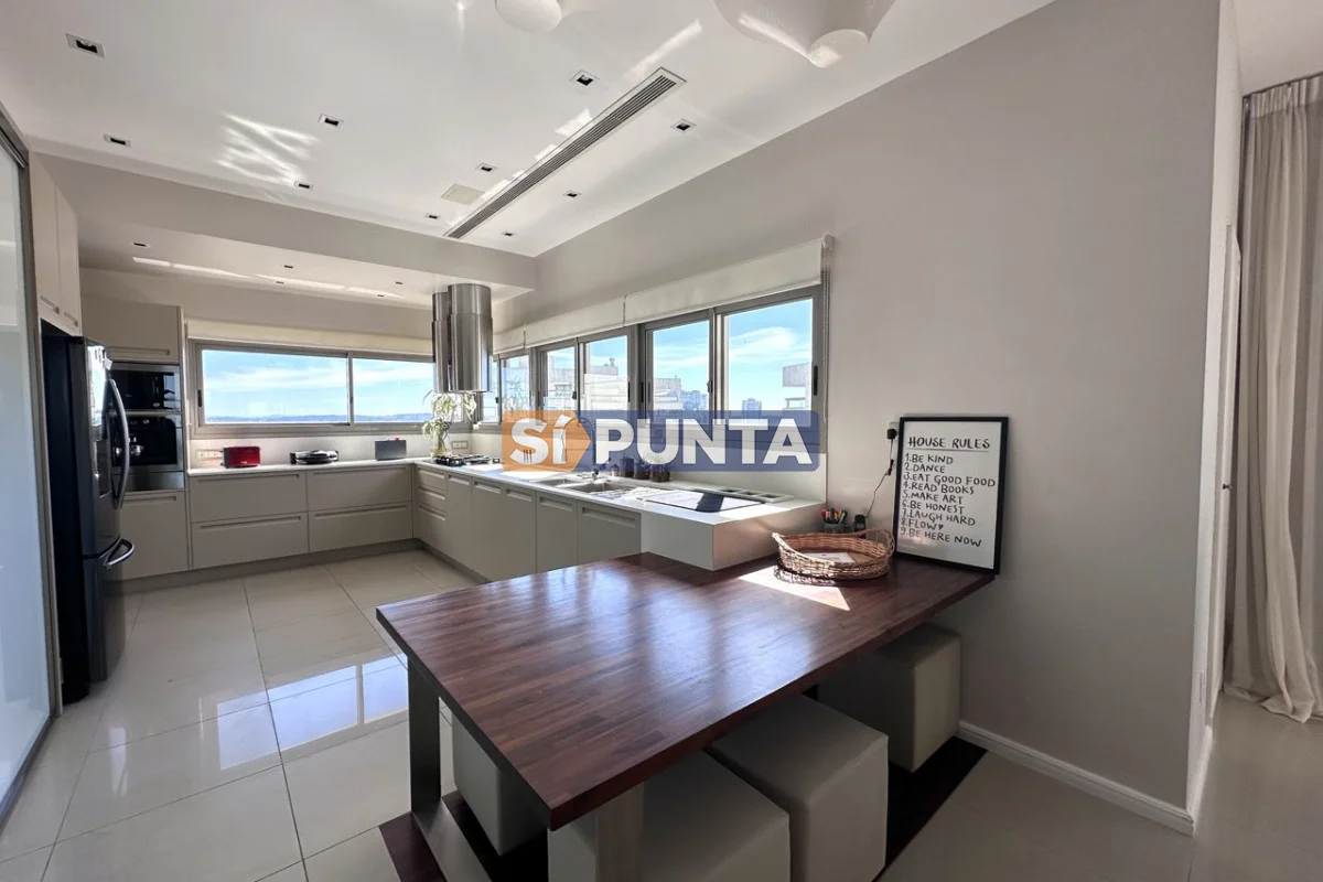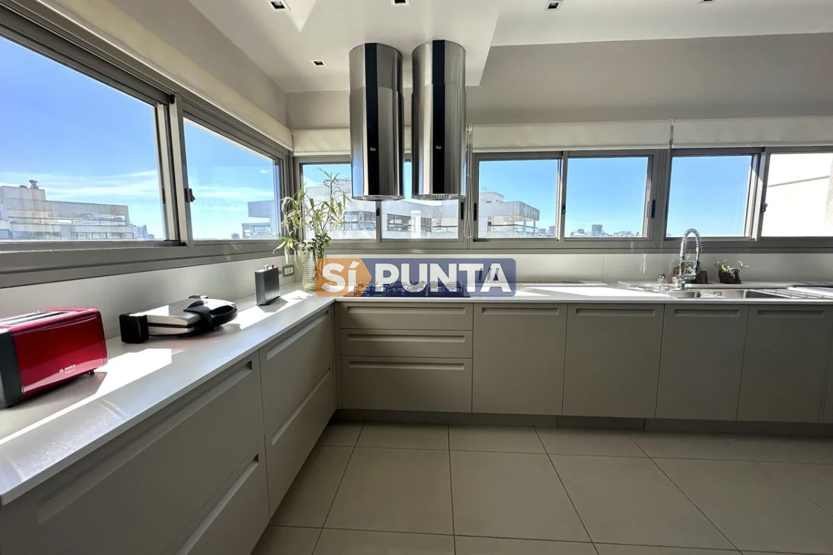 Espectacular Penthouse en venta, torre de categoría. Vista al mar , tanto a playa Brava como a playa Mansa. Comodidades: Planta Baja: - Palier privado - Living comedor - Toilette - 5 suites, 3 de ellas con hidromasaje - Cocina comedor - Lavadero - Dependencia de servicio con baño Segunda planta: - Barbacoa con parrillero - Cocina completa - Bar - Playroom con kitchenette y estufa - Baño completo - Oficina - Terraza con piscina de uso exclusivo Consulte con nuestros asesores Referencia Interna : Tera-13188