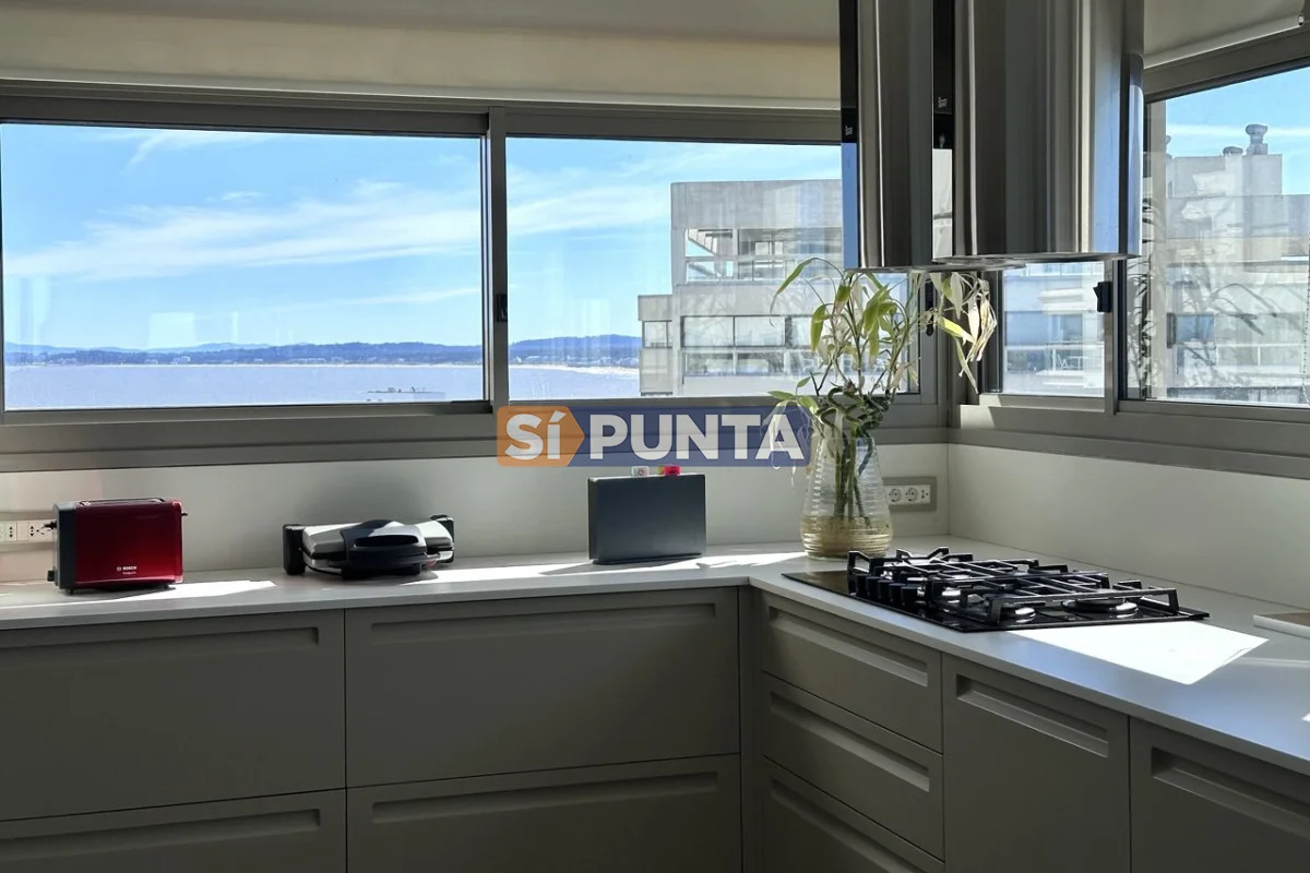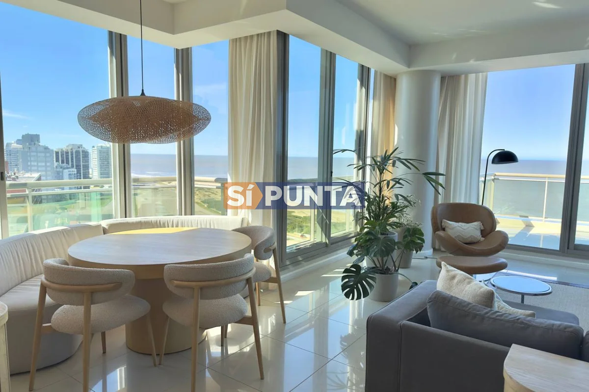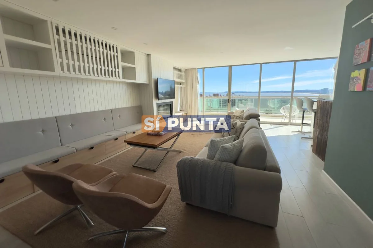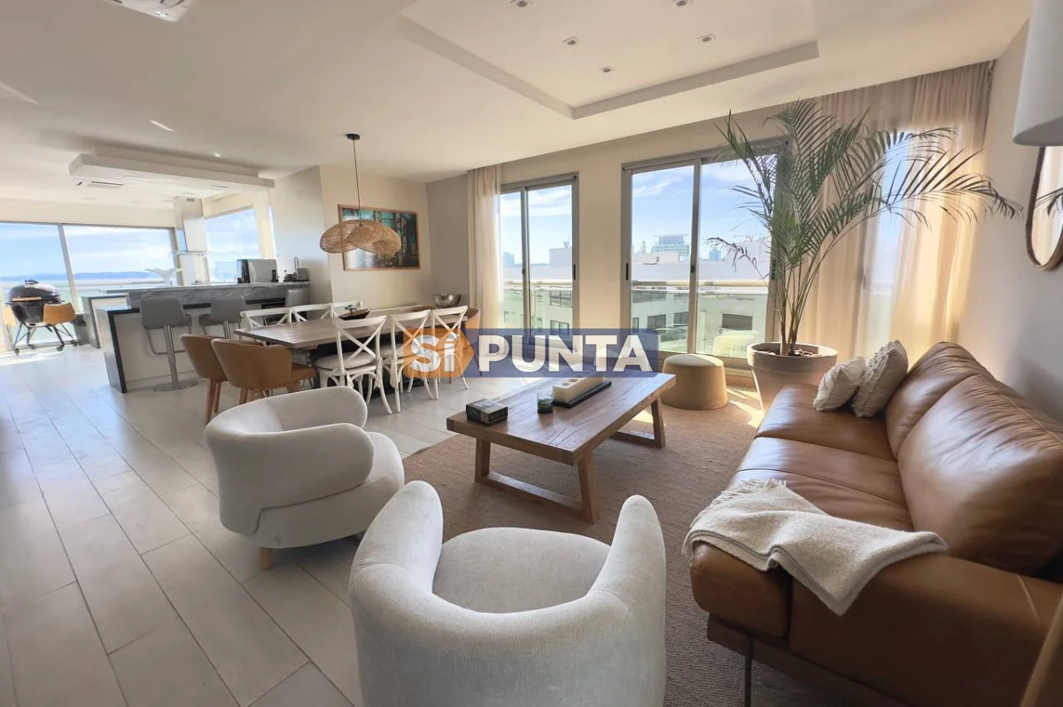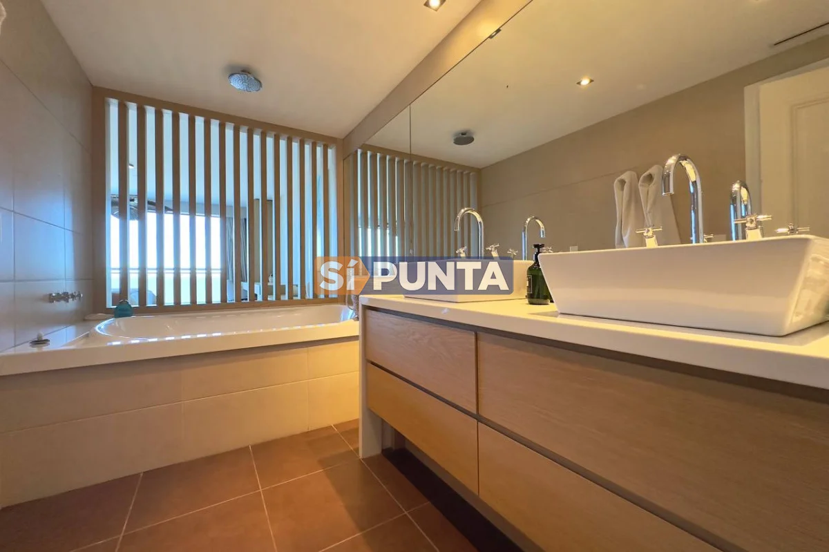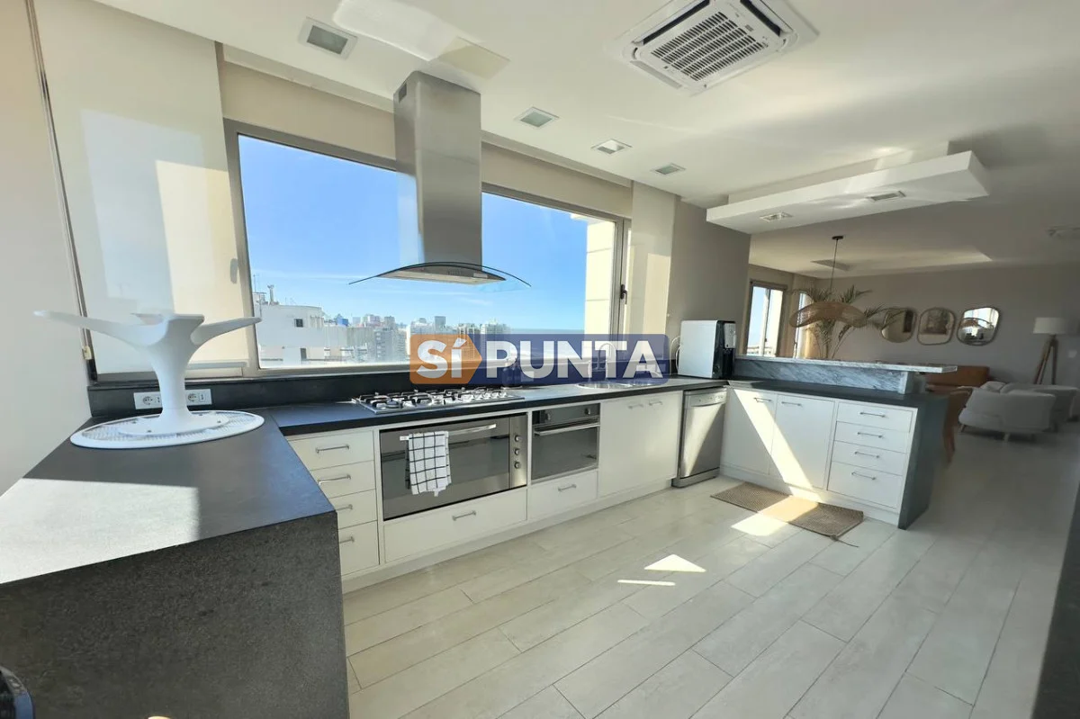 Espectacular Penthouse en venta, torre de categoría. Vista al mar , tanto a playa Brava como a playa Mansa. Comodidades: Planta Baja: - Palier privado - Living comedor - Toilette - 5 suites, 3 de ellas con hidromasaje - Cocina comedor - Lavadero - Dependencia de servicio con baño Segunda planta: - Barbacoa con parrillero - Cocina completa - Bar - Playroom con kitchenette y estufa - Baño completo - Oficina - Terraza con piscina de uso exclusivo Consulte con nuestros asesores Referencia Interna : Tera-13188