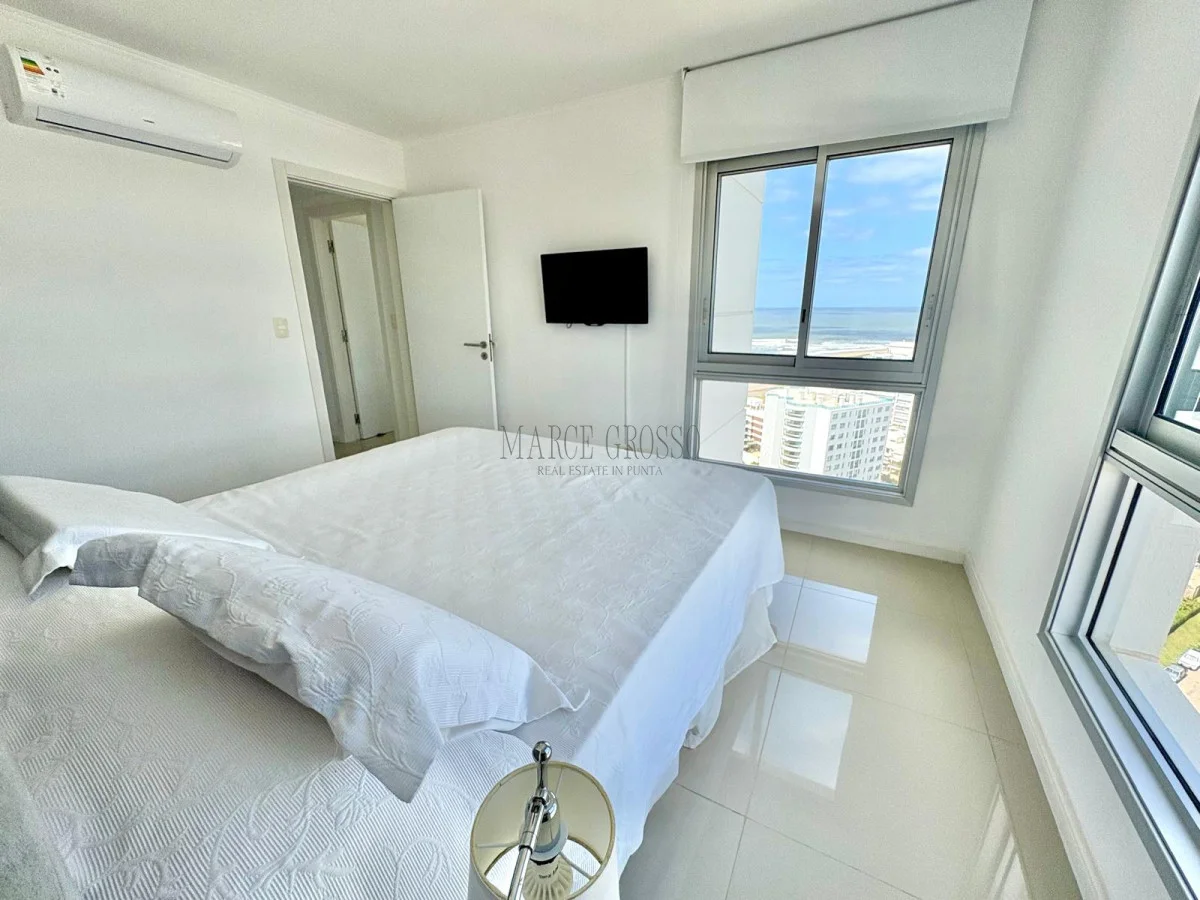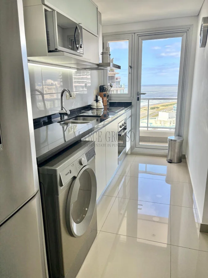 Unidad — en estado impecable — de 2 dormitorios, 2 baños (principal en suite), cocina definida con lavadero y un living-comedor amplio y luminoso con orientación suroeste y salida a balcón. Increíble vista al mar desde todos los ambientes.