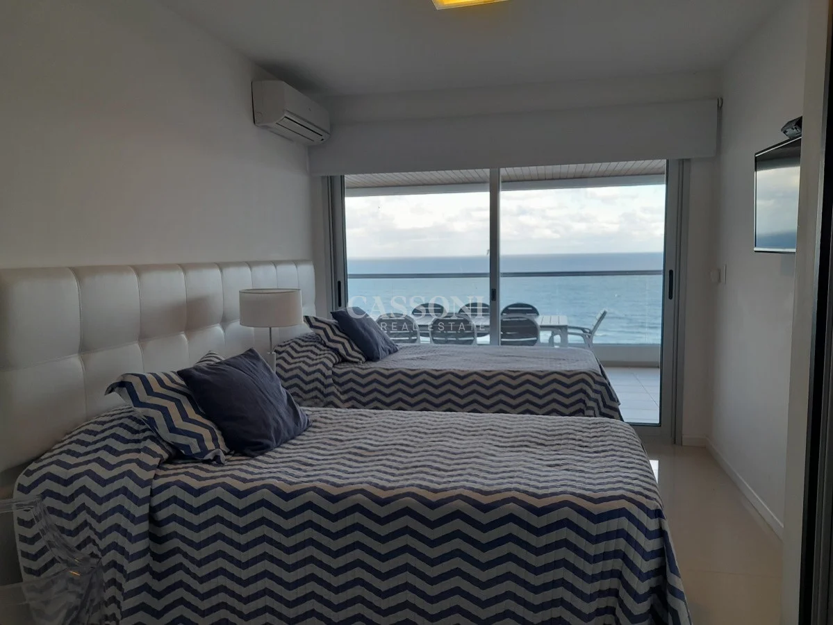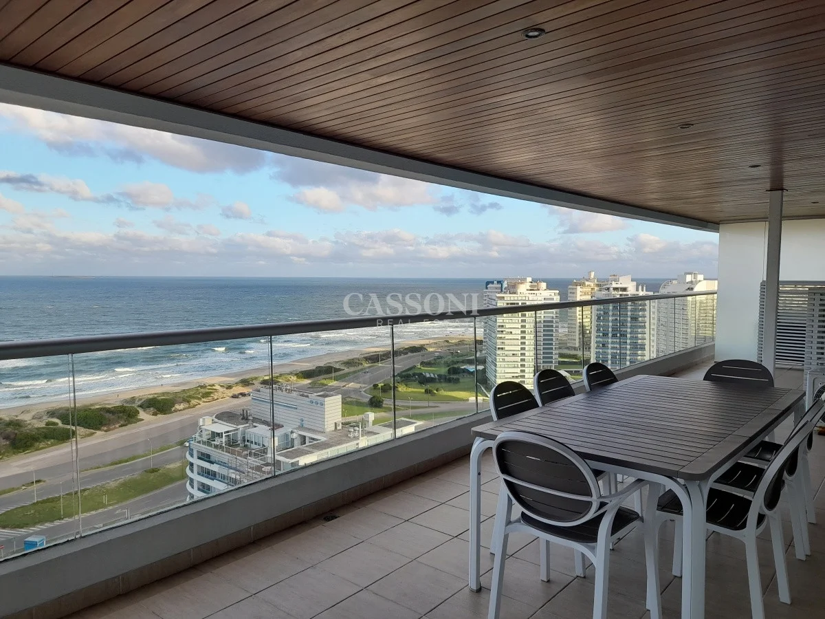 Gran planta en piso alto con vista frontal al mar. Espaciosa terraza de 44 m2 para disfrutar con comodidad. 3 confortables dormitorios con vista a Playa Brava Suite principal con excelentes dimensiones, vestidor, antebaño doble. Elegante living comedor , cocina moderna con pasaplatos + lavadero. Losa radiante sectorizada y AC en todos los ambientes. Garaje en subsuelo + baulera. Torre ubicada a 50 metros de la parada 6 de la Brava. Amenities y servicios de primer nivel: -Servicio de playa en temporada -Servicio de mucamas diario -Piscinas interior y exterior -Gimnasio -Spa -Salón de usos múltiples -Barbacoas -Garagista -Lavadero -Recepción 24 hs Referencia Interna : Tera-1169