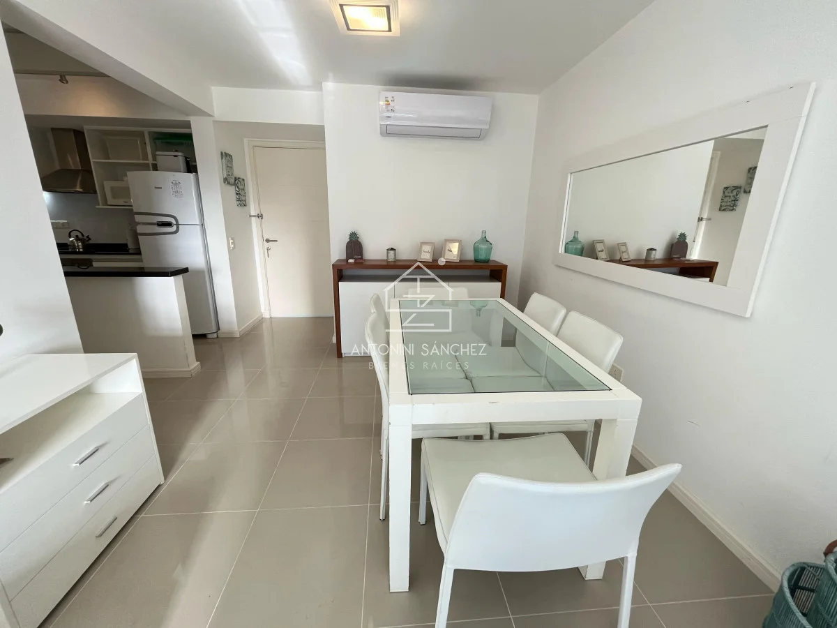 Apartamento de 2 dormitorios y 1 baño , cocina integrada, living comedor, balcón, garaje para un auto, servicio de mucamas, servicio de playa, sauna, gimnasio, sum y piscina exterior.