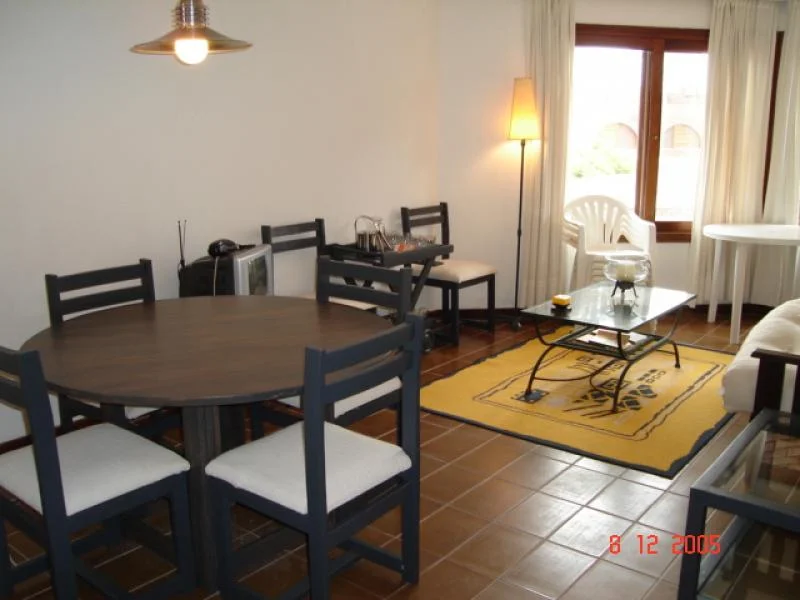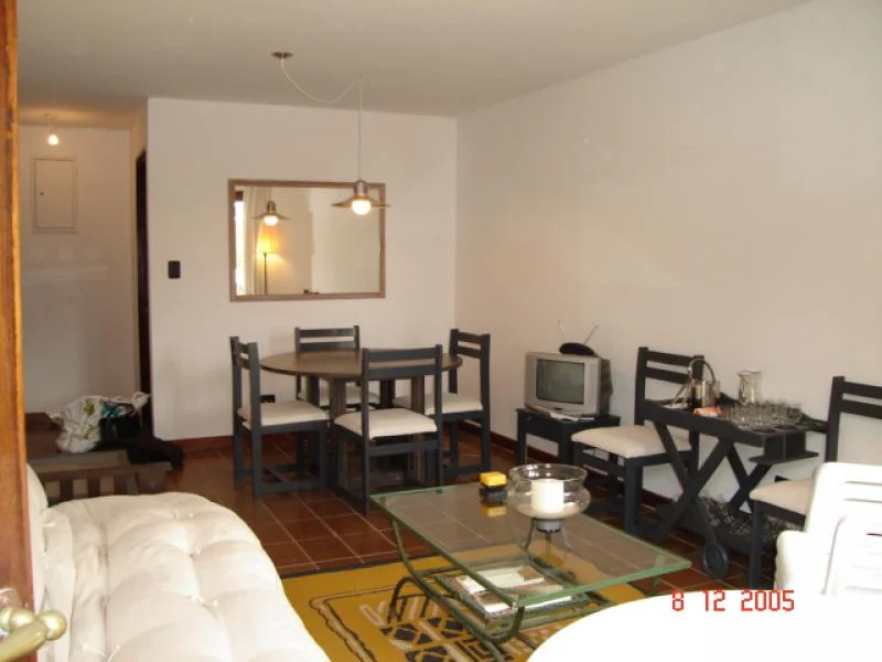 Acogedor departamento de un dormitorio, ubicado en la planta baja de Terrazas de Manantiales, en la linea que da al mar, pero lateral. Tiene un dormitorio con una cama doble y una cama simple + un futón en el living. Entre los servicios que ofrece se encuentran: servicio de mucama diario, ropa blanca, cochera cubierta, cable, internet y servicio de playa.