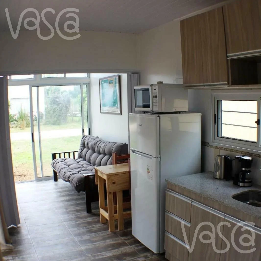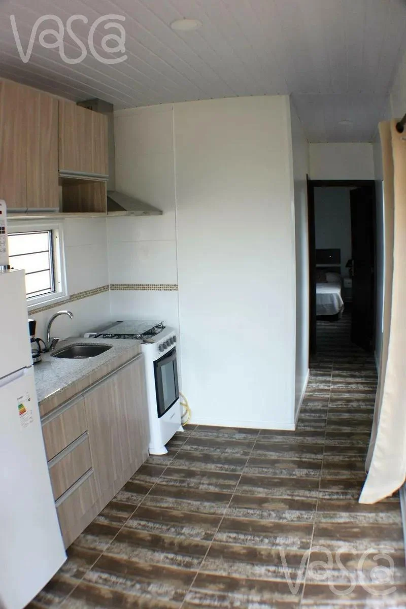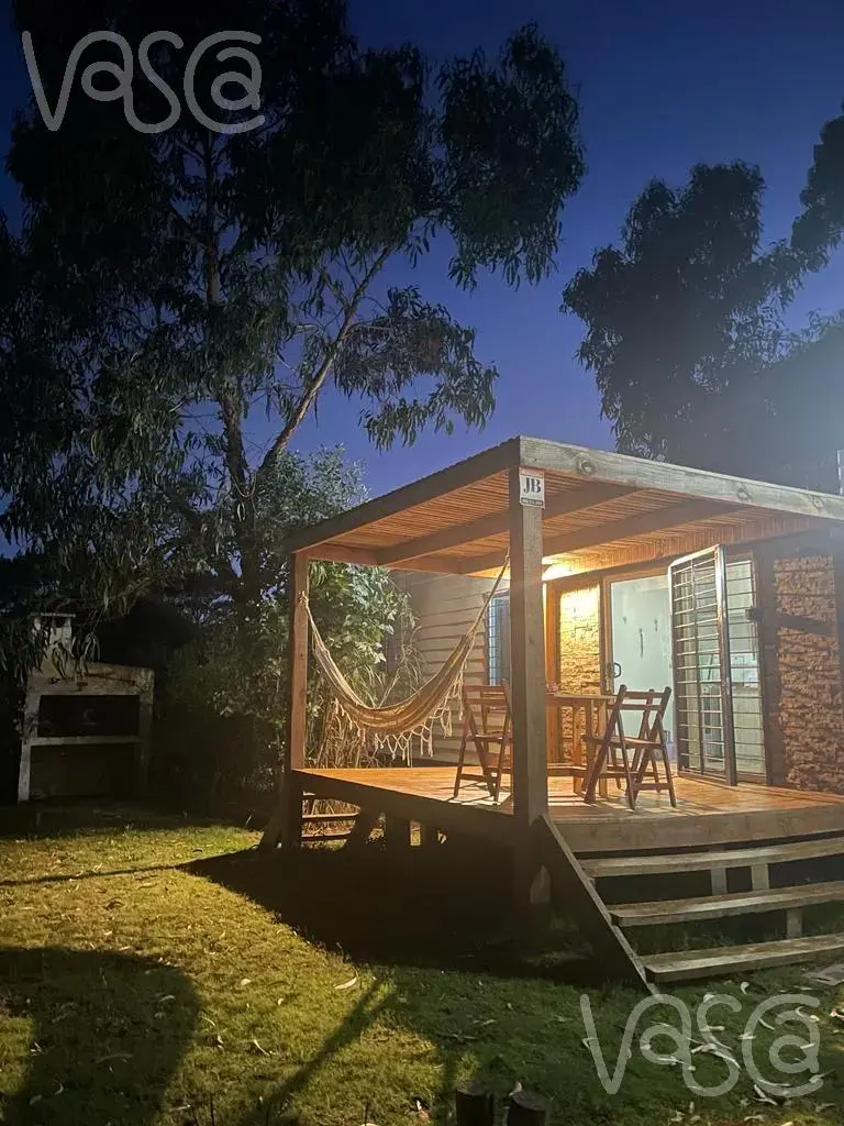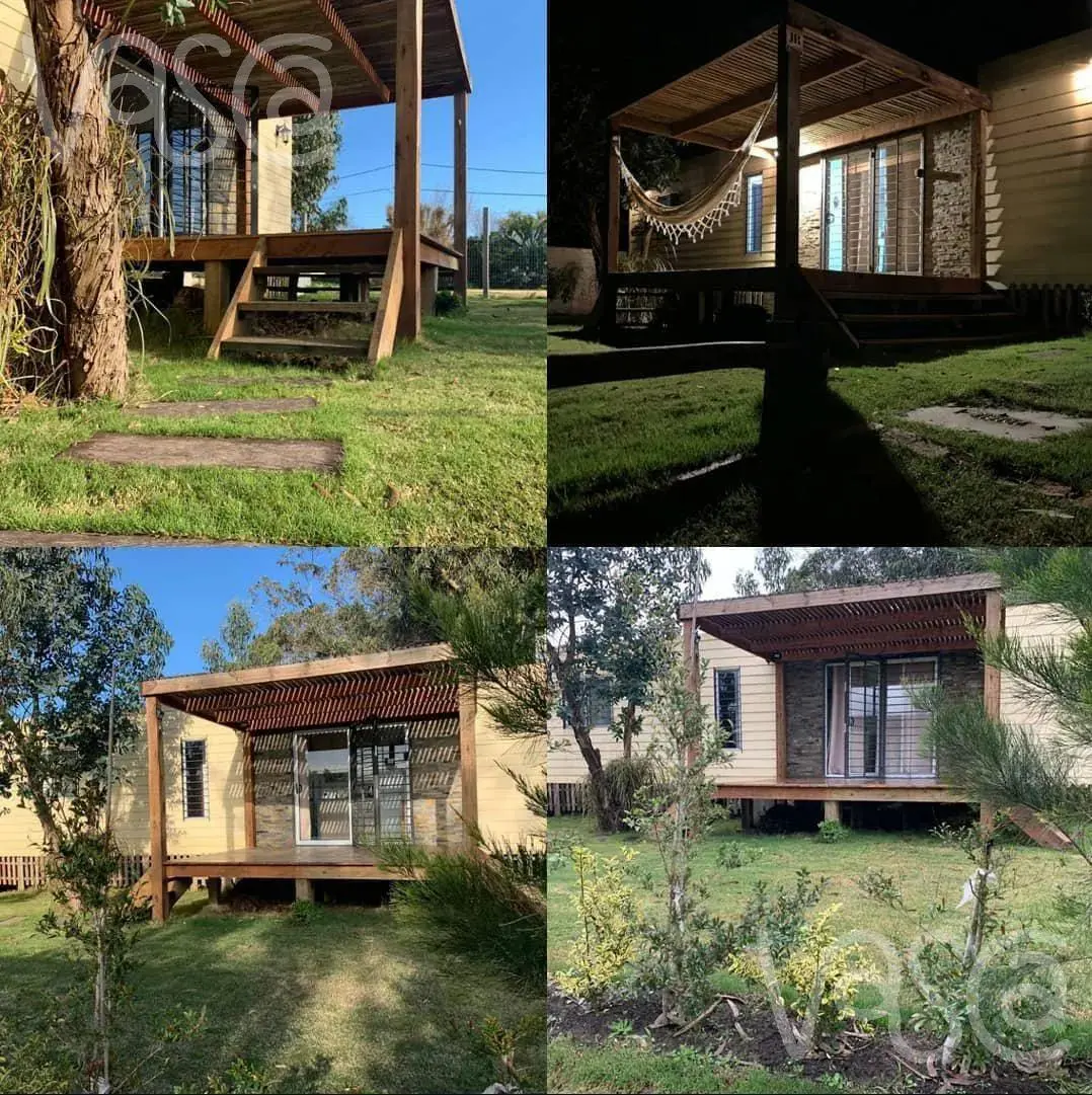 Tres casas contenedor. Cada una de 1 dormitorio, 1 baño, cocina y living integrado. Todas tienen deck techado de 3.30x4 m. Estás revestidas con siding, equipadas y con estufa.