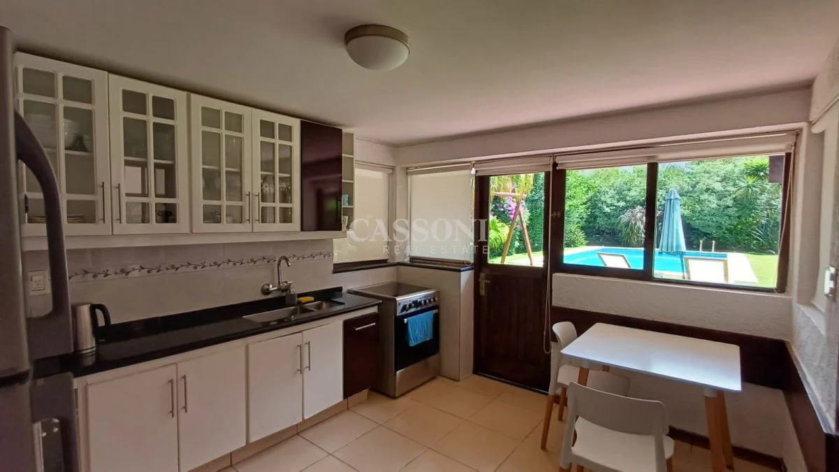 Ideal para vivir todo el año Ubicada en zona de residencia al igual que comercial Cerca de centros de interés como lo son Punta Shopping, facultades, centros médicos, gastronómicos y mucho más Cuenta con garaje para 2 autos en subsuelo , amplia cocina comunicada a living comedor, dormitorio en suite abajo Hermosa piscina y barbacoa cerrada al fondo Impecable estado de mantenimiento No dude en visitarla Referencia Interna : Tera-4871