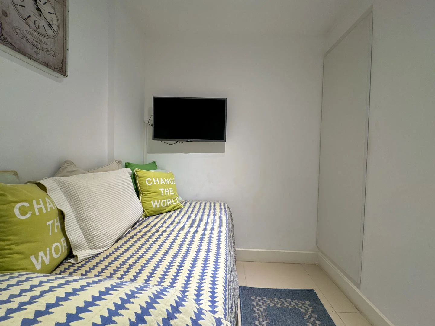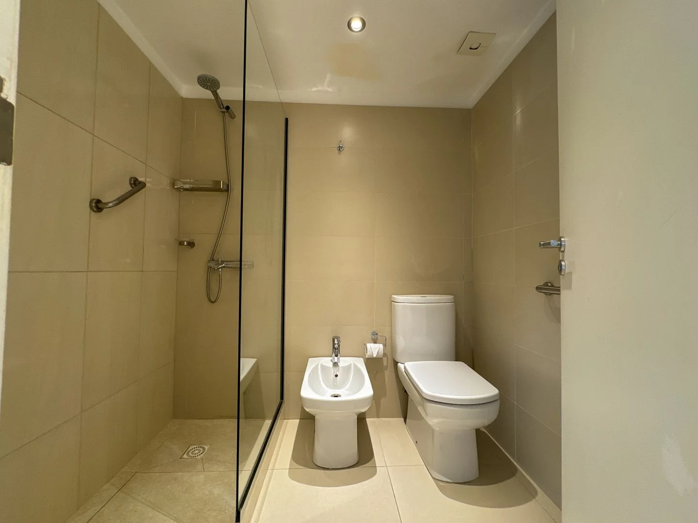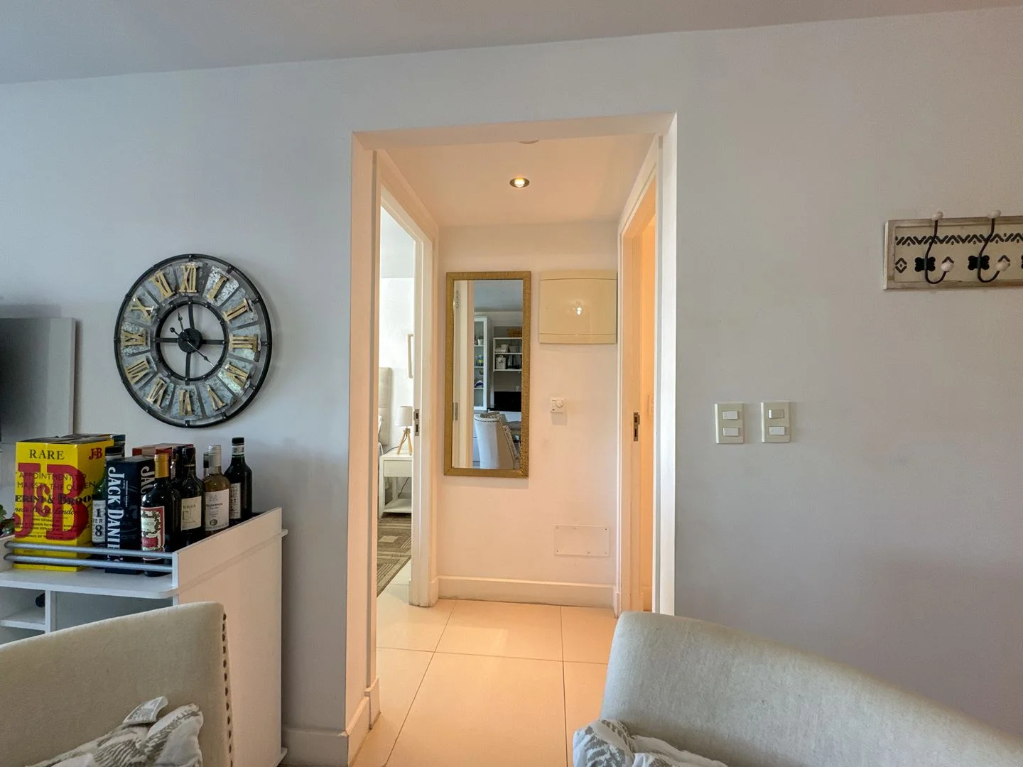 El apartamento cuenta con un dormitorio principal definido, orientado hacia el frente, acompañado de un amplio baño. Además, ofrece un medio dormitorio que puede adaptarse para diversas utilidades, como un espacio para un cómodo escritorio de home office.