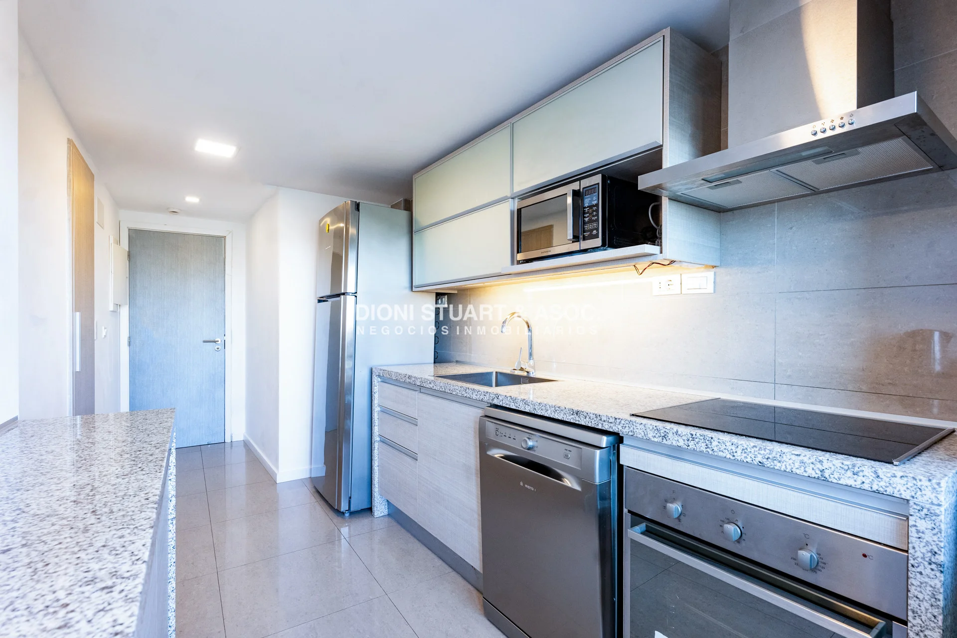 Living–comedor con salida a terraza, cocina definida con lavadero. Excelentes terminaciones. Cuenta con aire acondicionado, loza radiante sectorizada.