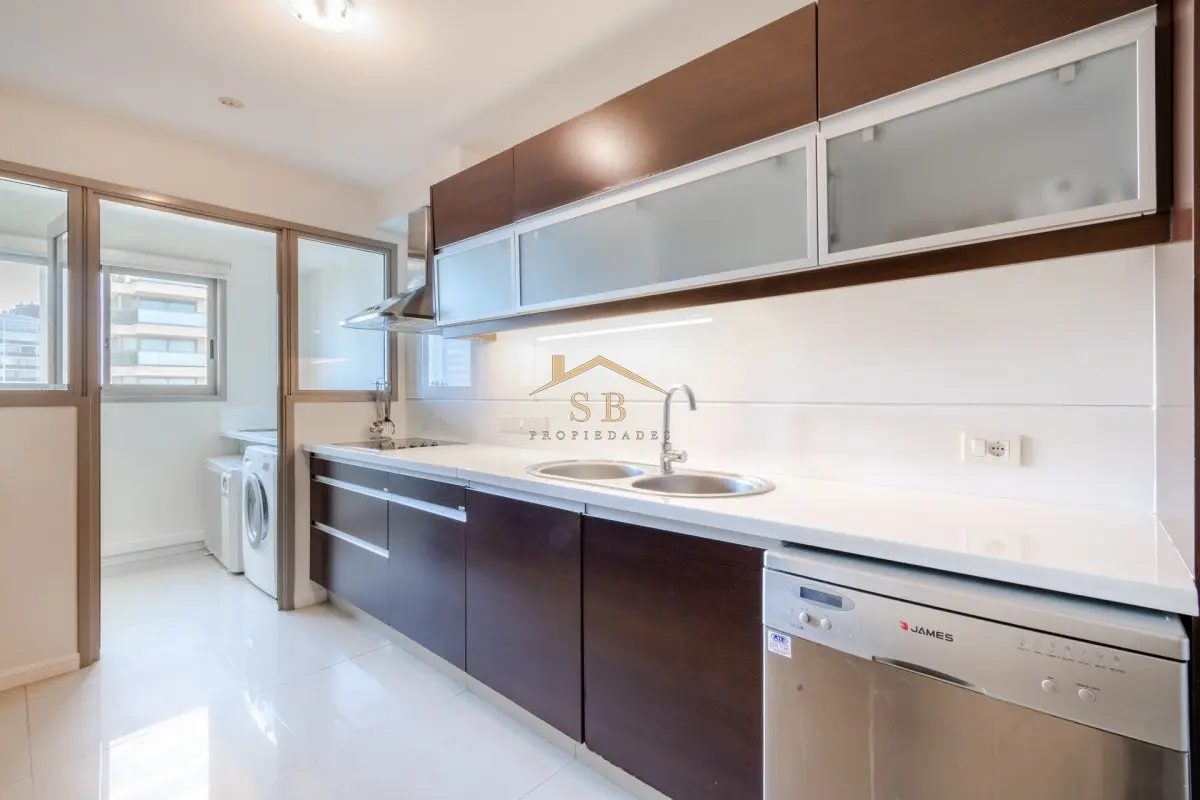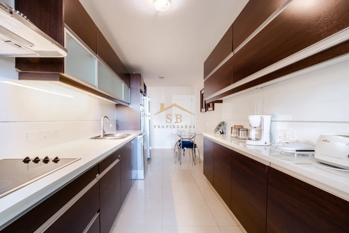Este departamento cuenta con 3 dormitorios cada uno con baño en suite, y toilletes en áreas comunes.