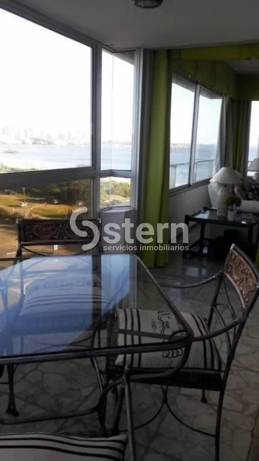 Esquinero, con balcon cerrado, living-comedor, 2 dormitorios, 2 baños, 1 suite, cocina definida, cuarto de servicio con baño, lavadero y garaje. Recepcion 24 horas, piscina exterior, servicio de mucamas y servicio de playa. Parada 6 mansa, frente al mar. Referencia Interna : Tera-48