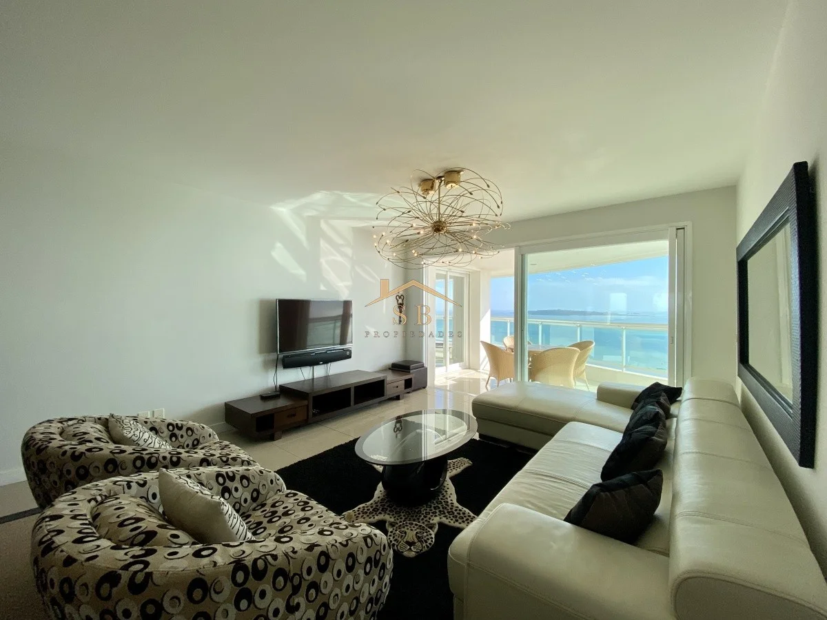 Alquilo hermoso apartamento dentro de Torre de categoria con excelentes servicios! Espectacular vista a la isla y al mar desde todos los ambientes! Comodidades: -3 suites, (la master suite tiene 2 baños) -4 baños -Amplio living-comedor comunicado con la terraza -Toilette -Cocina definida con lavadero Consulte con nuestros asesores. Referencia Interna : Tera-1398
