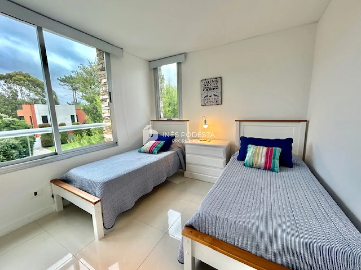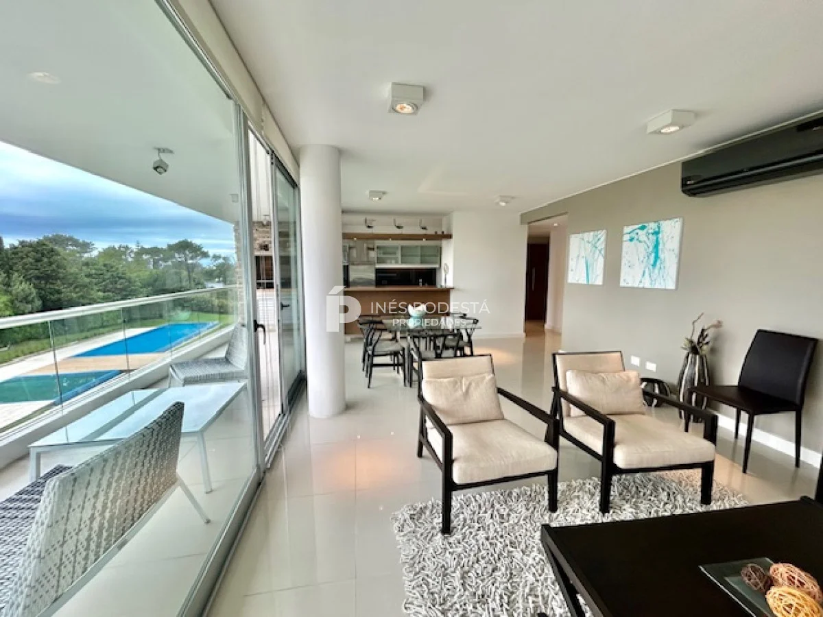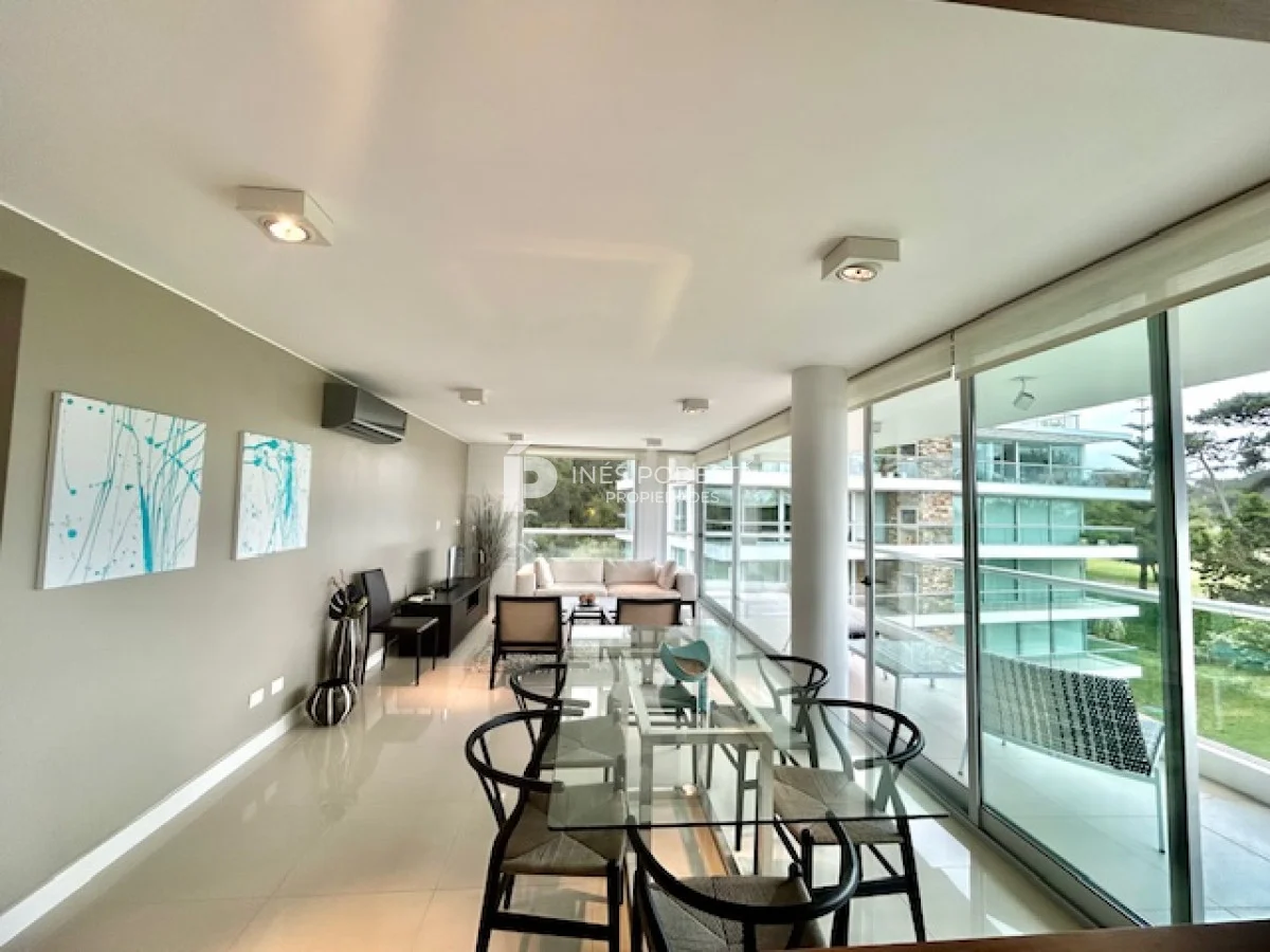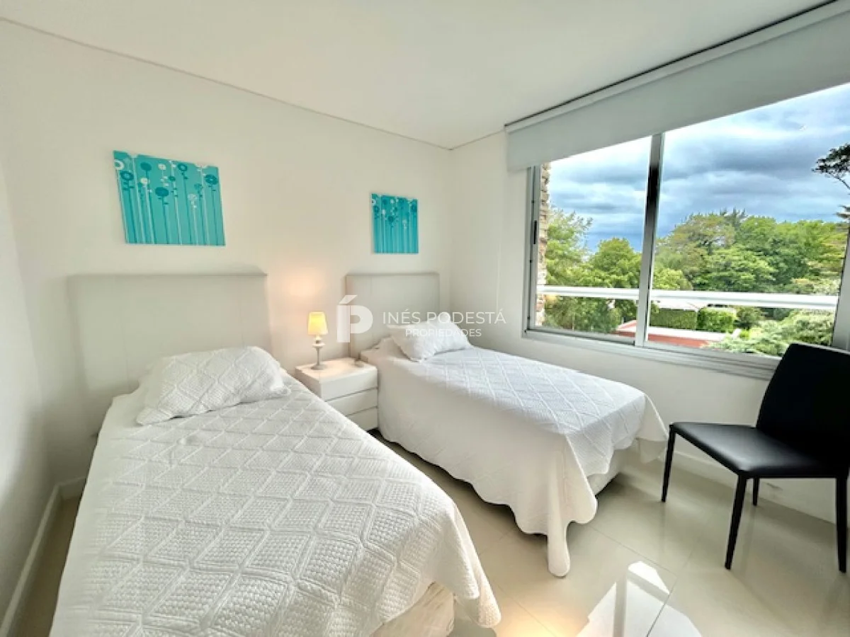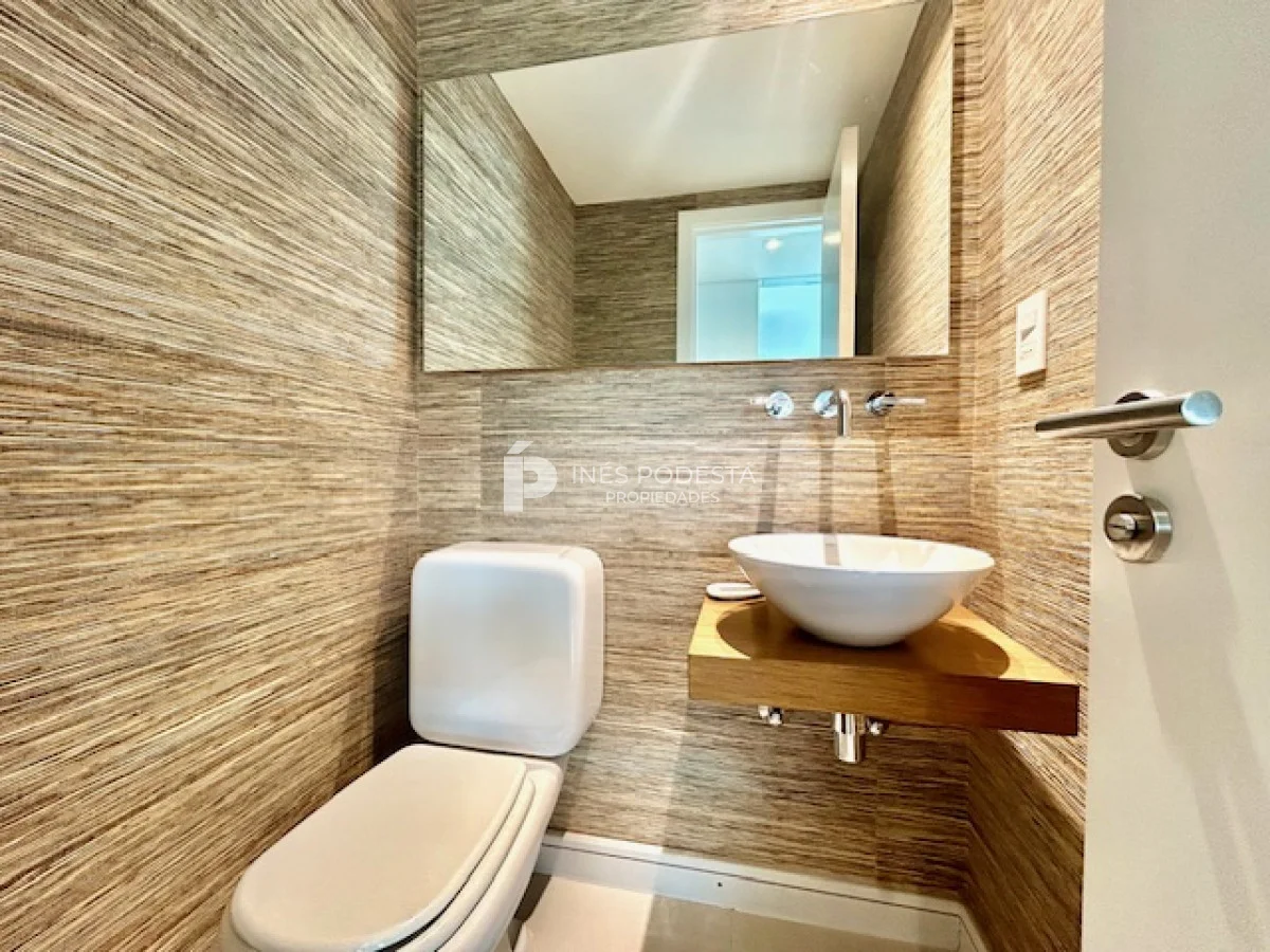 Terrazas de Villa Brava, lindísimo complejo rodeado de jardines con muy buenos amenities! Living comedor apaisado, luminoso, toilette, cocina americana integrada, 3 dormitorios, 2 baños (principal en suite), losa radiante y aires acondicionados, gge, servicio de mucama, laundry, pileta interior y exterior (ideal para nadar)