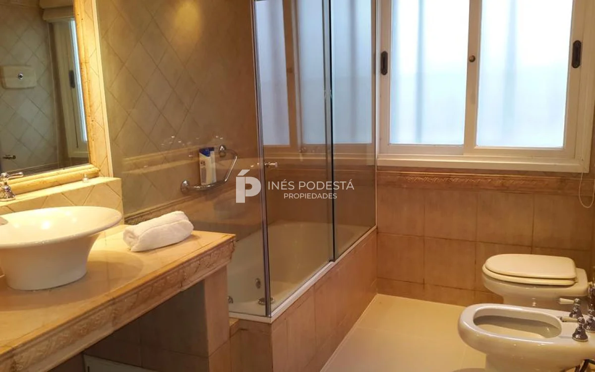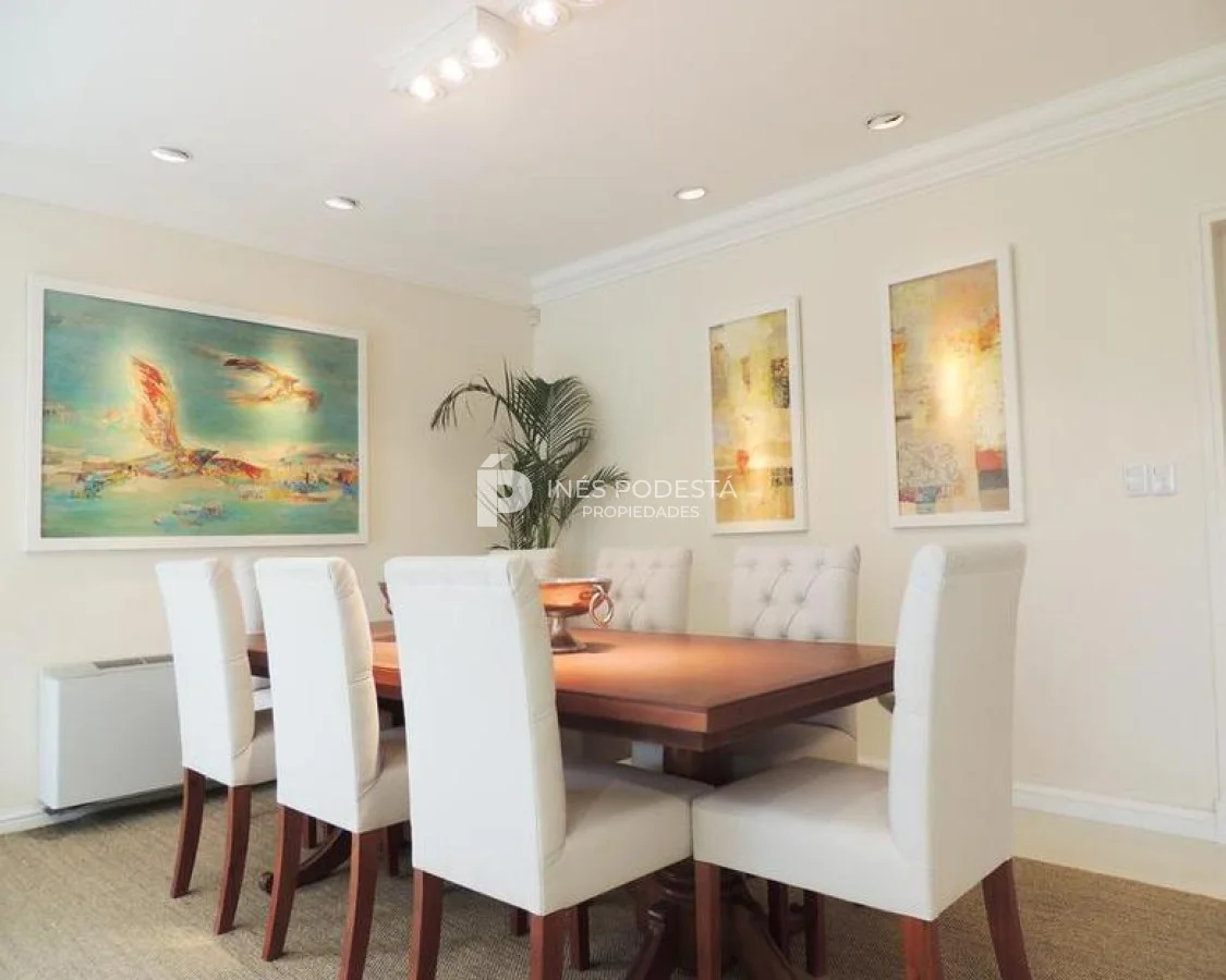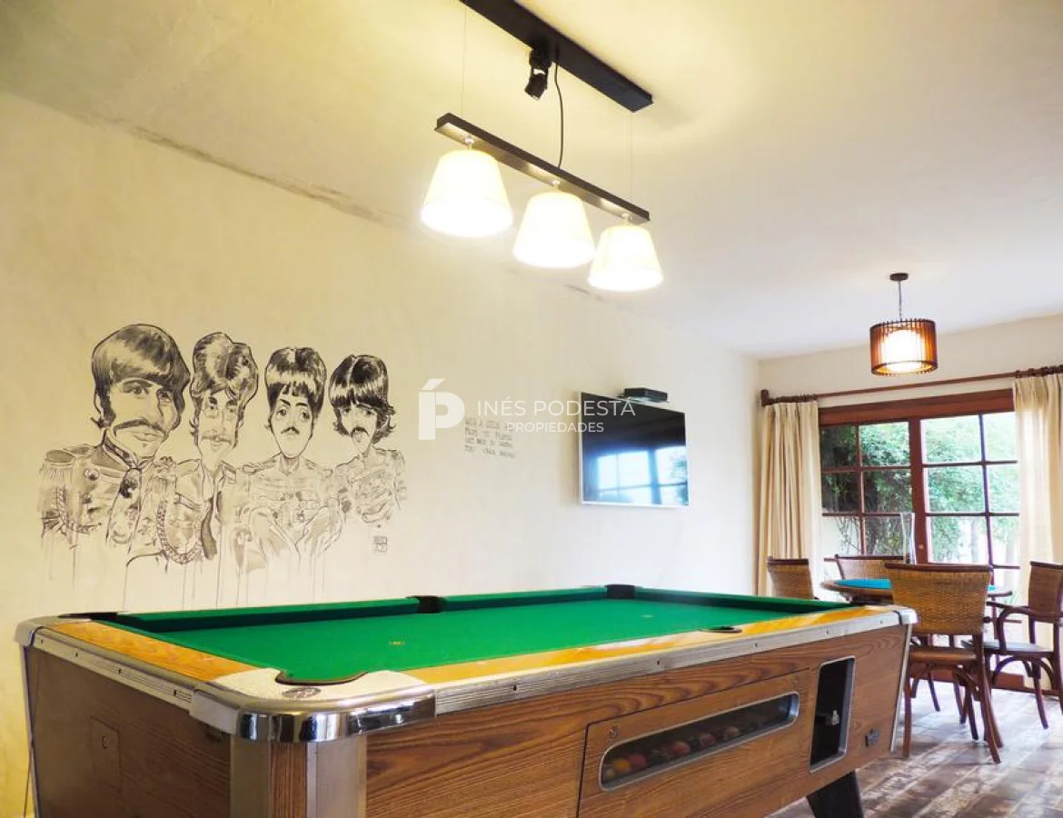 Excelente casa en 2 plantas. Living comedor, cocina con office, 4 dormitorios (2 suites), escritorio, toilette, dependencia de servicio con baño , barbacoa con baño, piscina climatizada, gran playroom, garage para dos coches, riego automatizado. AA, calefacción central.